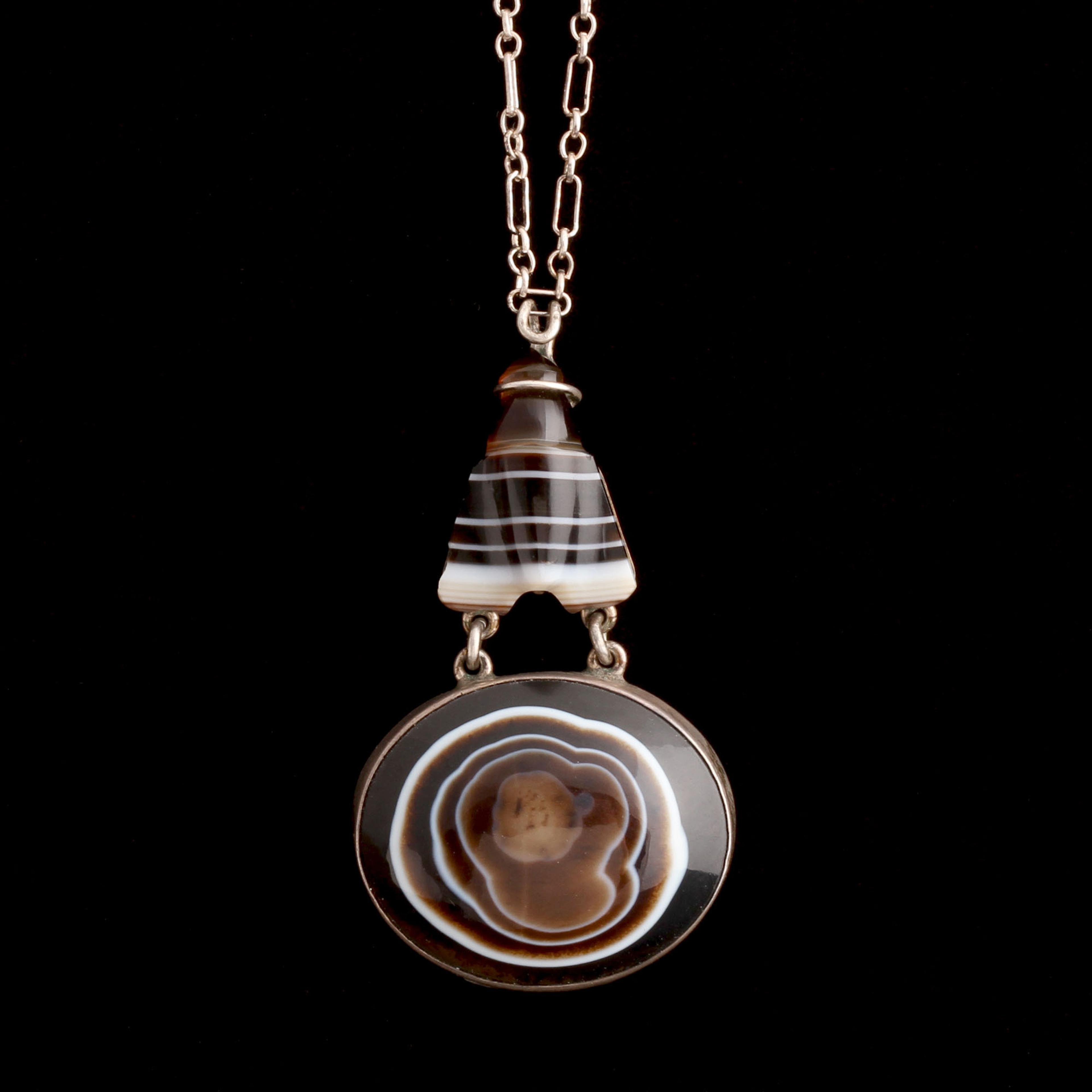 Mid 19th Century Banded Agate & Diamond Wax Seal Necklace
