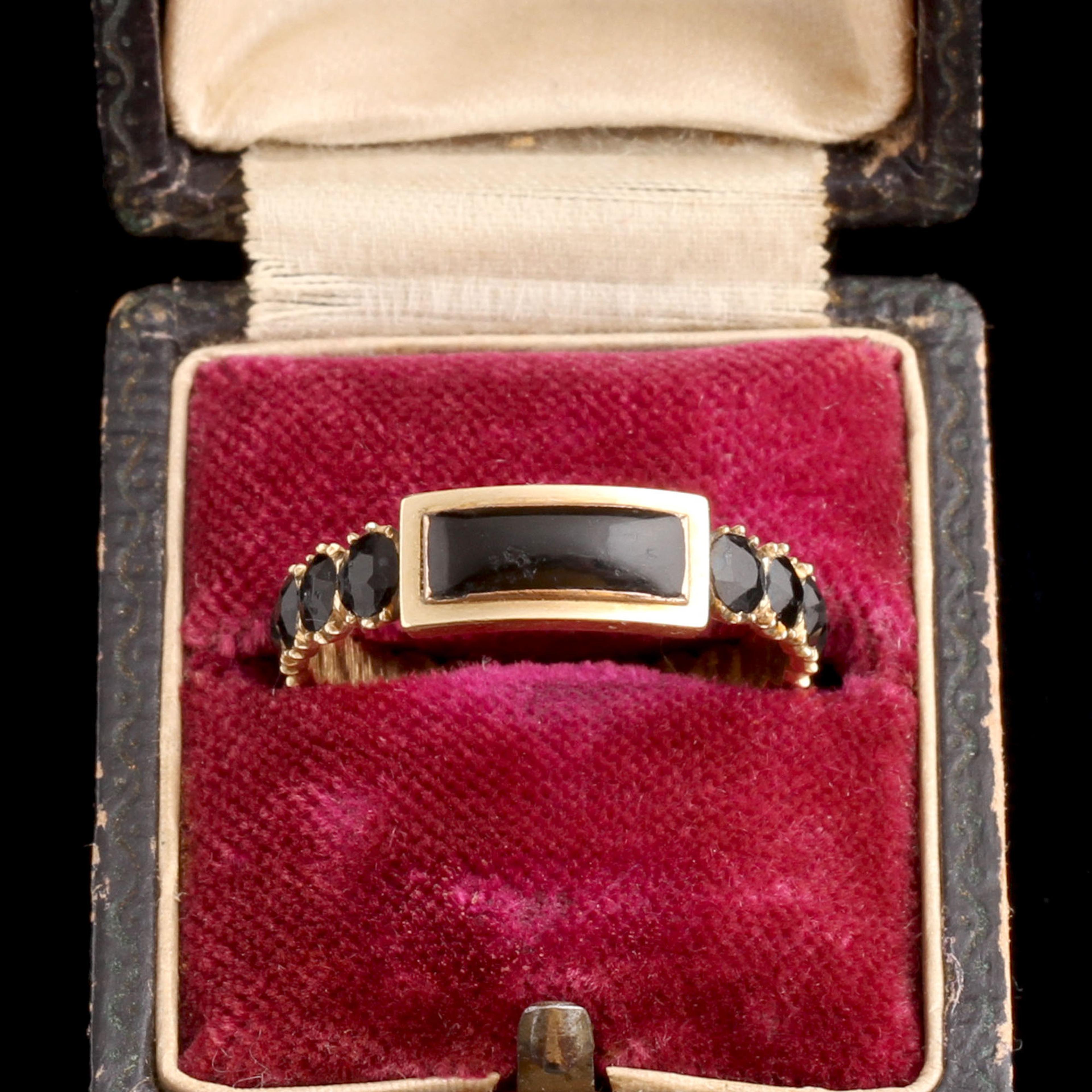 Mid Victorian Enamel & Diamond Cross Mourning Ring