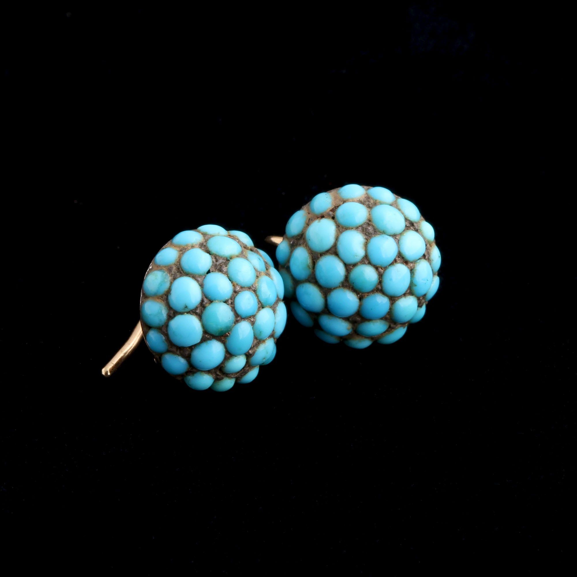 Mid Victorian Turquoise & Pearl Etruscan Style Earrings