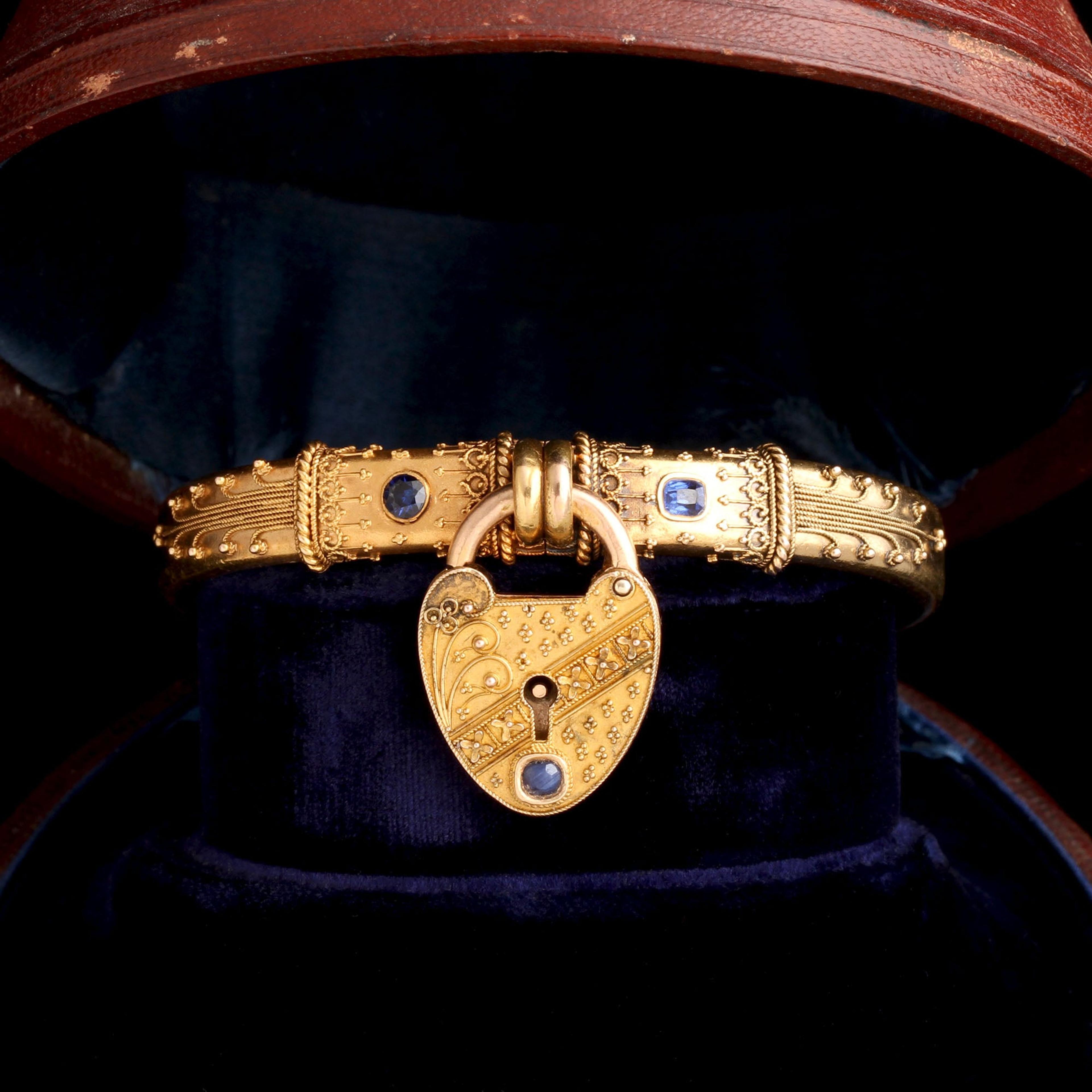 Mid Victorian Heart Padlock Sapphire Bangle