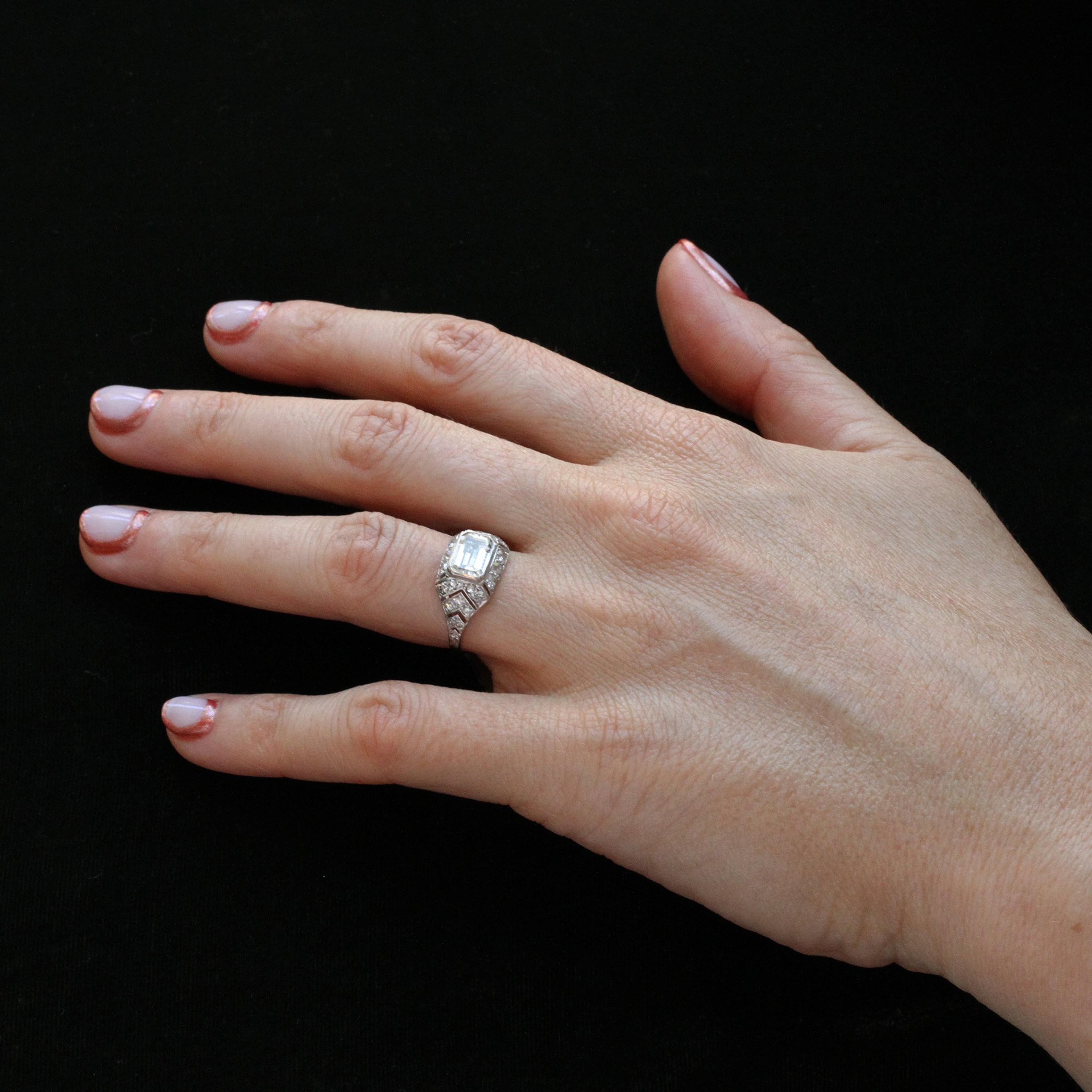 Art Deco 1.10ct Emerald Cut Diamond Chevron Engagement Ring