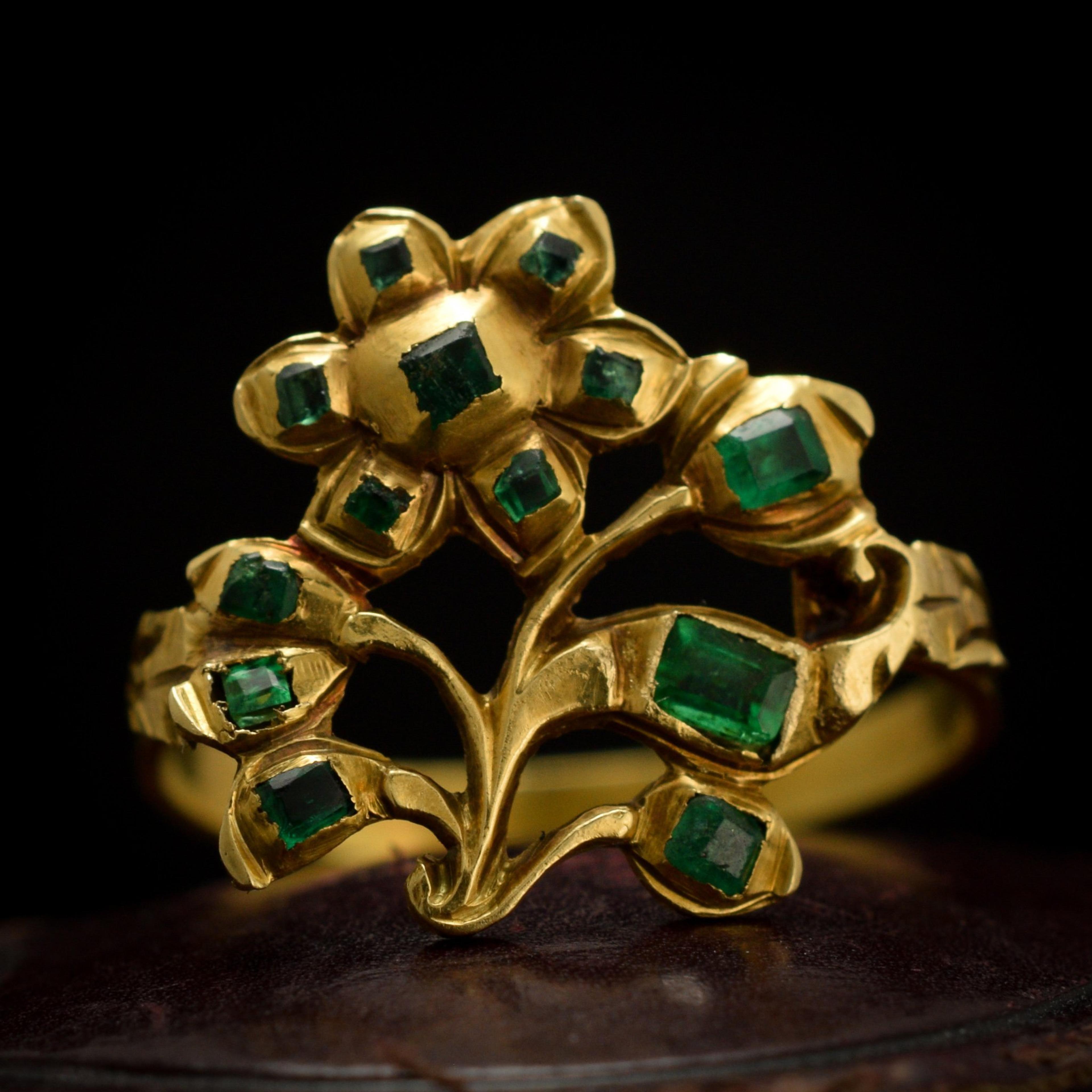18th Century Iberian Emerald Flower Ring