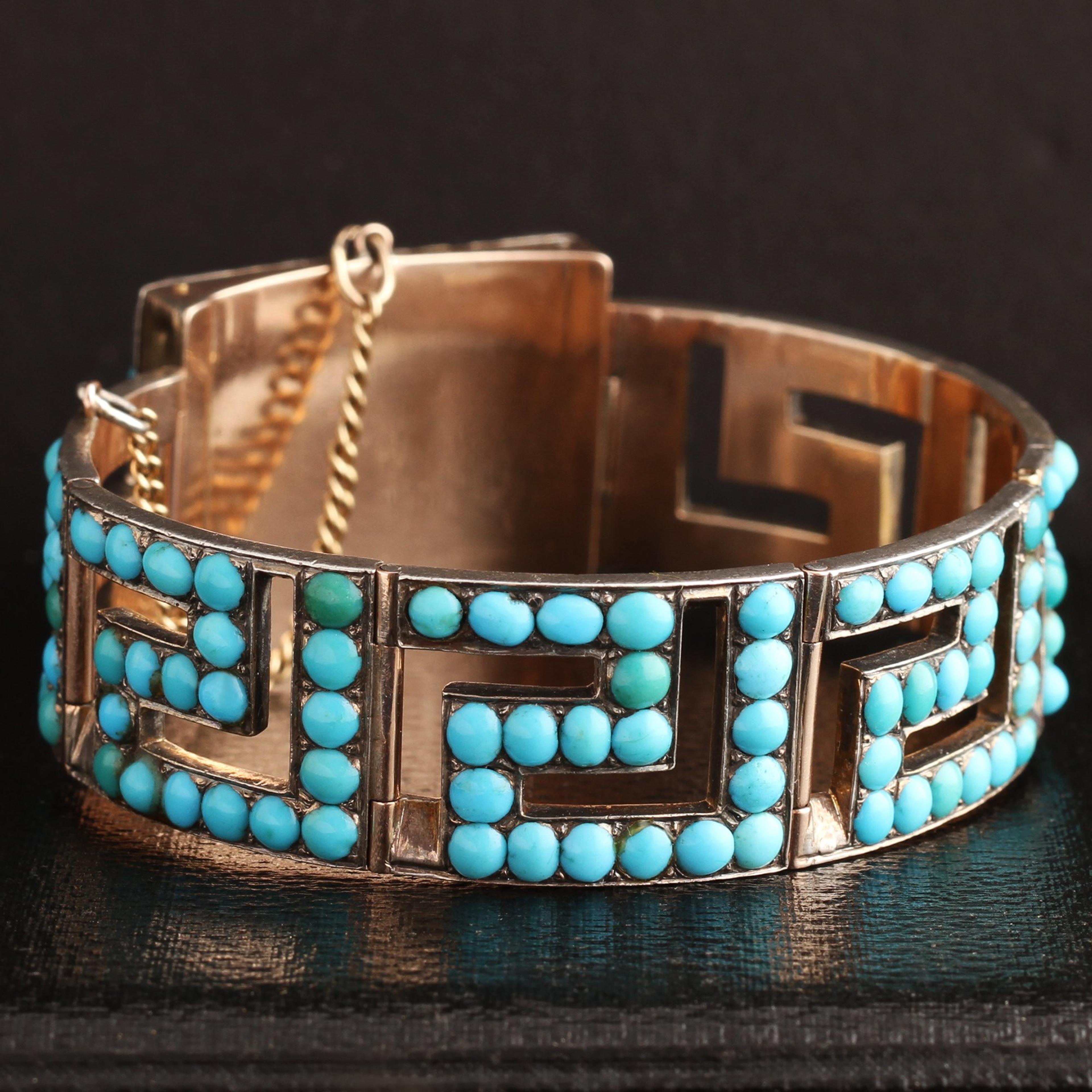 Victorian Rose Gold and Turquoise Greek Key Bracelet