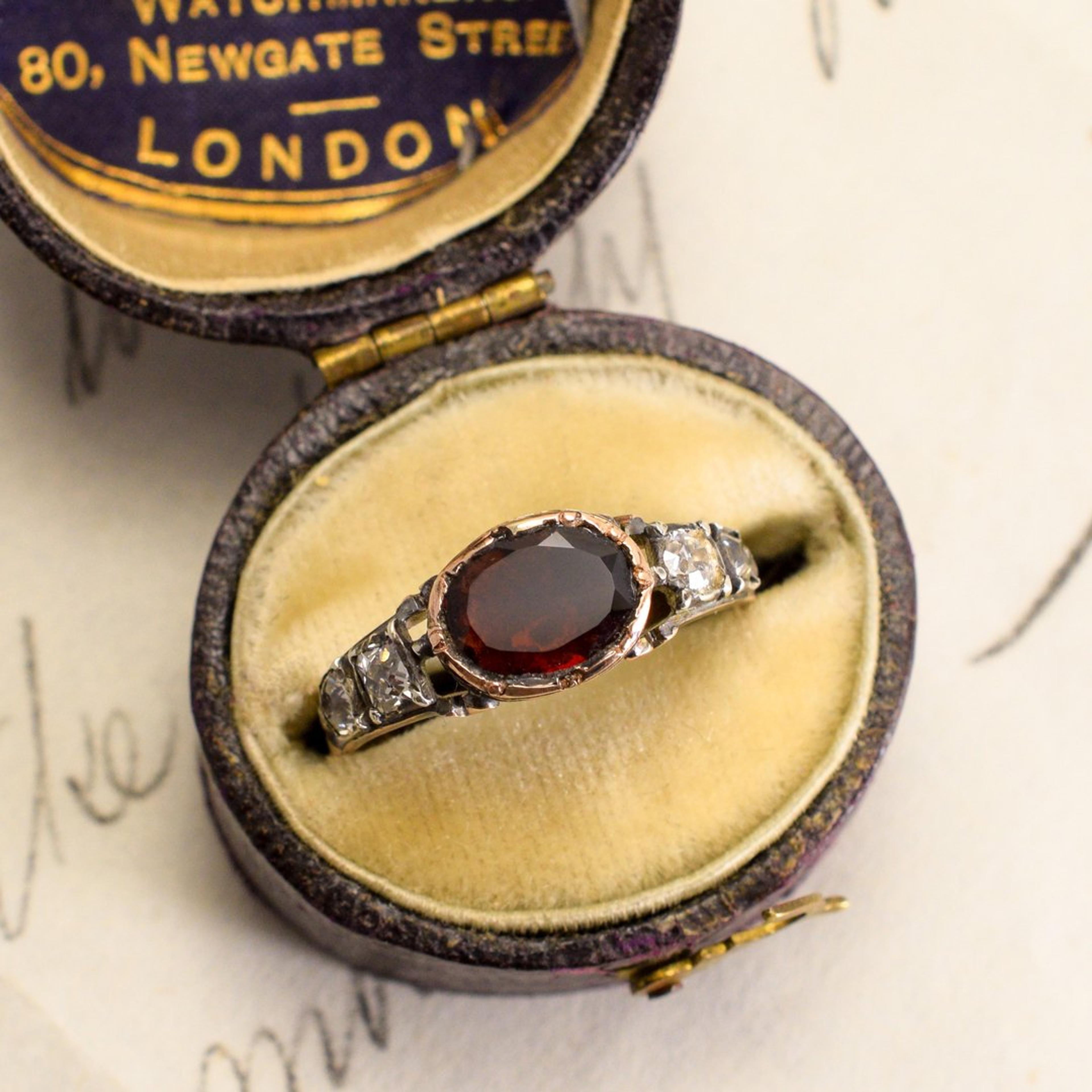 Georgian Garnet and Old Mine Cut Diamond Ring