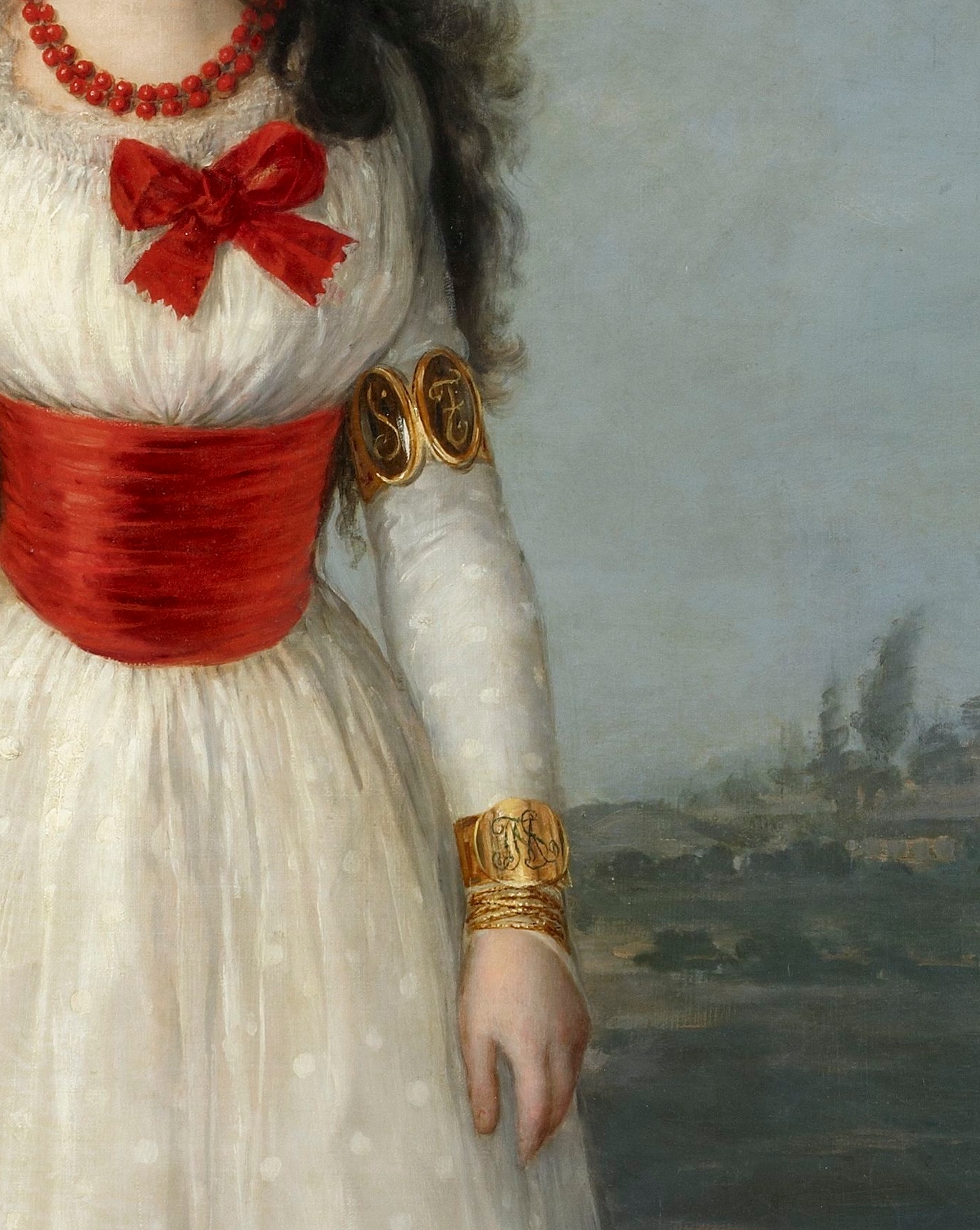 Maria Teresa de Silva wearing a monogram ‘M’ bracelet on her wrist....