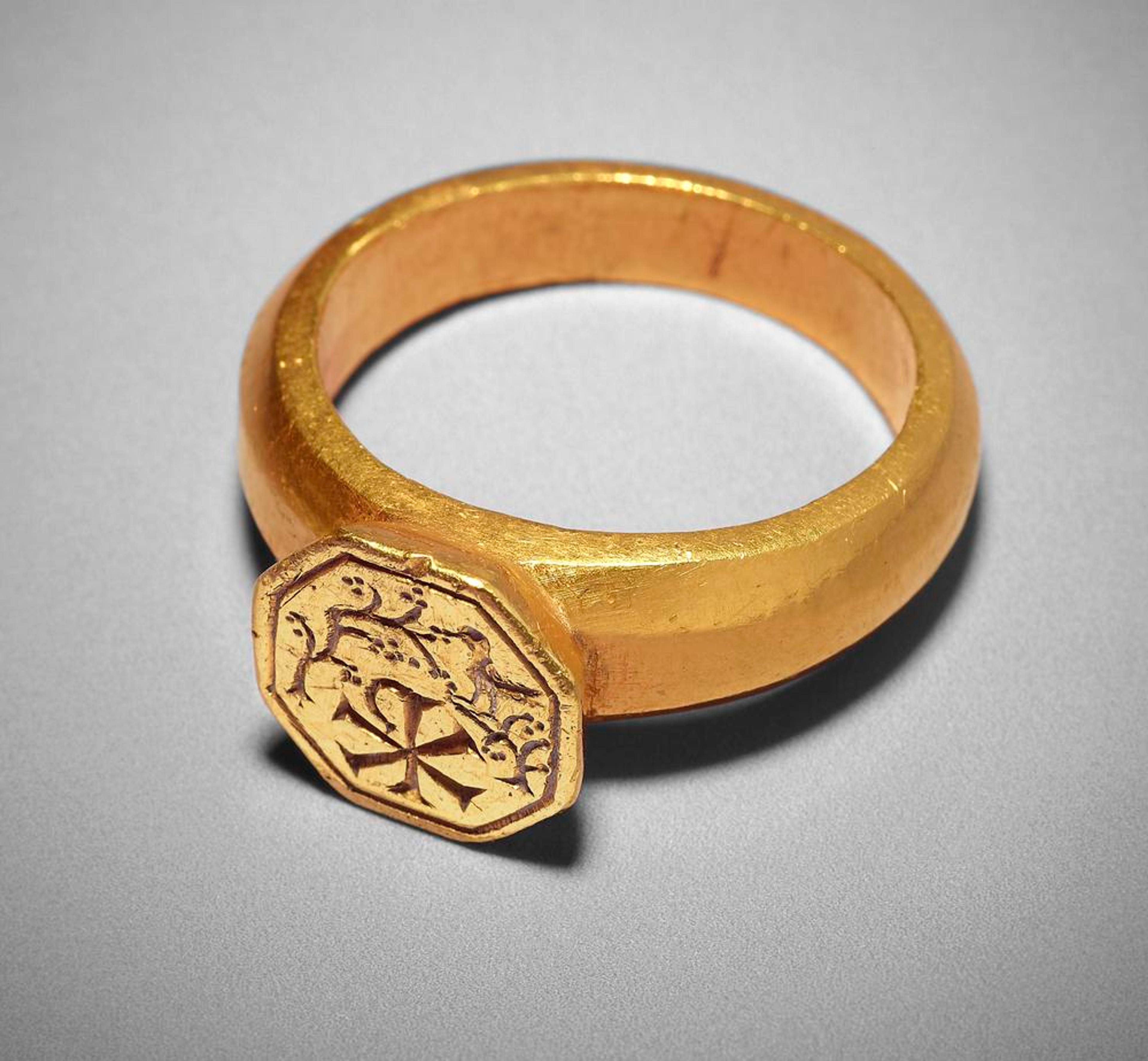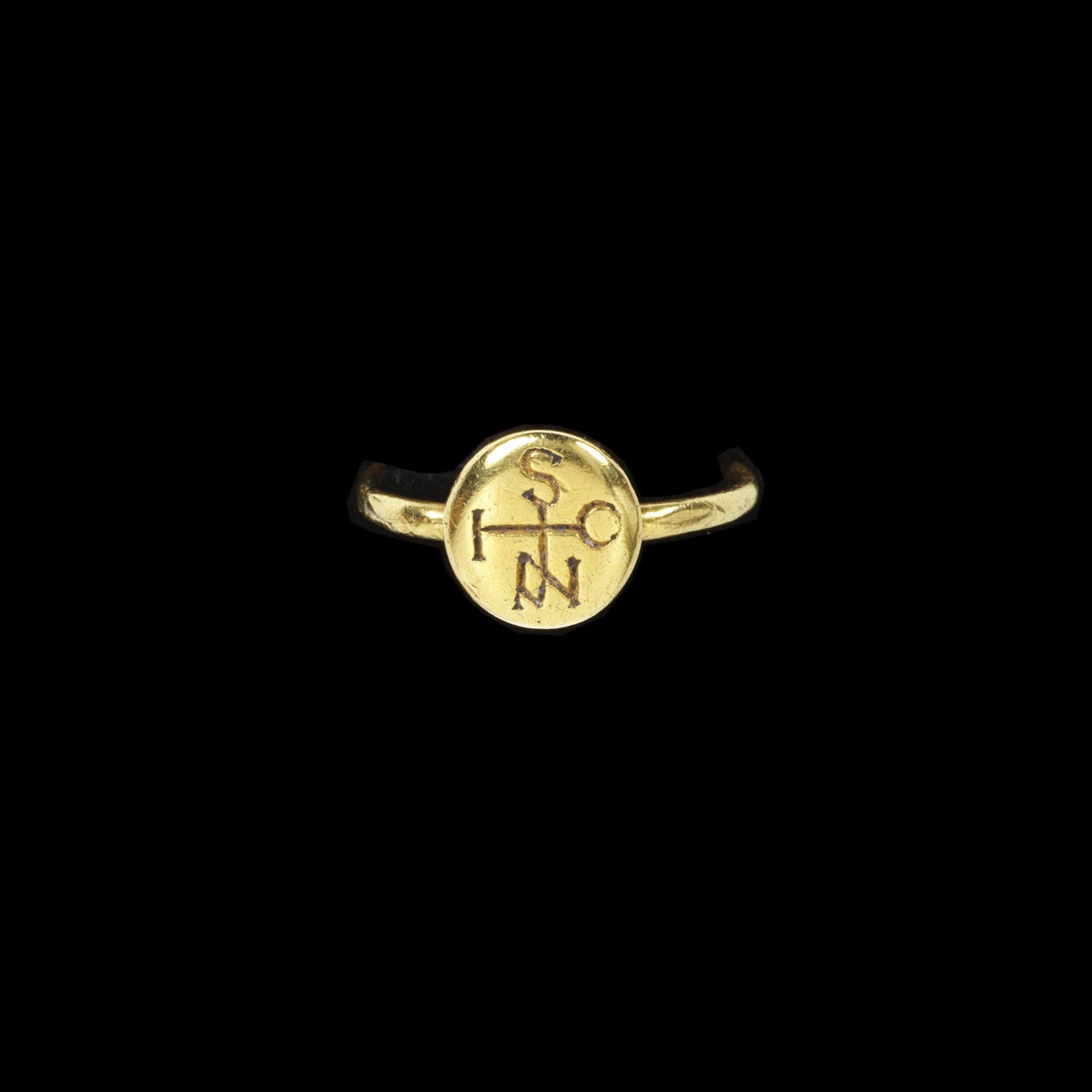 Cross monogram ring spelling "IOANIS" or John, made in the 6th-7th century....