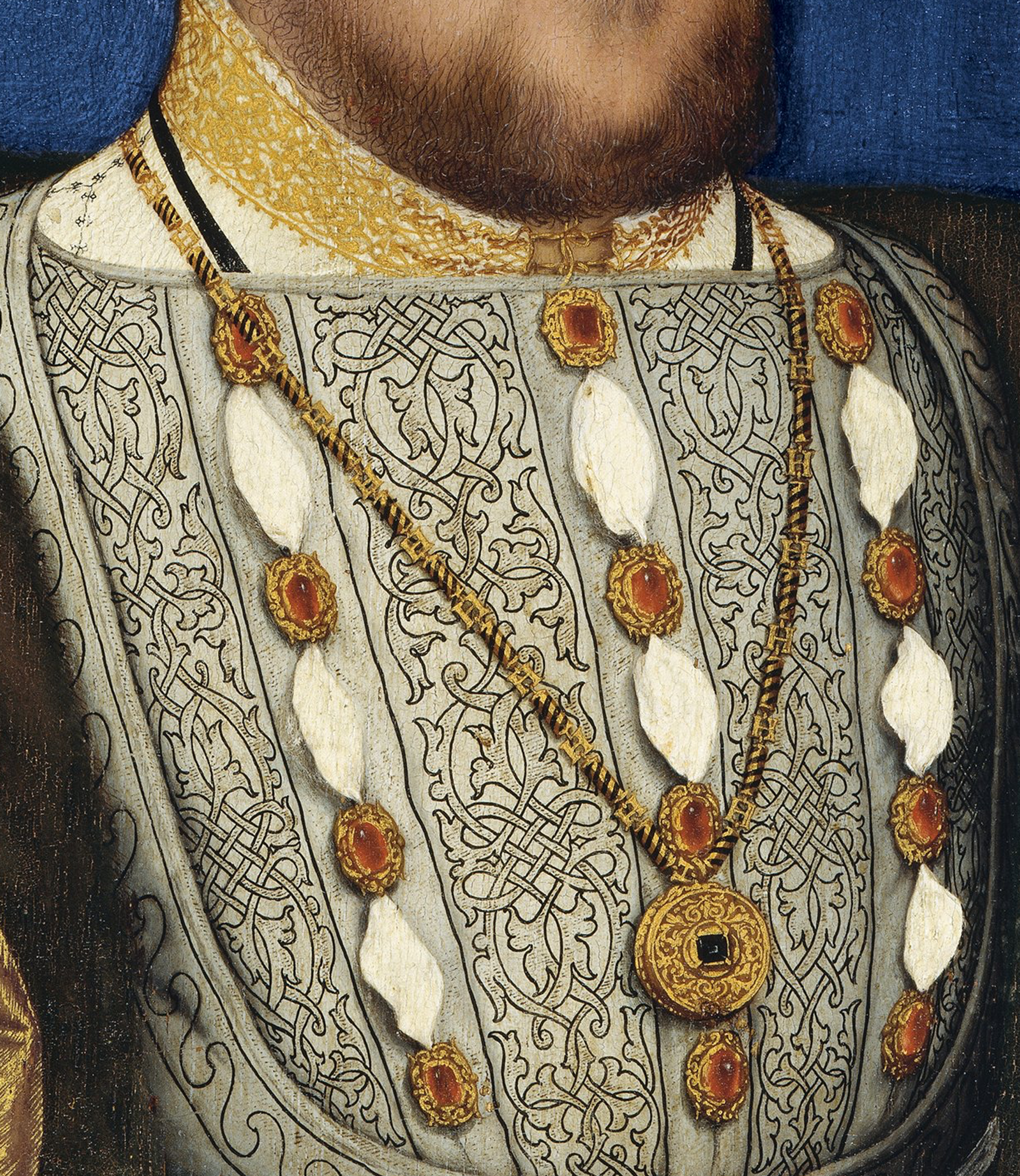 Note the ‘H’ on the chain. Detail from Henry VIII by Hans...