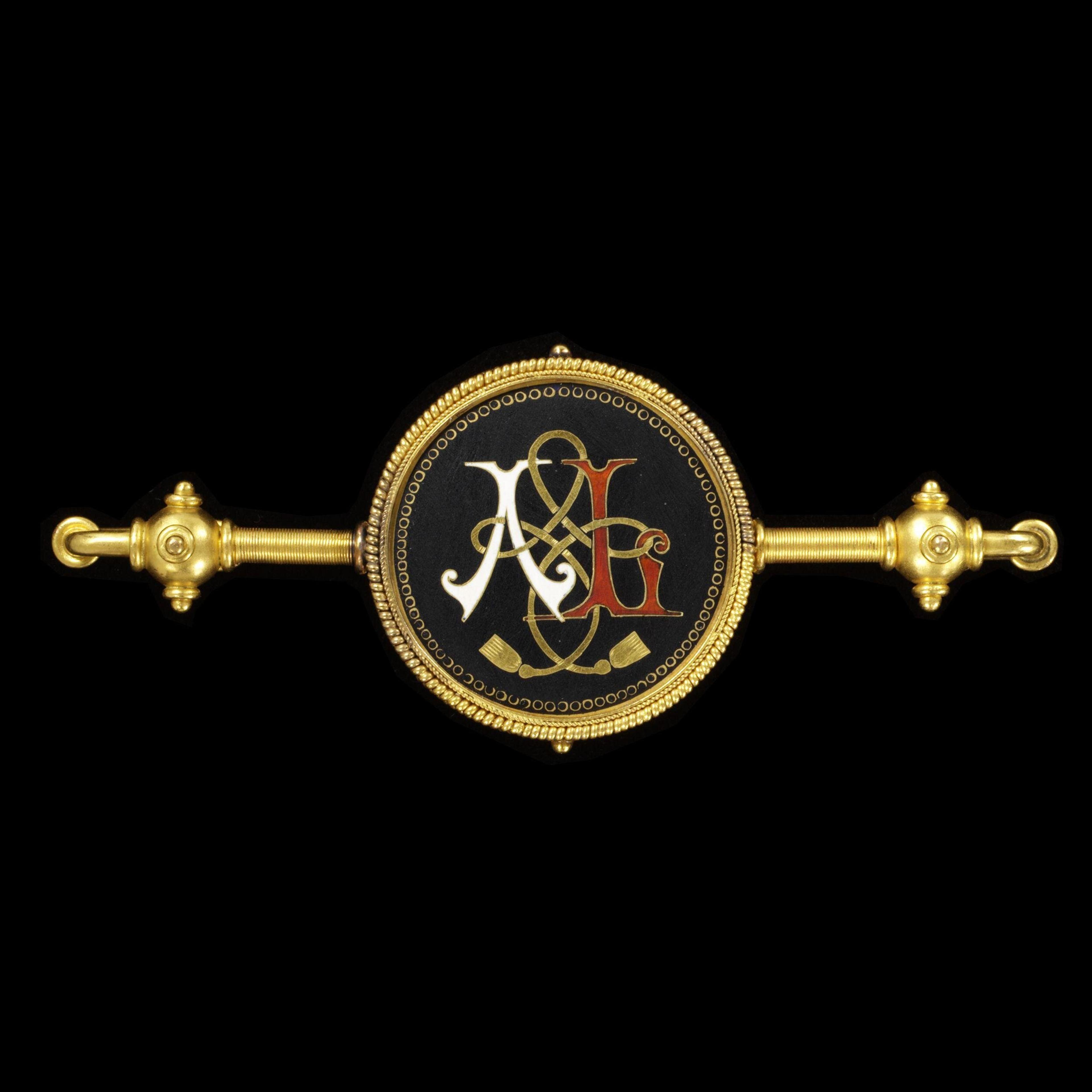 Brooch monogrammed with ‘A’ and ‘L.’ It has a compartment on the...