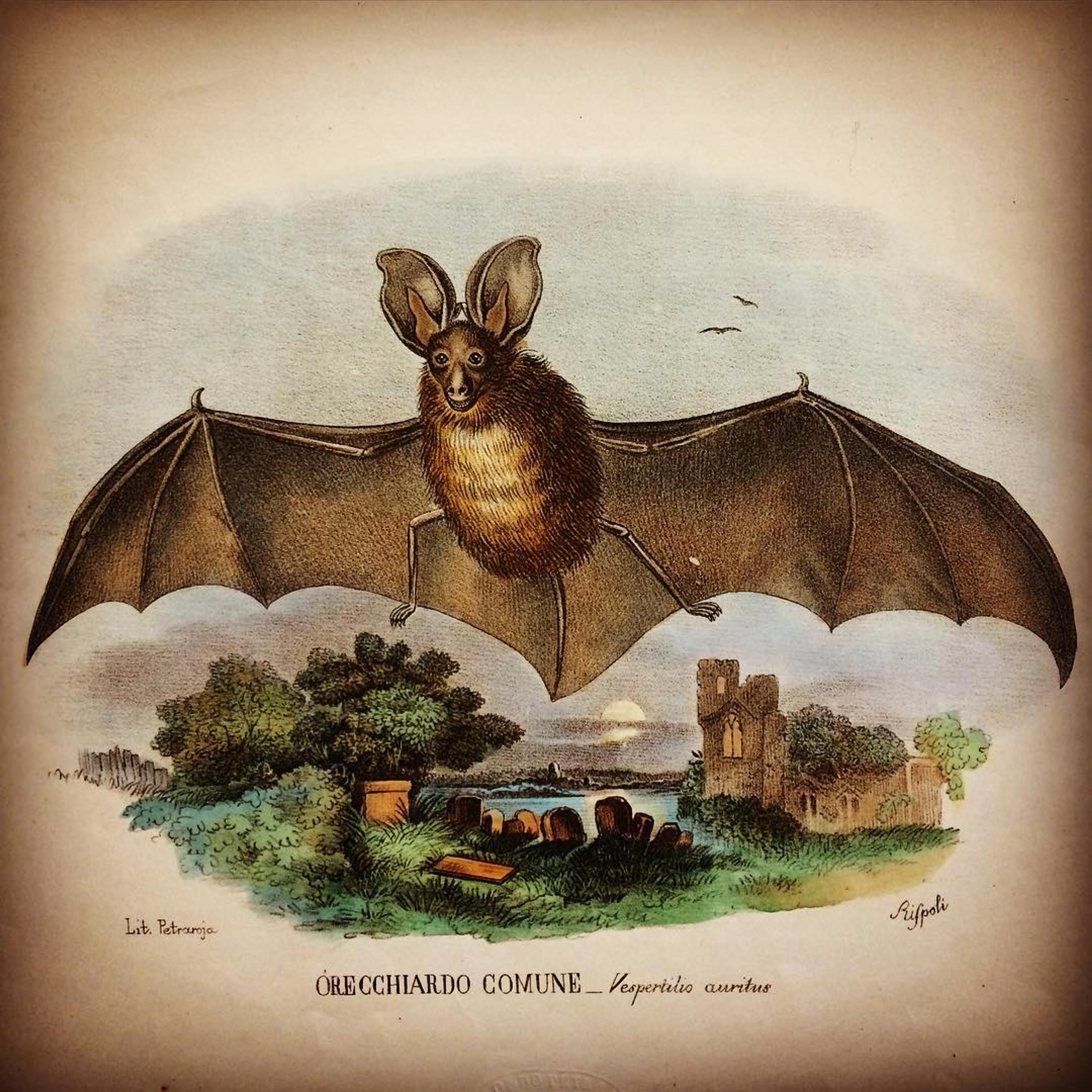 A diamond-encrusted gold bat is suspended from fine golden chains. Her body is a natural pearl, and her eyes glitter fiercely. Originally I made this piece for myself because I've always loved bats. Did you know they're the only mammal that can fly?