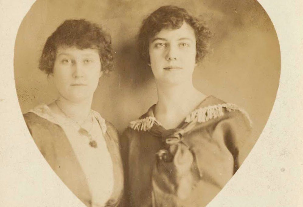 Image: Undated photo of two women in a heart, from "The Found Image collection" at the Lesbian Herstory Archives.