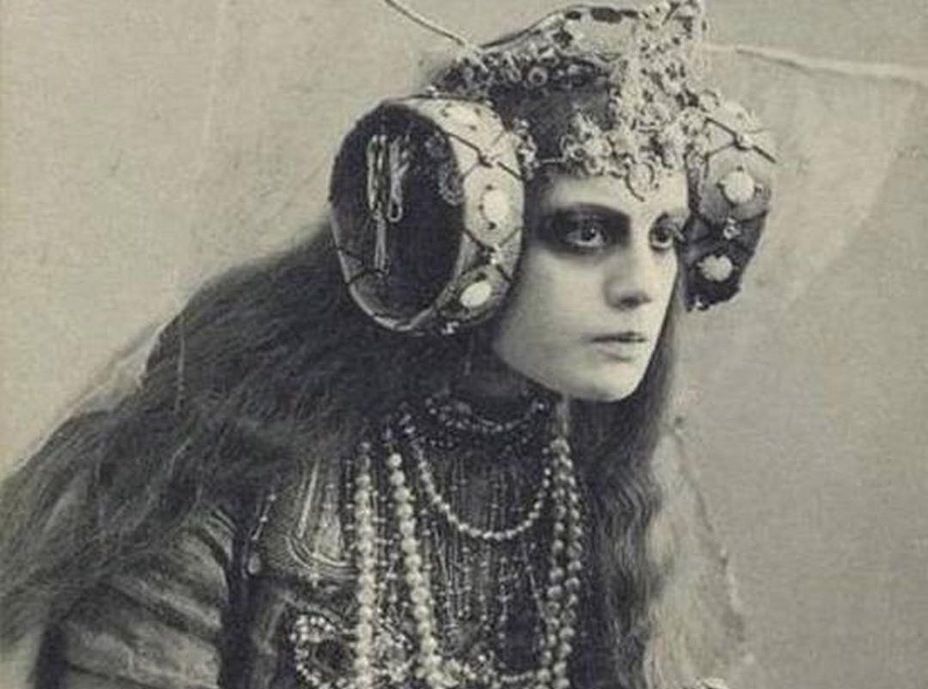 Image: Maria Germanova as The Witch. Costume Designs by Vladimir Egorov for Konstanin Stanislavski's production of Maurice Maeterlinck's 'The Blue Bird ' at the Moscow Arts Theatre , 1908