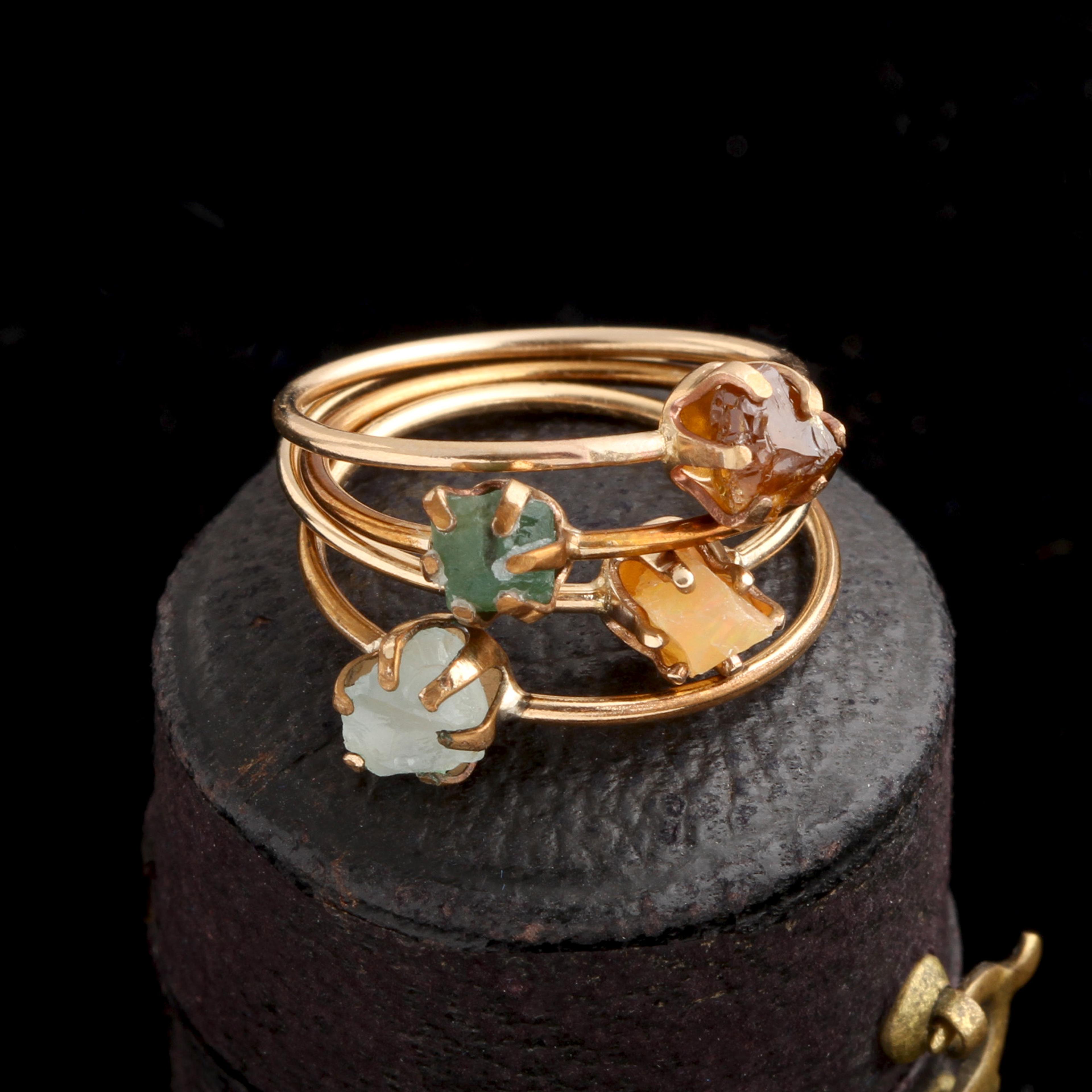 Gems are at their best, I think, in their unrefined state. This is how they look straight out of the earth, without facets, polishing, or any other fussy treatments. Expect yours to have chips, cracks, inclusions, dark spots, remnants of neighboring rock: all fascinating "flaws" that make them more lovable. Please note: naturally garnets range from a light, golden hue to a deep red—the ring you receive may fall anywhere in that range.