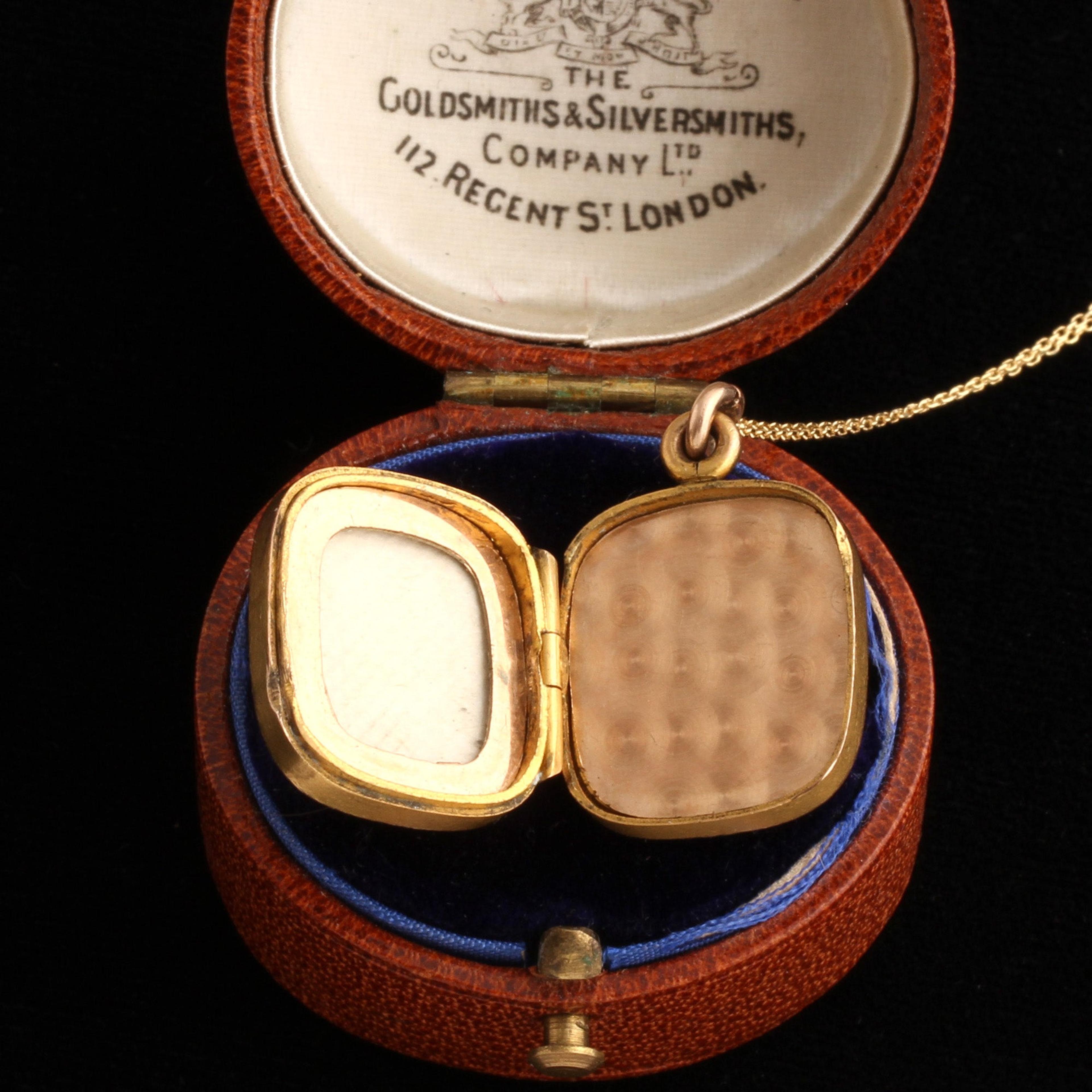 A sweet late Victorian locket fashioned in gold and embellished with a tiny bouquet of flowers, each set with a seed pearl.