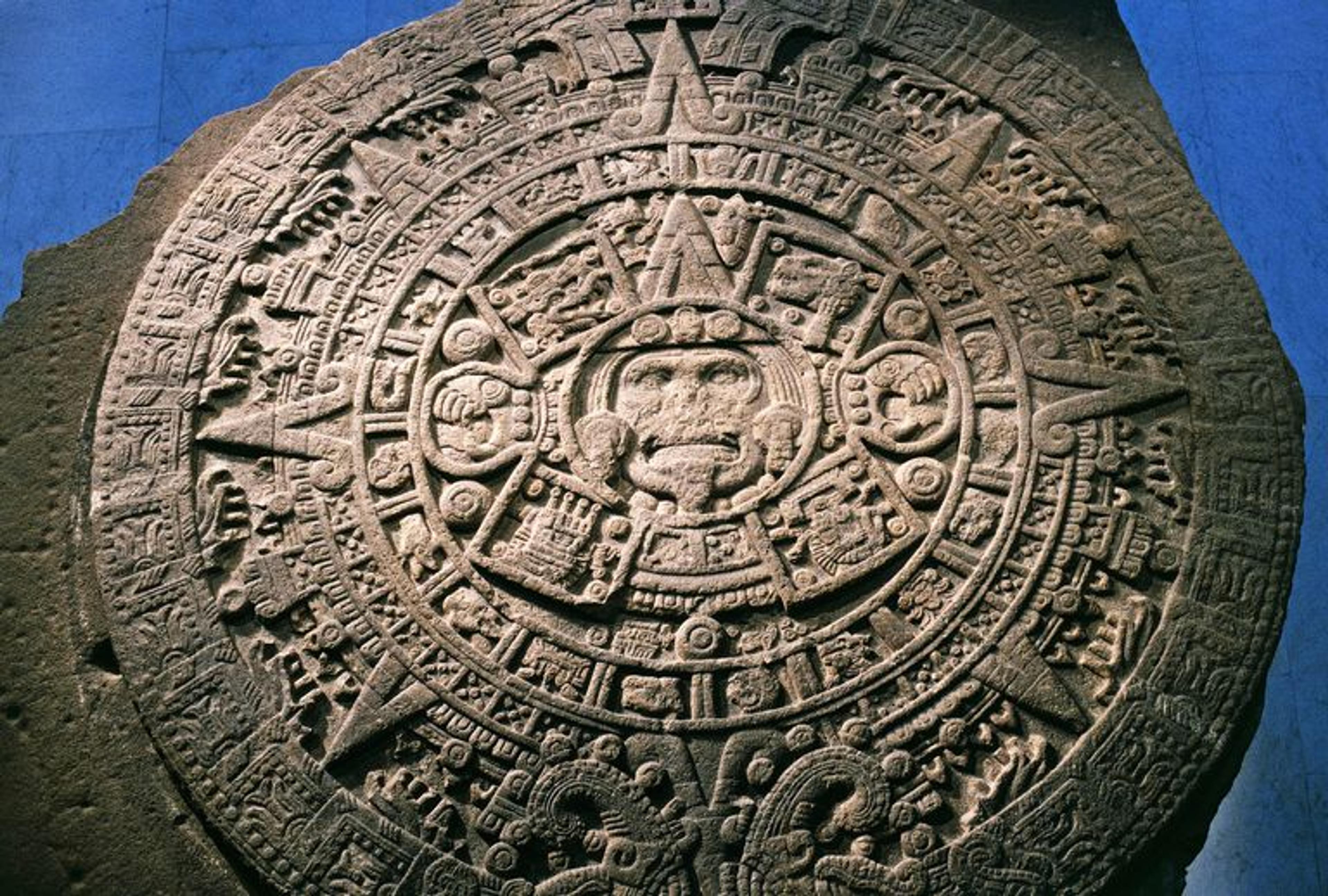 Image: Sun Stone or Aztec Calendar Stone, found in Tenochtitlan in 1789, Mexico, Azteca civilization, 15th century.
