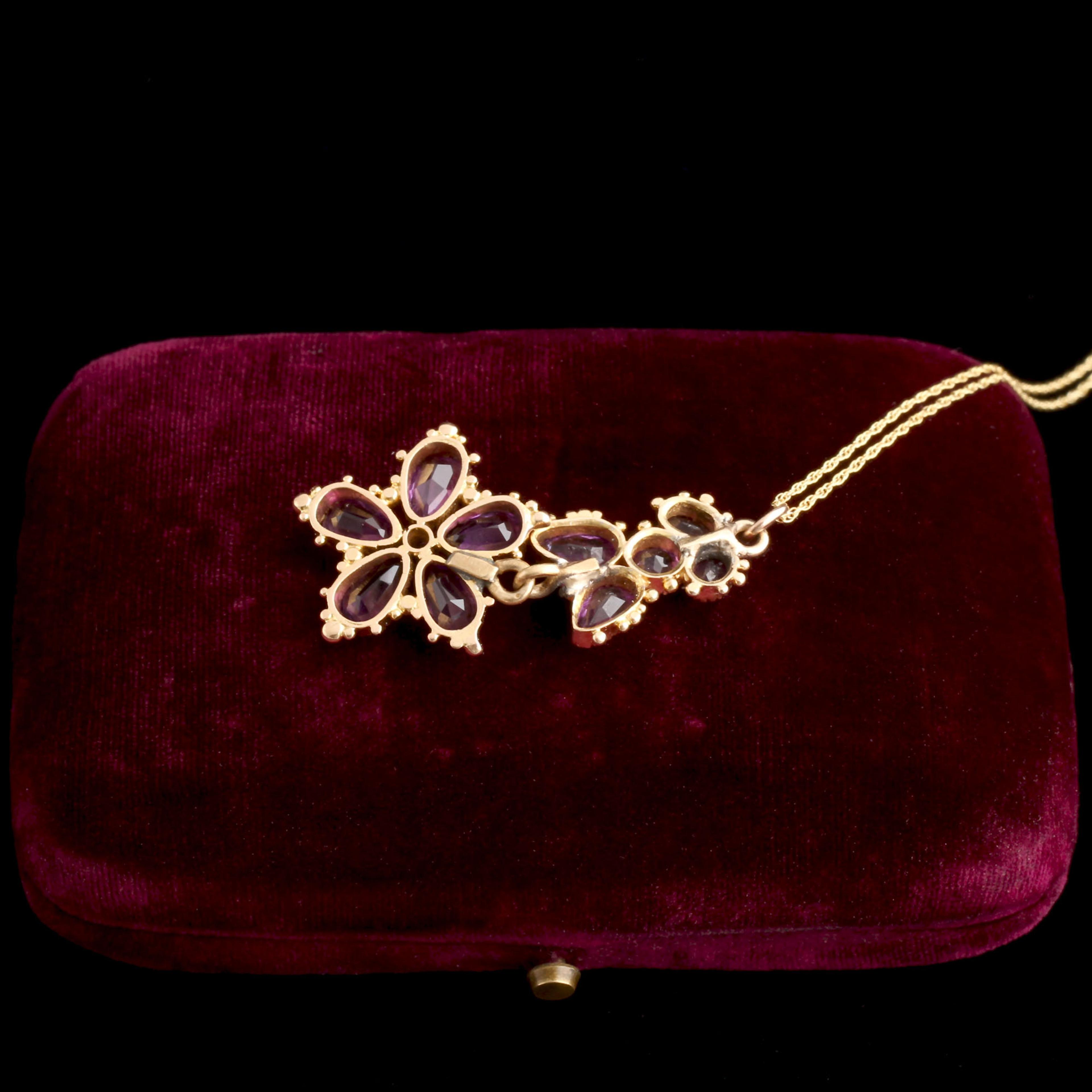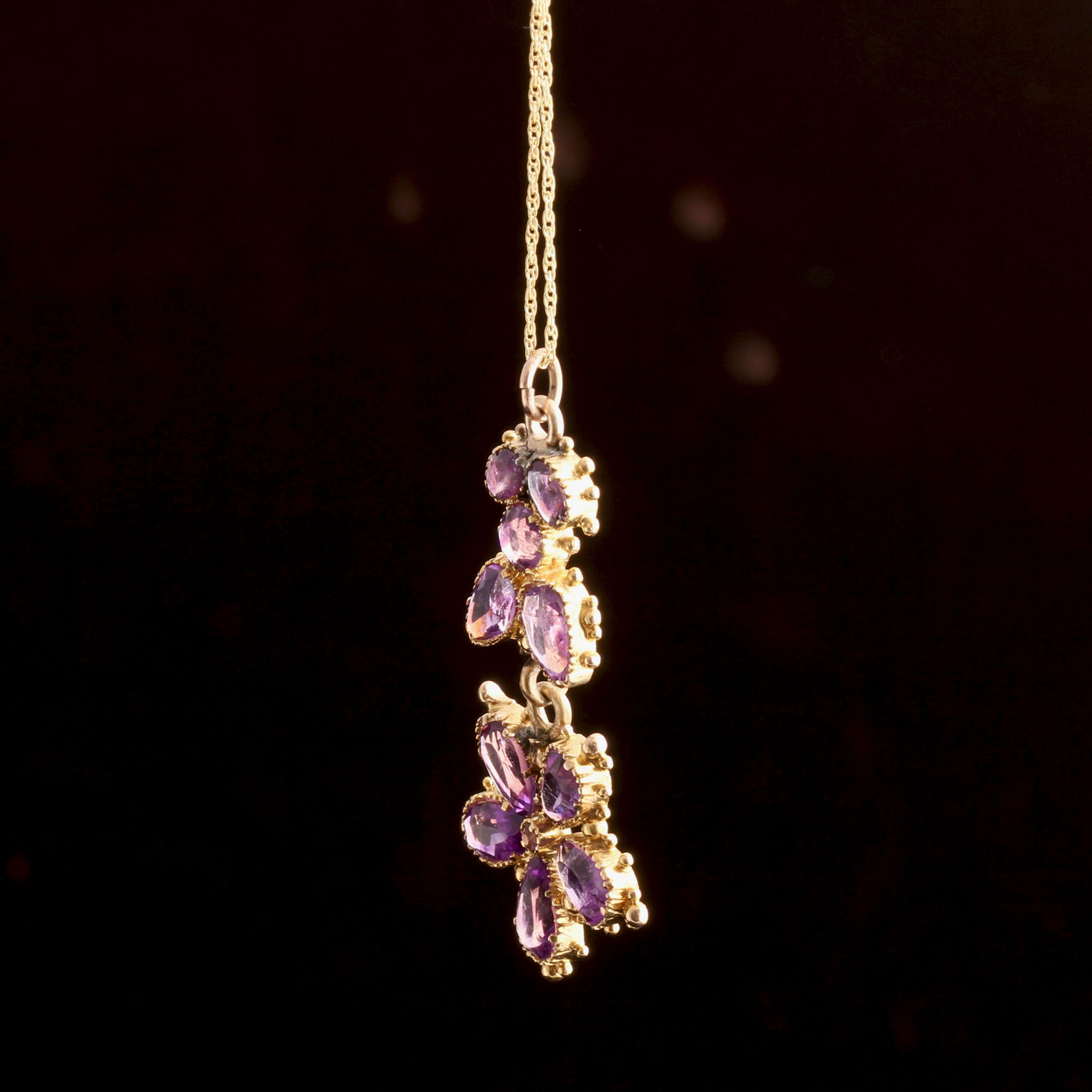 14k gold (tests), round/pear/heart/oval faceted amethysts, new 14k gold chain