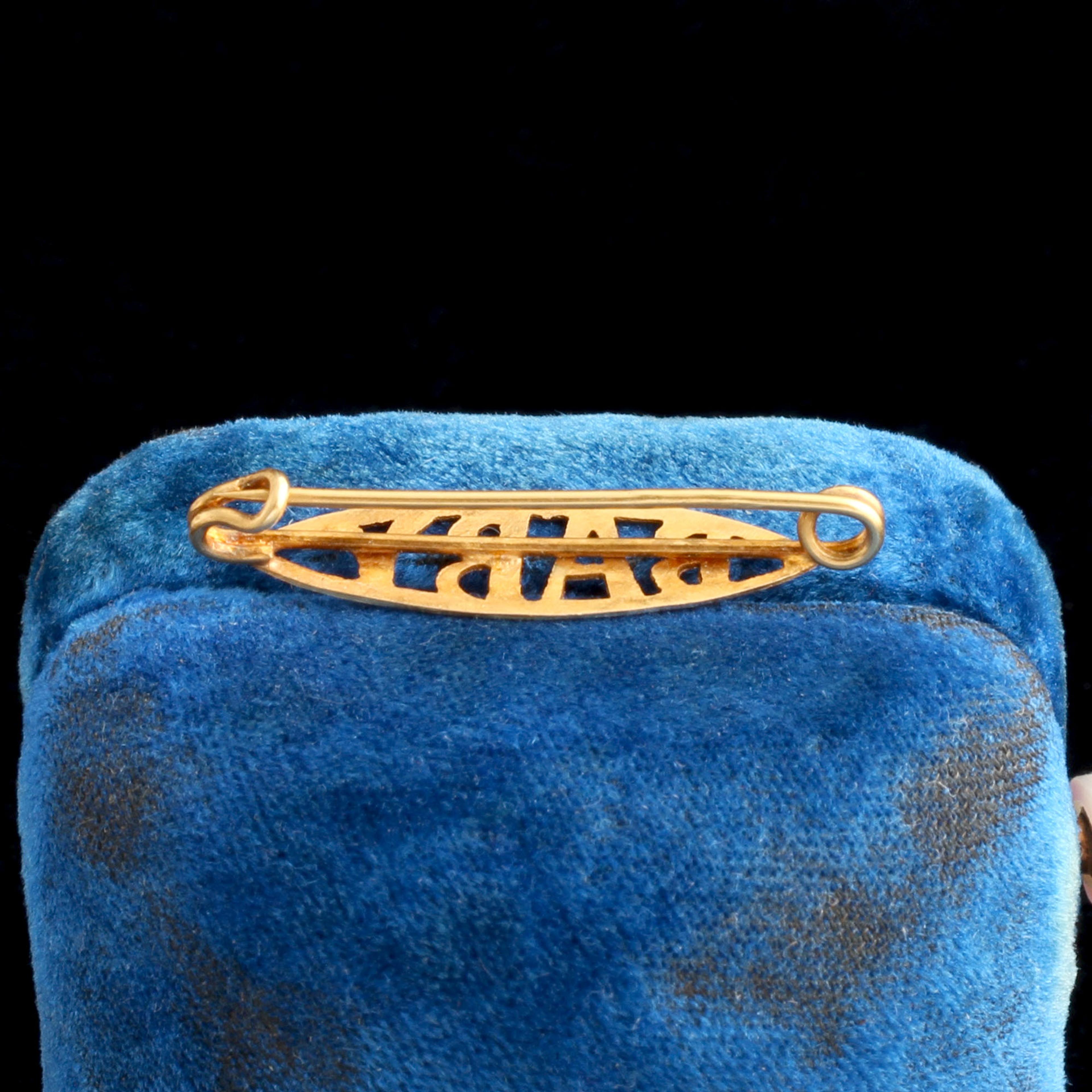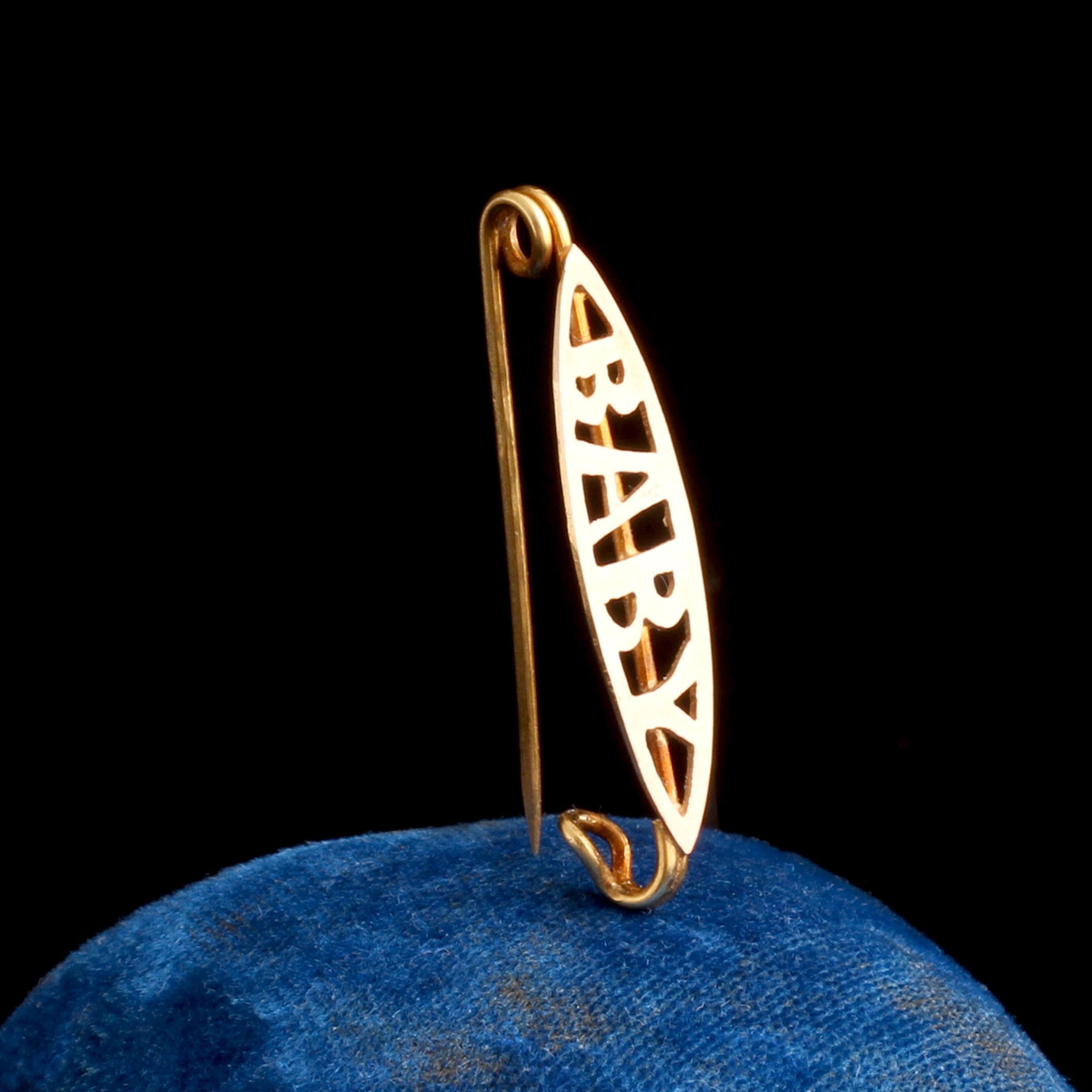What's up, baby? This gold pin from around 1900 was an optimistic gift for a new human.