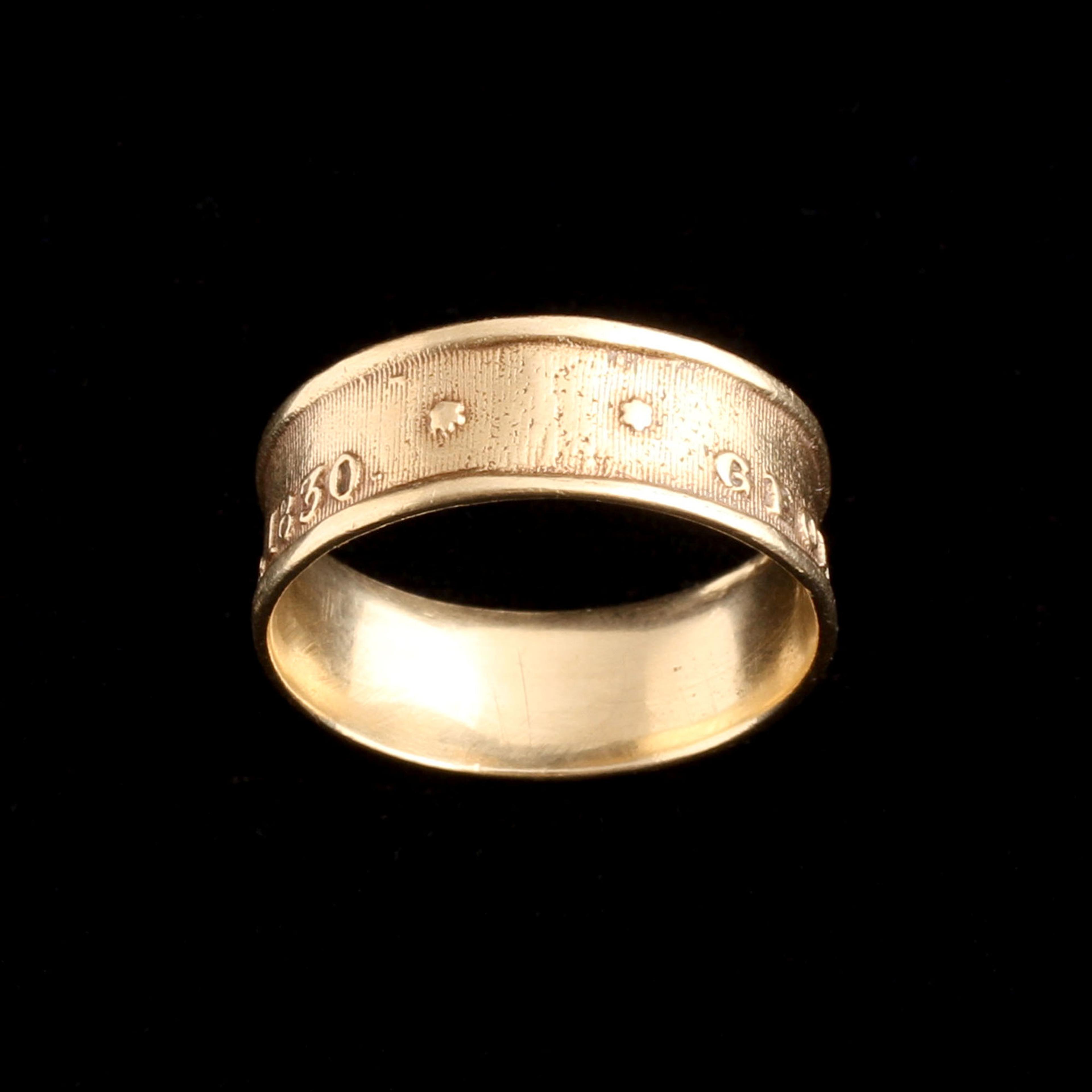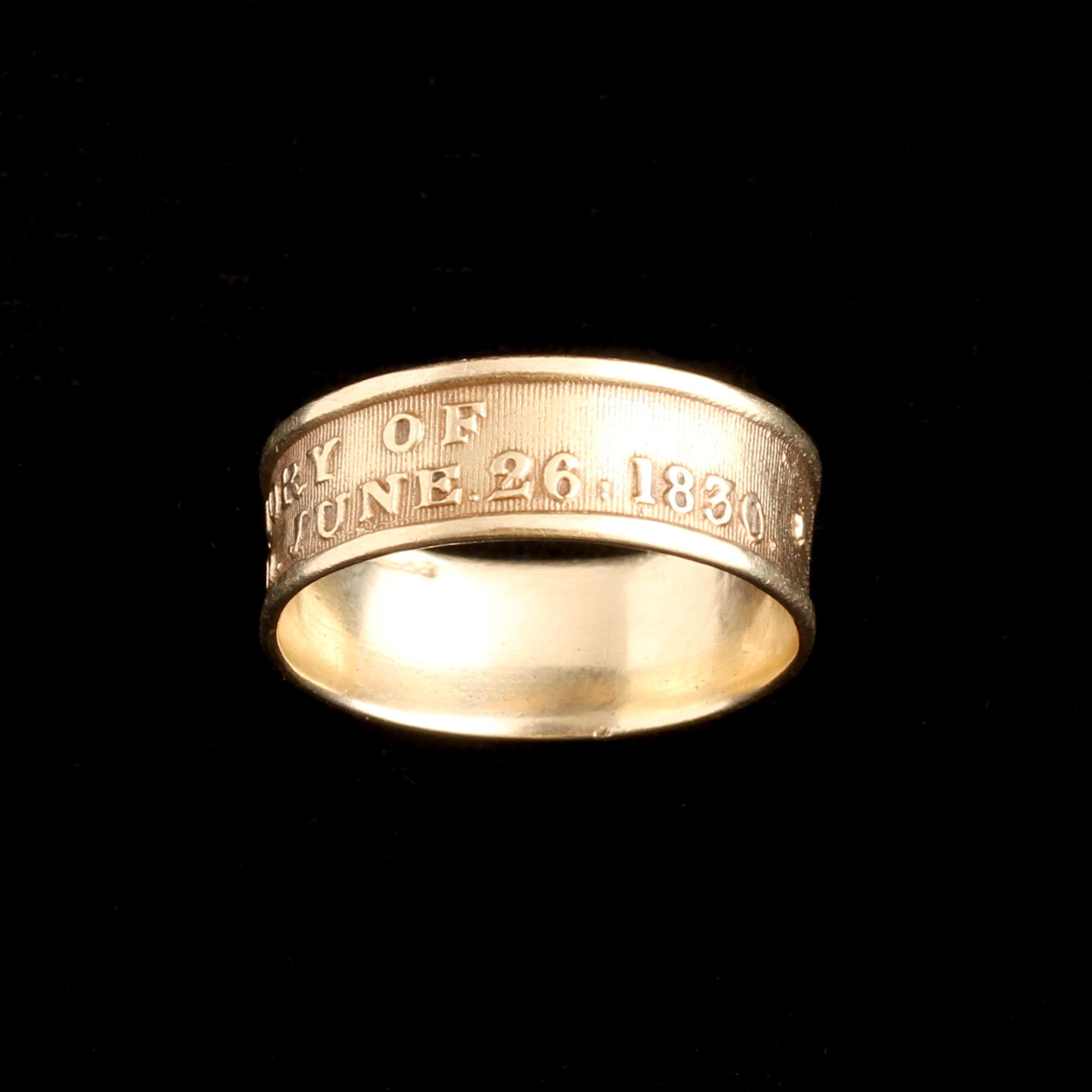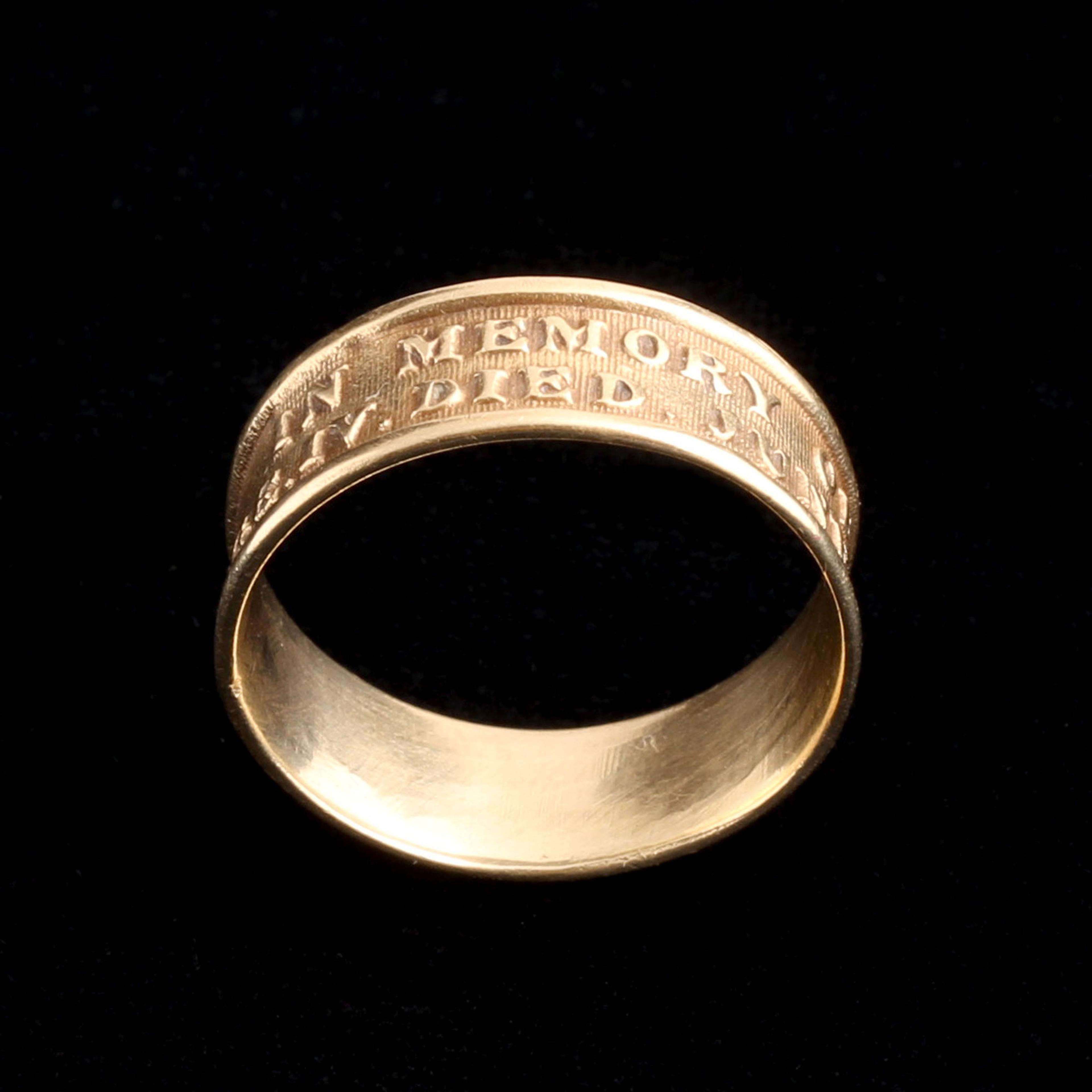 This is a royal mourning ring for King George IV, who died on June 26, 1830. Rings like this were commissioned by the Crown and distributed to courtiers, government officials, and members of the royal household as part of the elaborate funerary traditions for monarchs of the period. While each ring was individually made, they were produced in large quantities (hundreds, possibly over a thousand) because mourning jewelry for sovereigns was a formalized practice by the 18th and early 19th centuries. Sill, they're rare. Surviving examples are in the British Museum and Victoria & Albert Museum, and occasionally one pops up for sale at auction. These rings weren’t sold to the public; they were gifts tied to loyalty and service. It would have once sat on the hand of someone in the inner circle of 1830 court life.