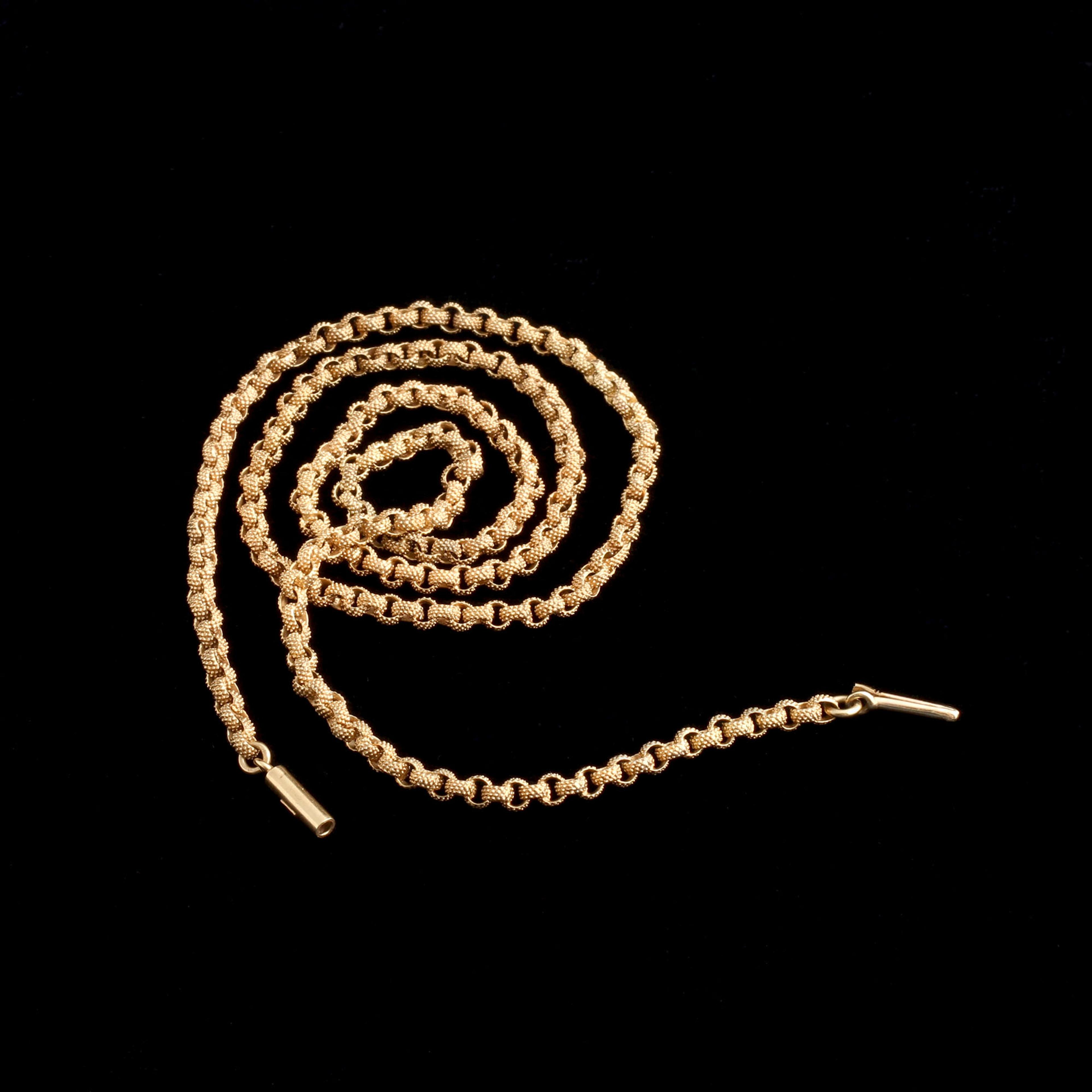 The studded surface of these links is a specifically Georgian thing. I have seen many larger-scale chains from the same era, around 1800, but this skinny, miniaturized version? Fantastic. And so wearable in the way we like to style jewelry today.