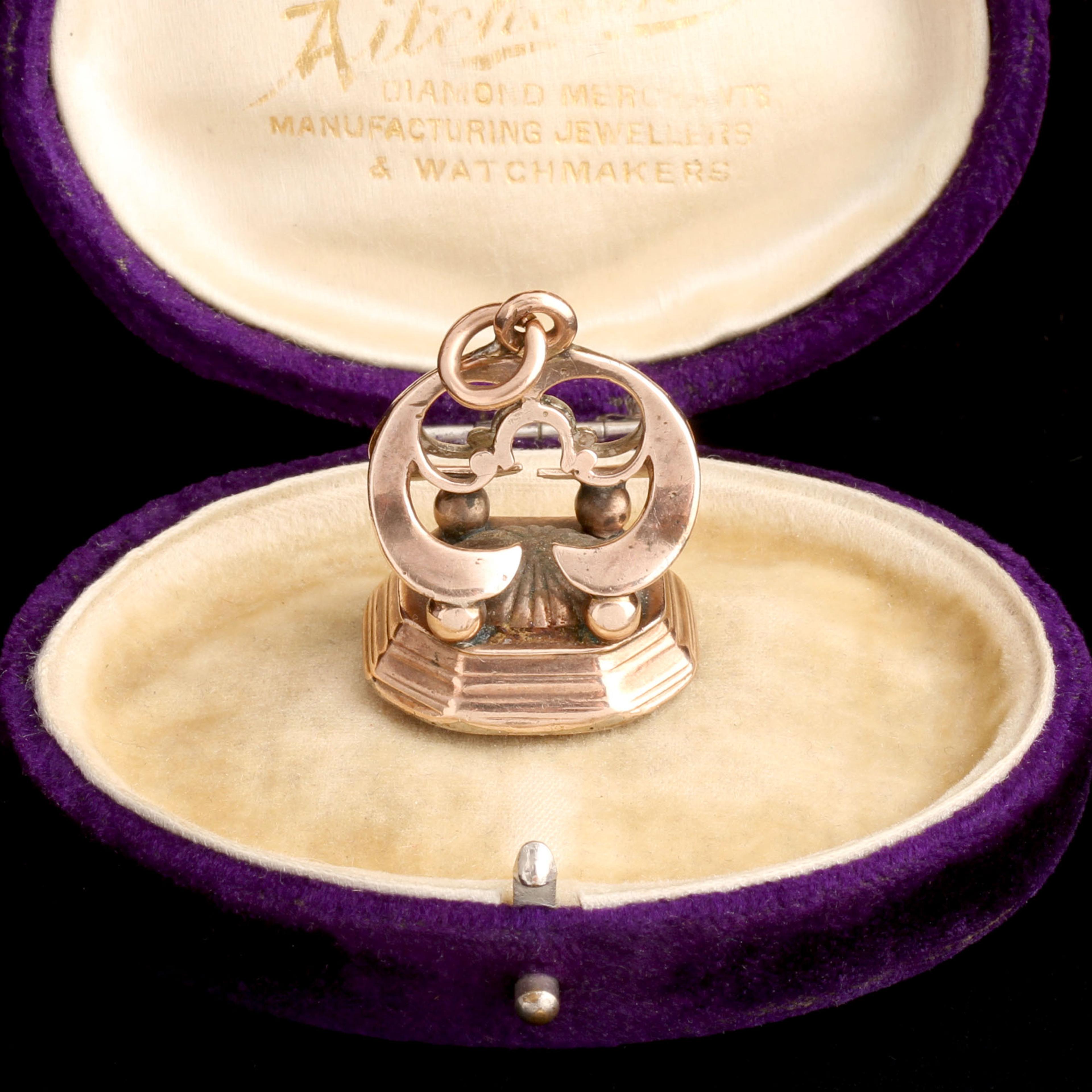 A pair of winged cherubs are shown playing jeu de volant—an early version of badminton, known in English as “battledore and shuttlecock.” The game, popular in 18th- and early 19th-century Europe, was considered a genteel pastime, emphasizing agility, lightness, and playful competition. Here it’s immortalized in a citrine intaglio, set into a gold-cased fob meant to impress wax seals. But as with many Georgian motifs, there’s likely a double meaning. The shuttlecock’s flight was often likened to Cupid’s darting arrows, and games involving cherubs could carry undertones of flirtation, dalliance, and the back-and-forth of courtship. There's a vibe here.