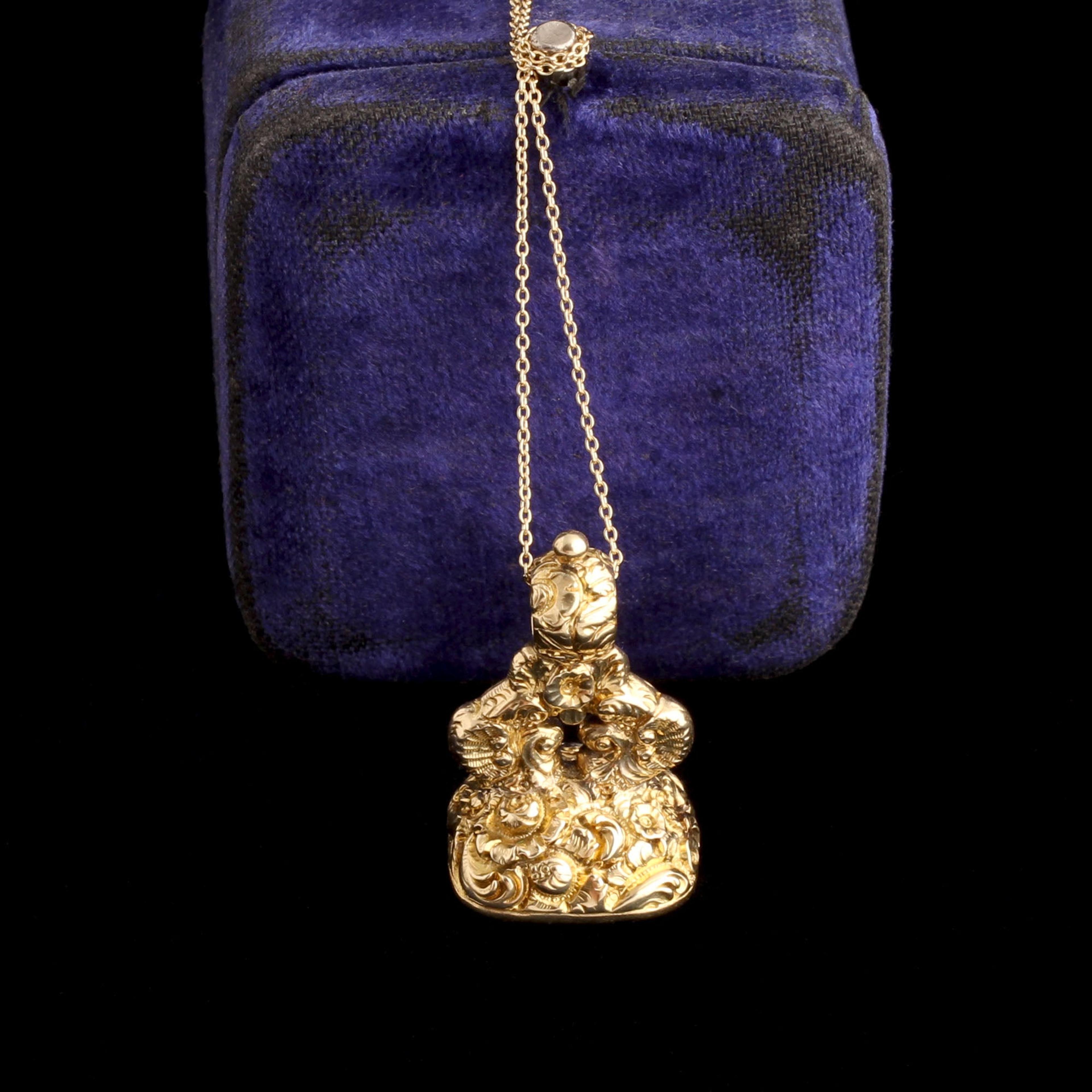This Georgian wax seal fob features an ornate mounting and an amethyst seal with the initial “D”. This piece would have been impressed in hot wax to form a seal on correspondence way back in the days before postage stamps and self-adhesive envelopes.