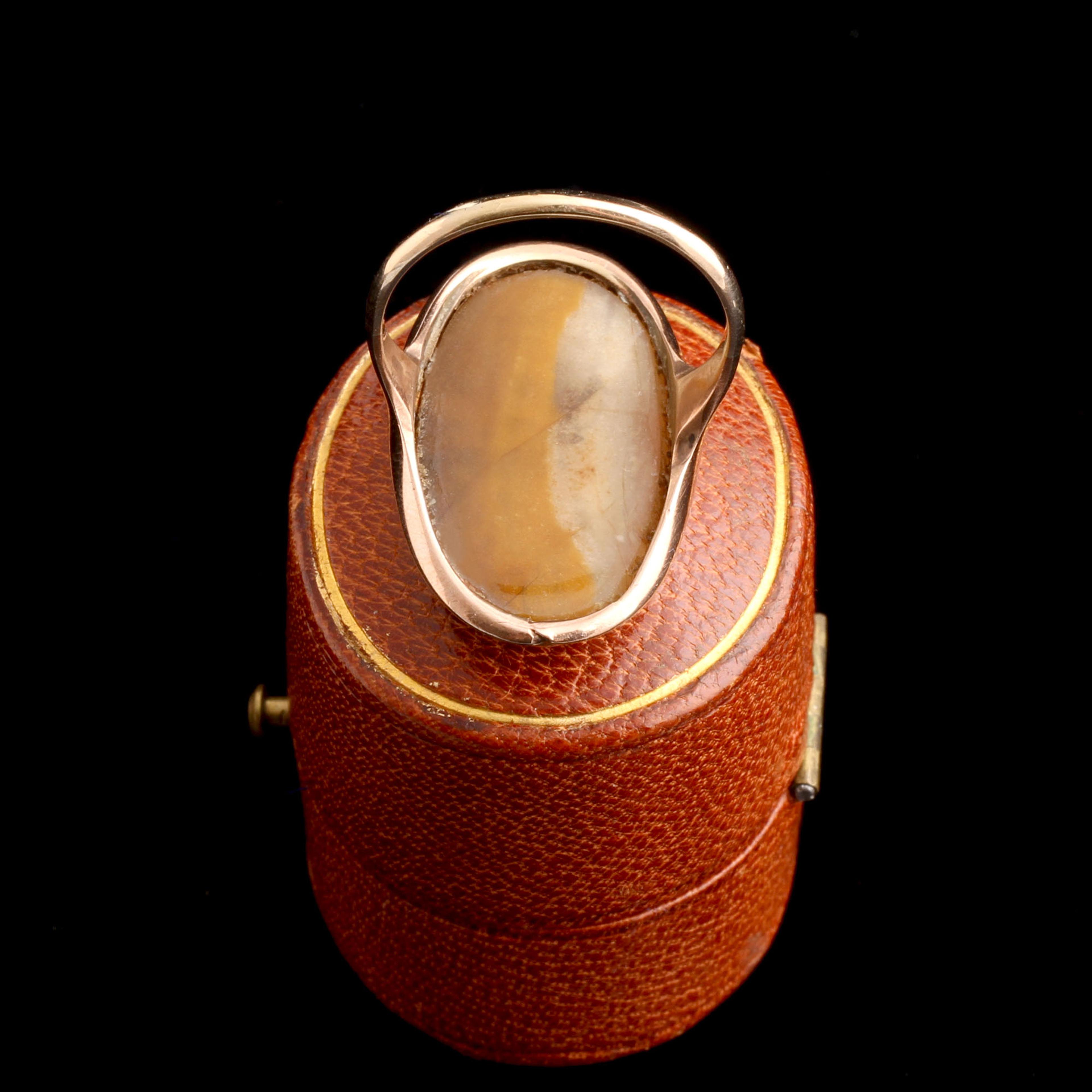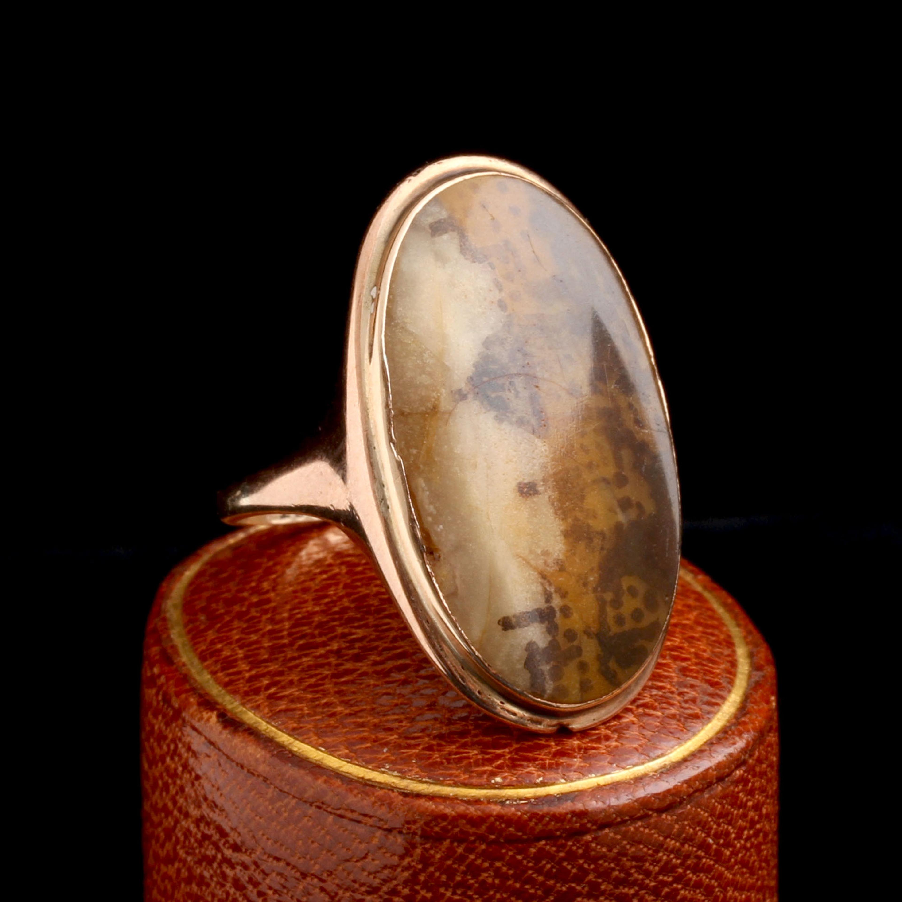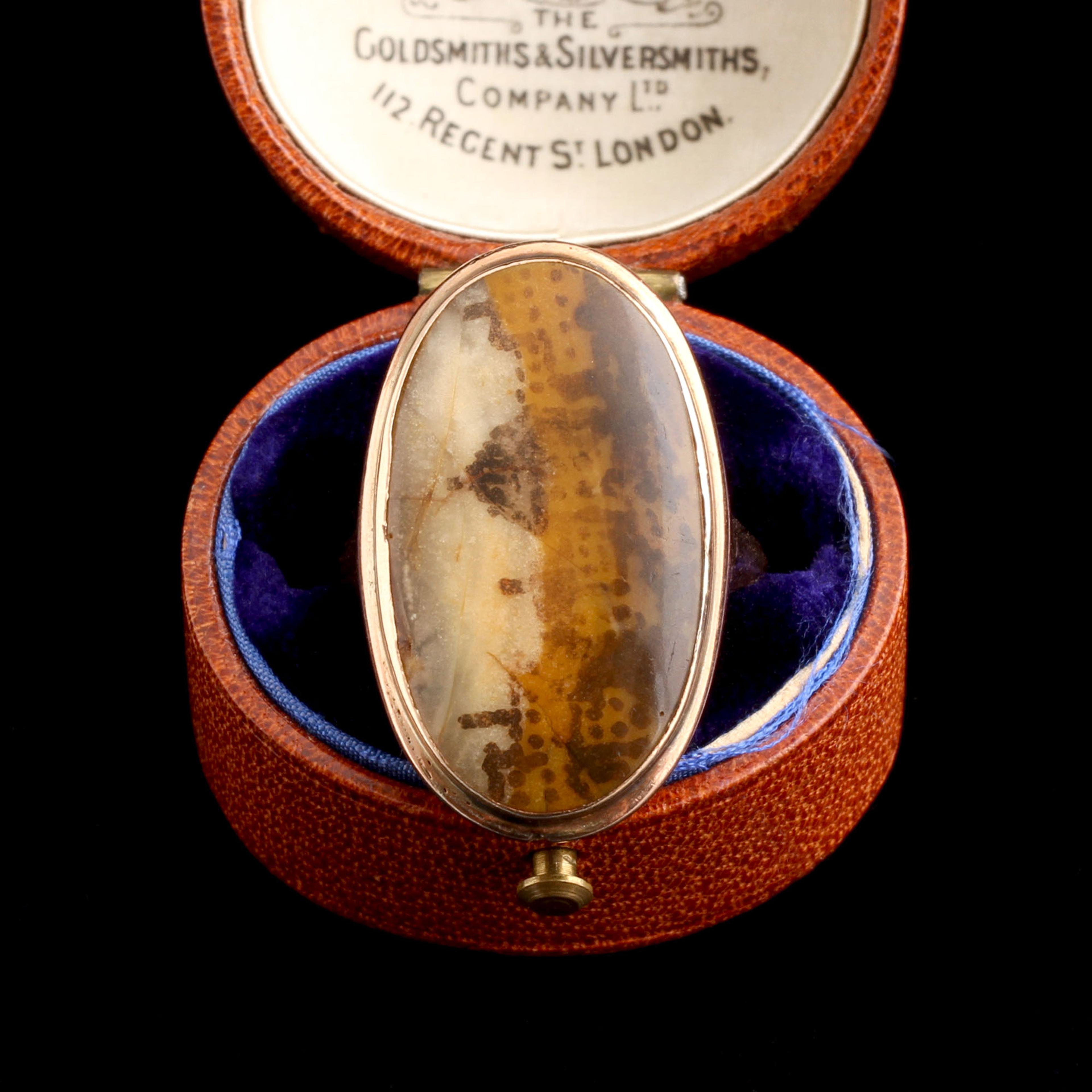 9k gold (marked), picture agate