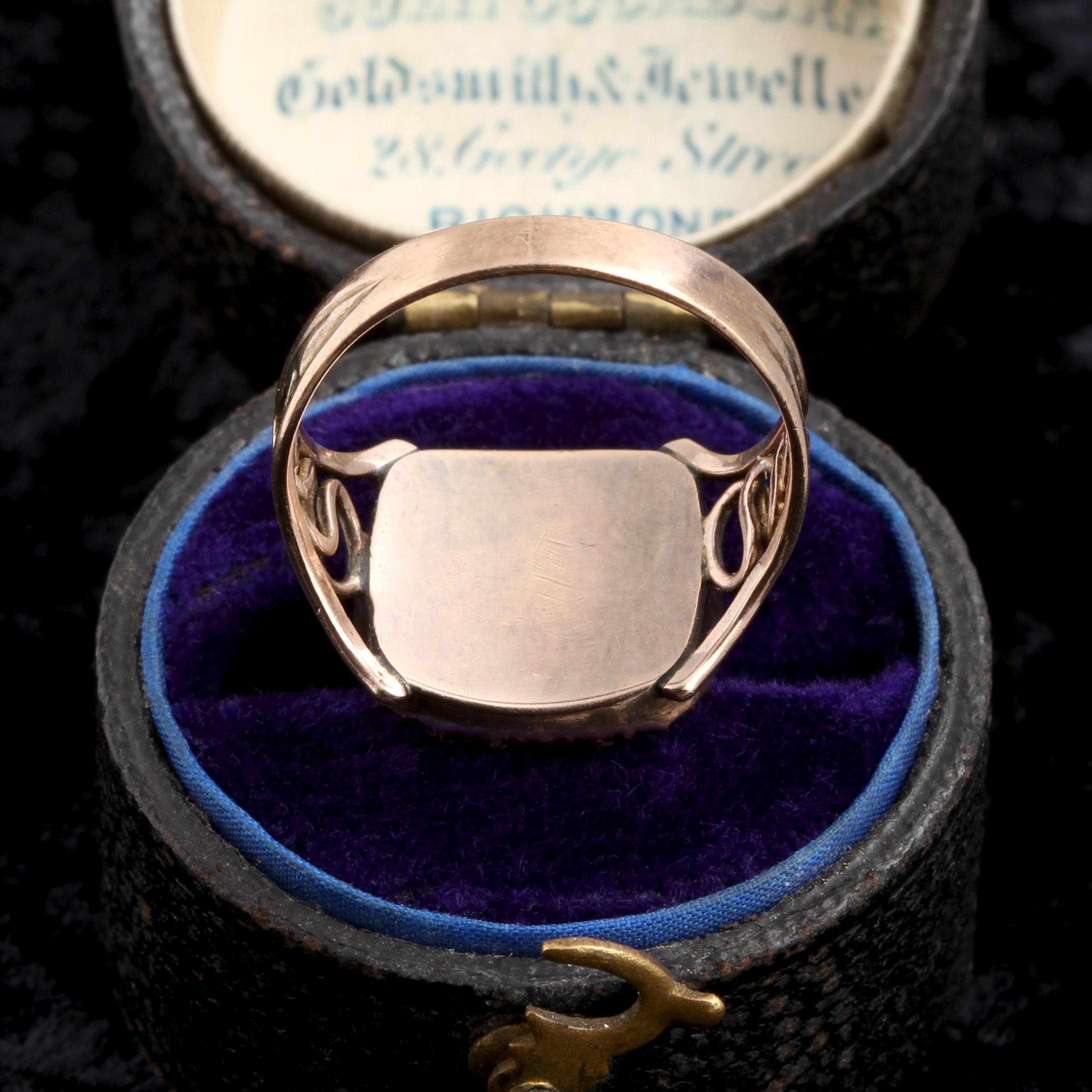 The boat-shaped marquise diamond cut was developed around this time, supposedly to imitate the smile of Louis XV’s mistress, the marquise de Pompadour. Paste — an imitation gemstone made from leaded glass — was newly developed in the 18th century, and set into jewelry with the same creativity and care as its more precious counterparts. Real and imitation gems were almost always set in closed-backed settings, lined on the underside with thin sheets of foil to enhance the color of the stone and highlight it's sparkle. This makes Georgian rings tough for modern women to wear, especially on an everyday basis: genteel, jewelry-owning ladies of the 18th century were not famous for working with their hands like we are. Nor did they wash their hands as much as we do. Water will virtually ruin a foiled setting, so take special care with your Georgian ring. Very little jewelry from this period is still in circulation, and it's very difficult to repair.