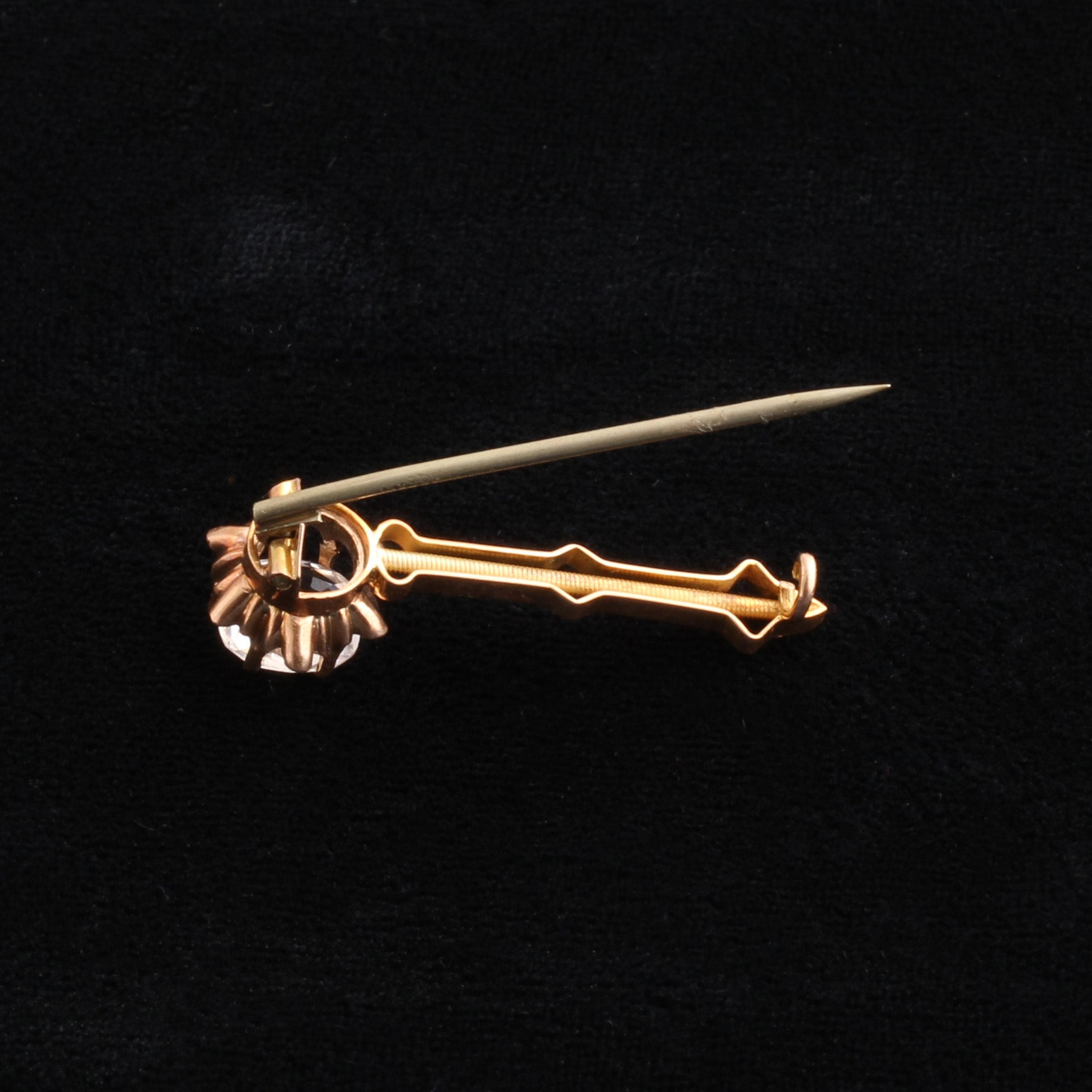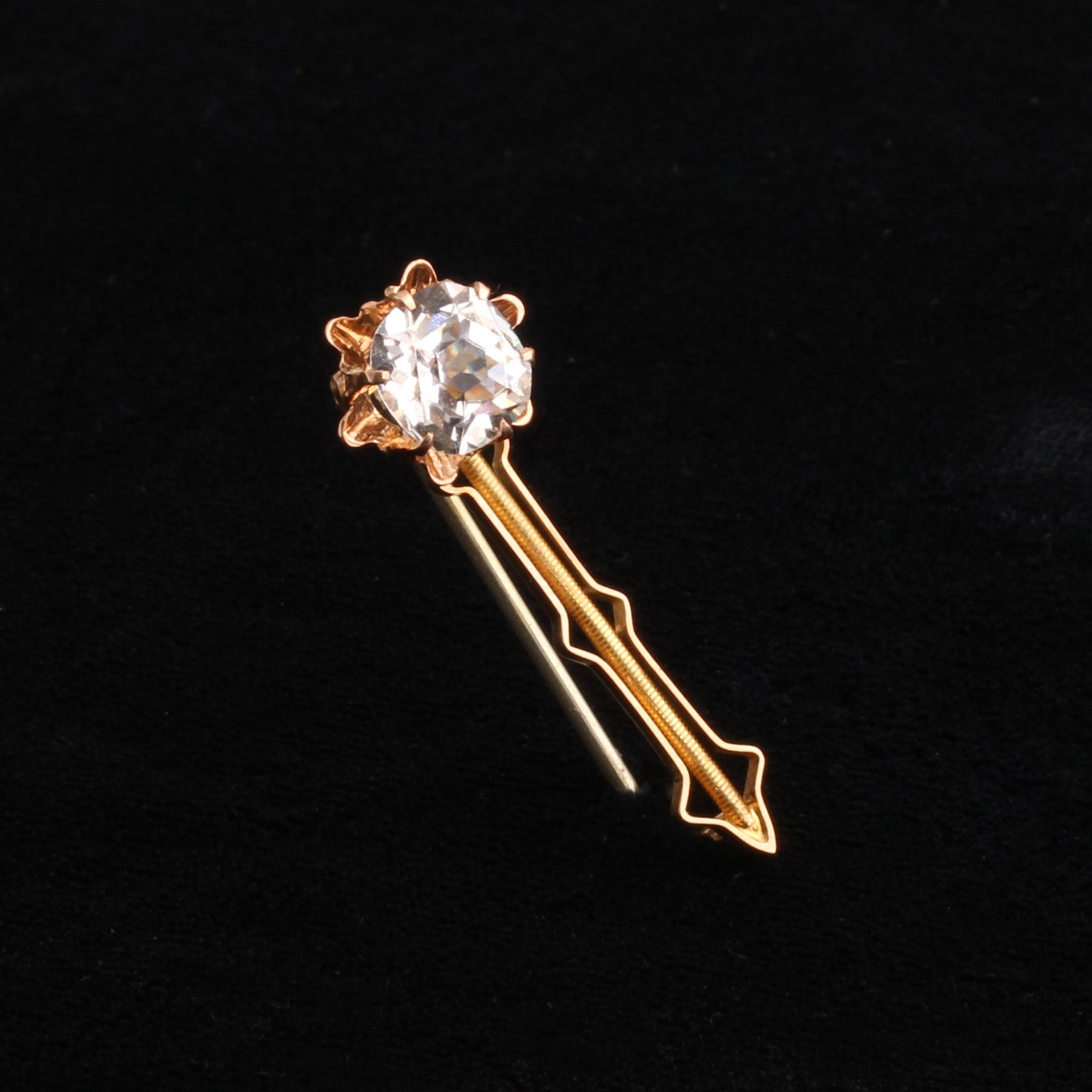 A souvenir from the 1835 appearance of Halley's Comet, a "short-period" (i.e., frequently recurring) comet whose appearances have been recorded by humans since 240 BCE. It was the British astronomer Edmund Halley who gave the comet its name in 1705, when he realized it was the same celestial entity whose passage had been noted by the ancient Greeks, Babylonians, and, most famously, the medieval English, who took its 1066 appearance as an omen of political strife. (Their king, Harold II, was murdered in battle by William the Conqueror later that year.) This comet is set with a bright cushion cut paste with a tail rendered in gold.