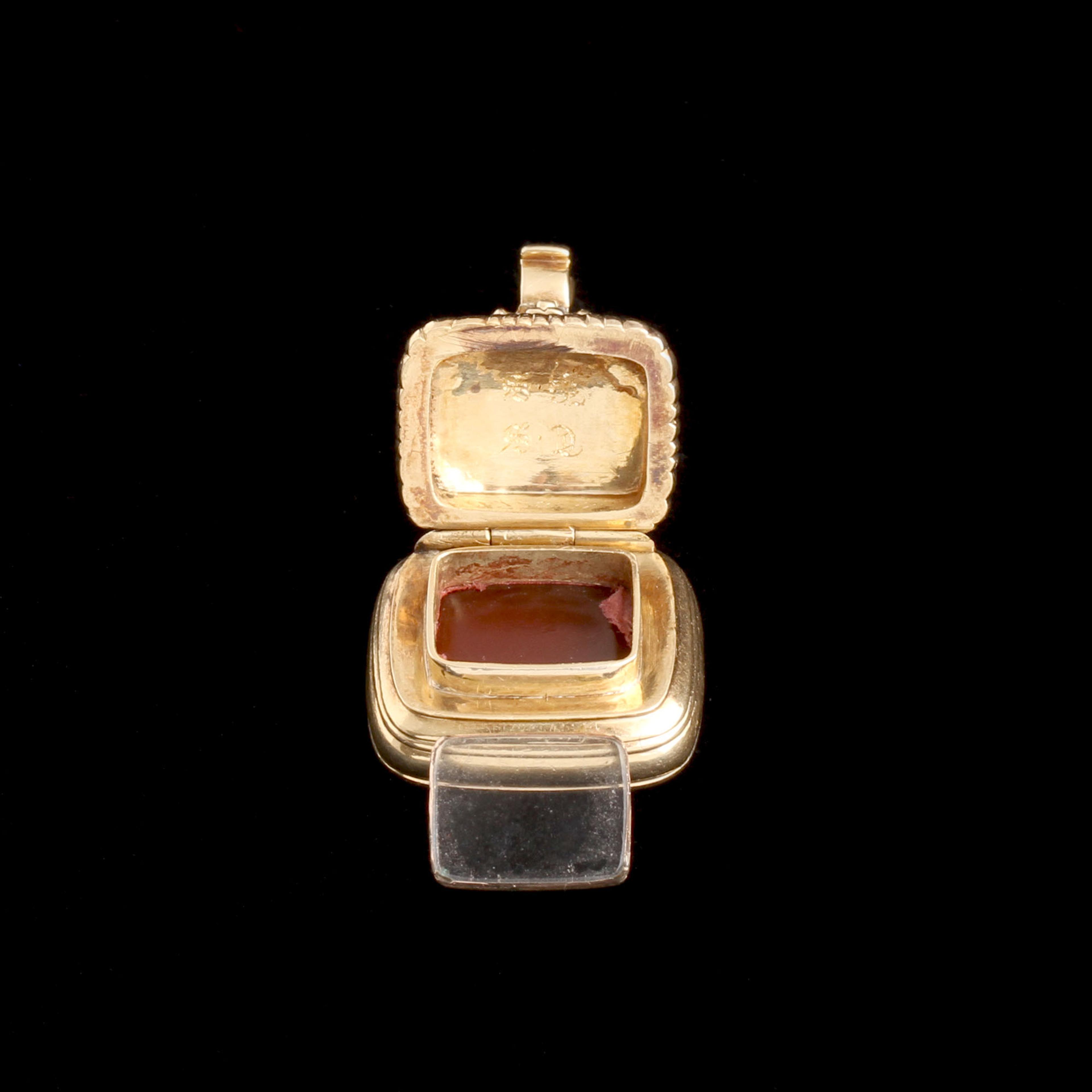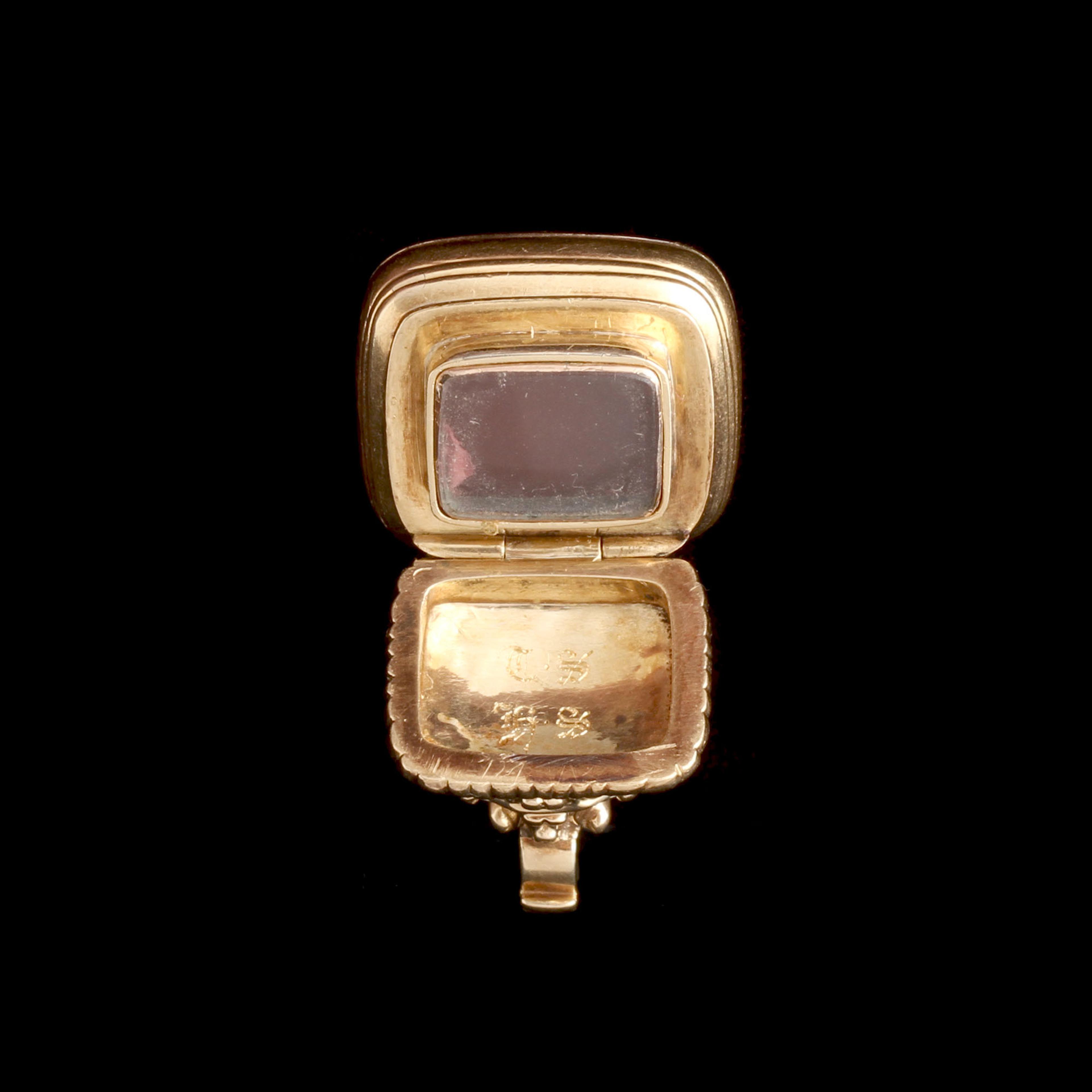MESSAGES LIKE "May truth guide us" were once used to seal letters with wax, leaving a personal imprint of identity or belief. But this fob is different, and hides a secret. There's a barely visible hinge that allows a treasure, image, or lock of hair to be concealed under glass. What WAS the truth? WHO was concealed/concealing in 1820? The locket is empty now, and the secret is long lost.