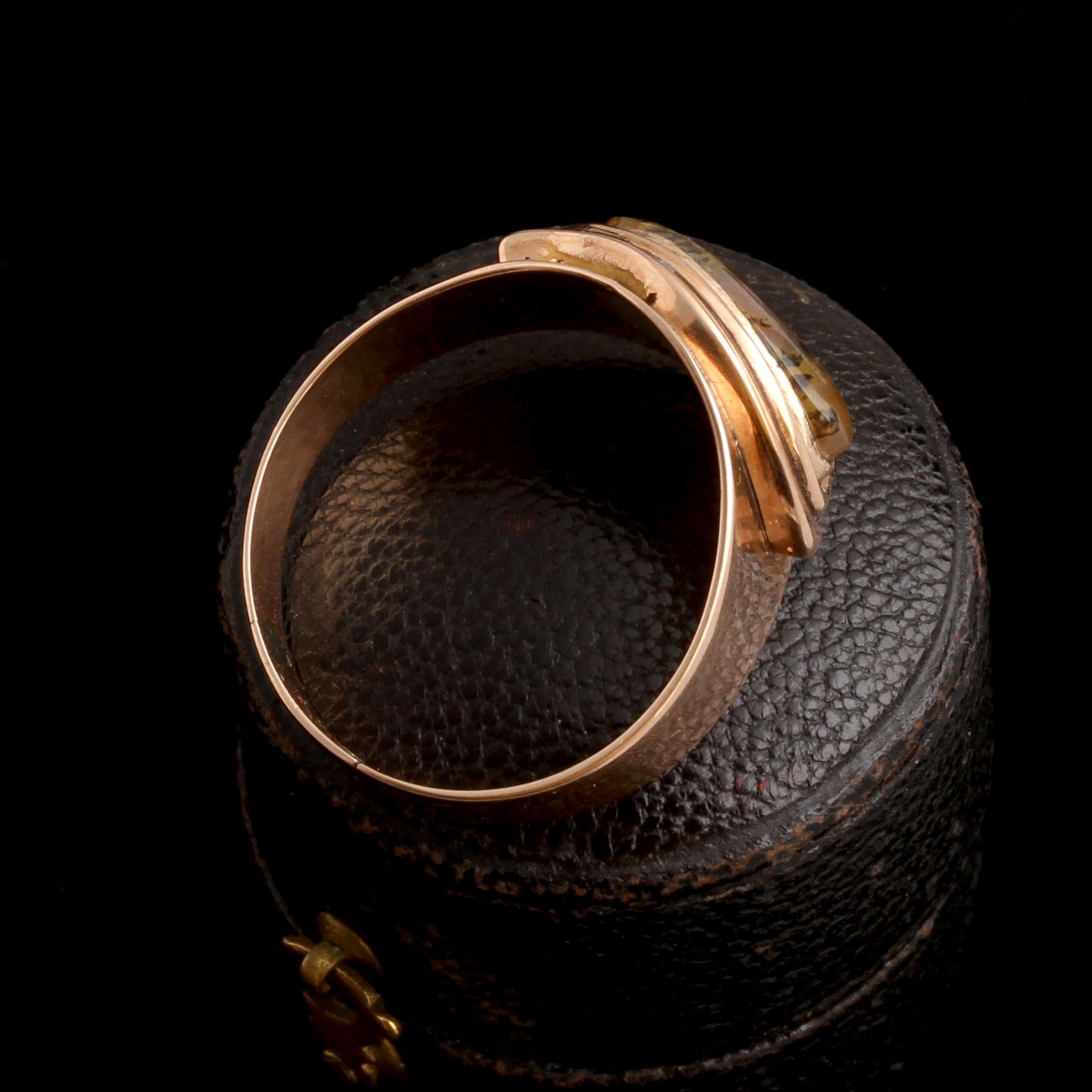 The boat-shaped marquise diamond cut was developed around this time, supposedly to imitate the smile of Louis XV’s mistress, the marquise de Pompadour. Paste — an imitation gemstone made from leaded glass — was newly developed in the 18th century, and set into jewelry with the same creativity and care as its more precious counterparts. Real and imitation gems were almost always set in closed-backed settings, lined on the underside with thin sheets of foil to enhance the color of the stone and highlight it's sparkle. This makes Georgian rings tough for modern women to wear, especially on an everyday basis: genteel, jewelry-owning ladies of the 18th century were not famous for working with their hands like we are. Nor did they wash their hands as much as we do. Water will virtually ruin a foiled setting, so take special care with your Georgian ring. Very little jewelry from this period is still in circulation, and it's very difficult to repair.