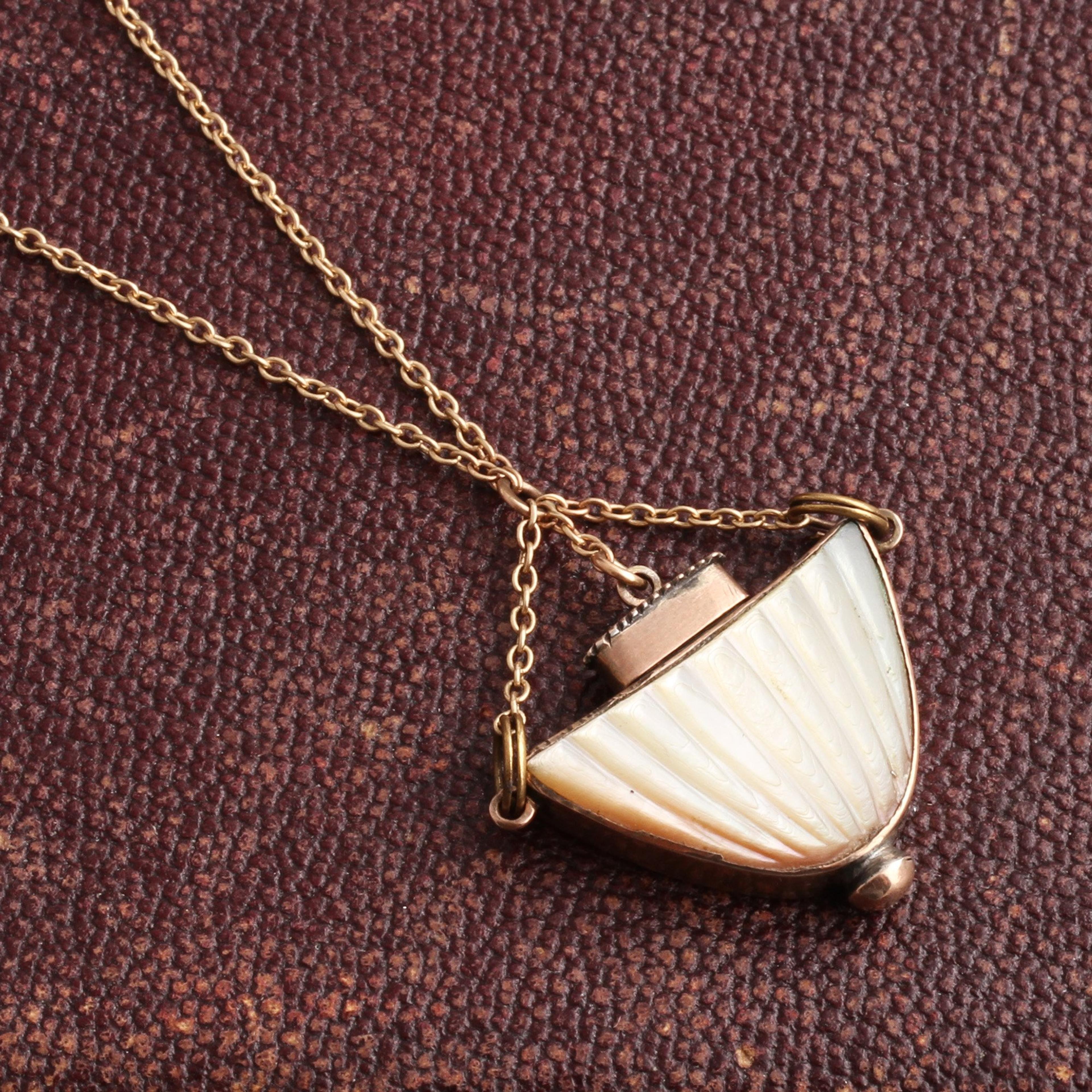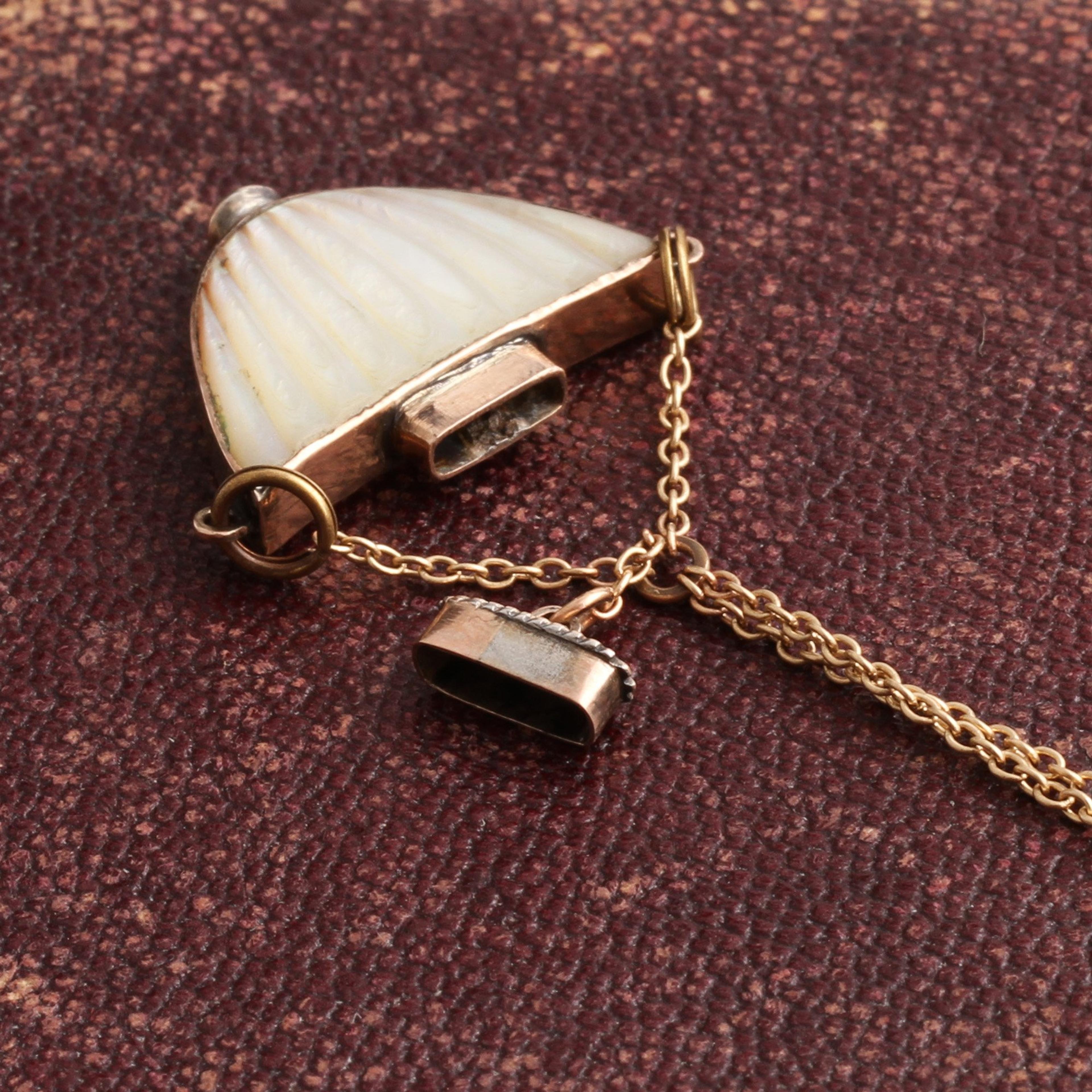This Georgian gold perfume holder was designed to hang from a woman's chatelaine. The tiny vessel was intended to do the same work as the vinaigrette (a small perforated locket which held a sponge scented with perfume used to mask the unpleasant smells encountered in day-to-day 19th century life). When your olfactory senses have been assaulted you can use this piece Georgian-style, just remove the cap and add a few drops to a handkerchief and hold the perfumed fabric to your offended nose.