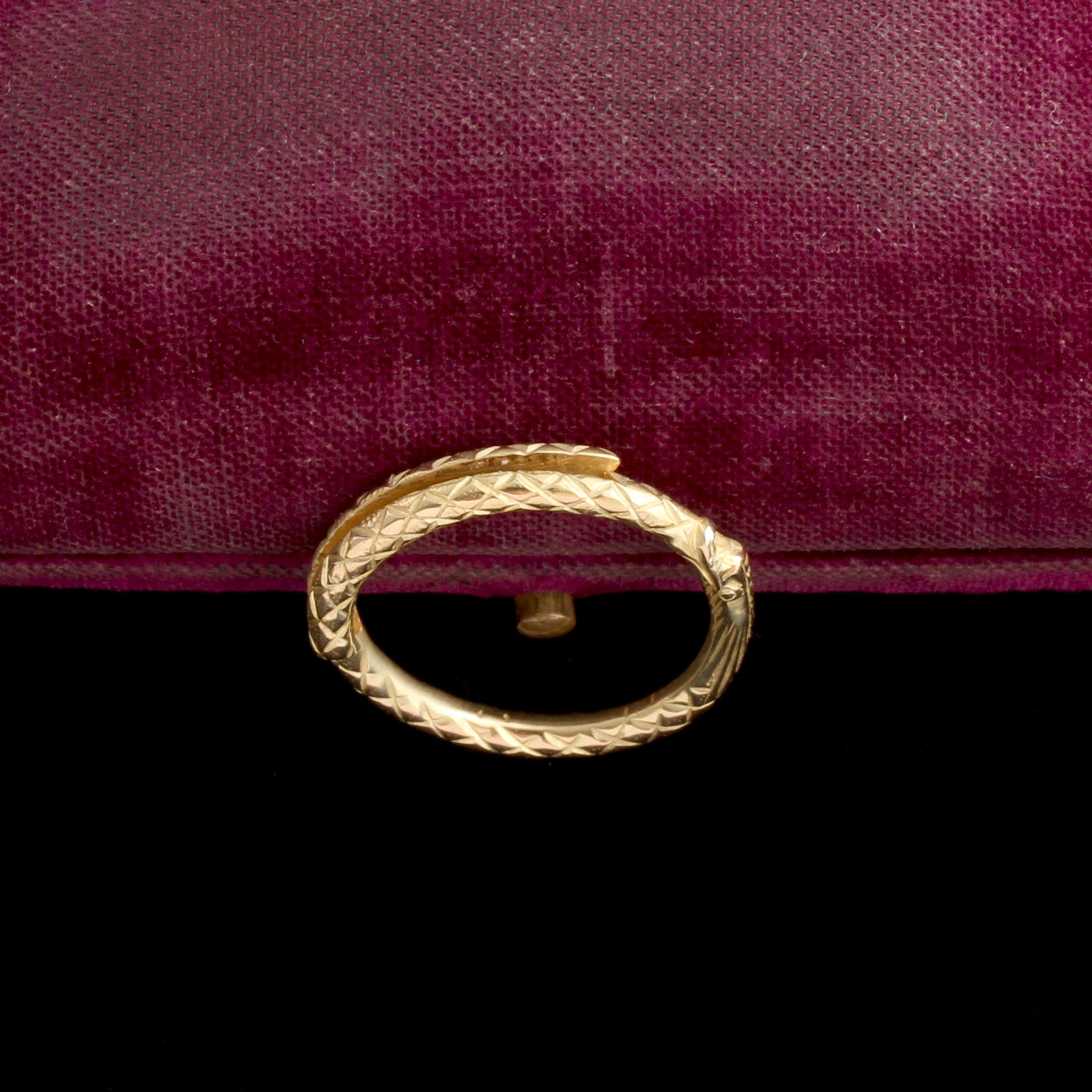 The boat-shaped marquise diamond cut was developed around this time, supposedly to imitate the smile of Louis XV’s mistress, the marquise de Pompadour. Paste — an imitation gemstone made from leaded glass — was newly developed in the 18th century, and set into jewelry with the same creativity and care as its more precious counterparts. Real and imitation gems were almost always set in closed-backed settings, lined on the underside with thin sheets of foil to enhance the color of the stone and highlight it's sparkle. This makes Georgian rings tough for modern women to wear, especially on an everyday basis: genteel, jewelry-owning ladies of the 18th century were not famous for working with their hands like we are. Nor did they wash their hands as much as we do. Water will virtually ruin a foiled setting, so take special care with your Georgian ring. Very little jewelry from this period is still in circulation, and it's very difficult to repair.
