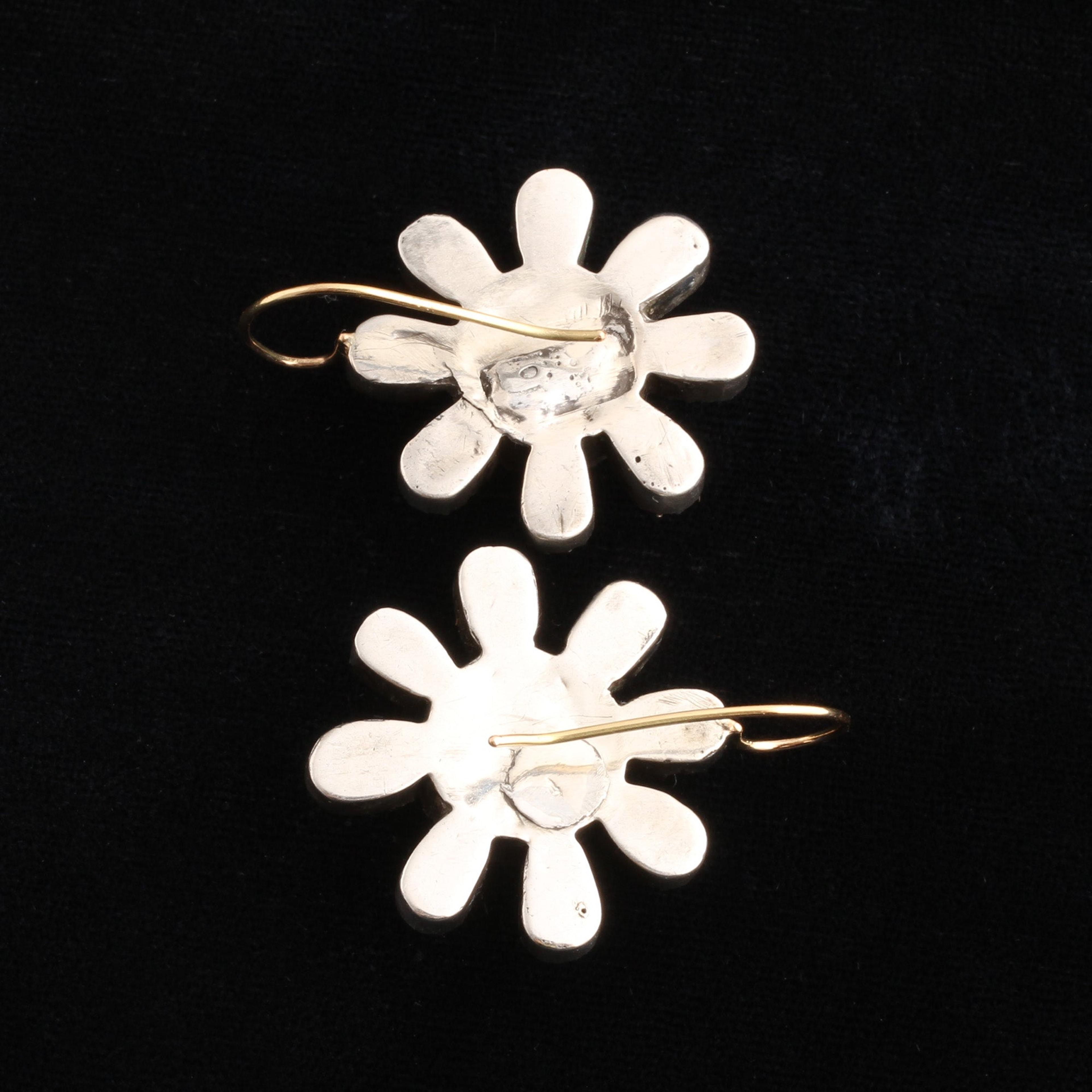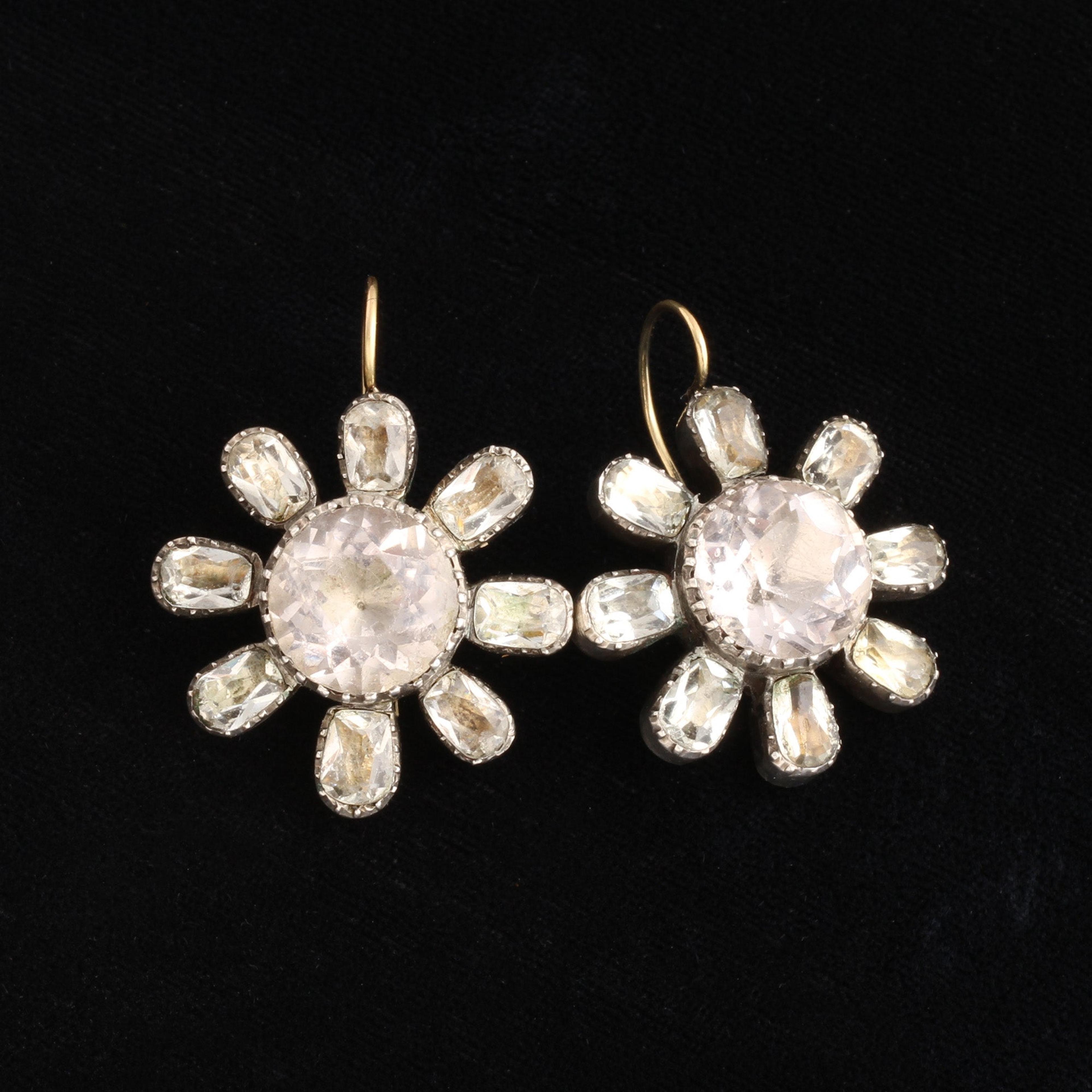 A wonderful pair of large Georgian floral cluster earrings with lovely, chunky old cut "stones" set in silver and suspended from new gold ear wires.