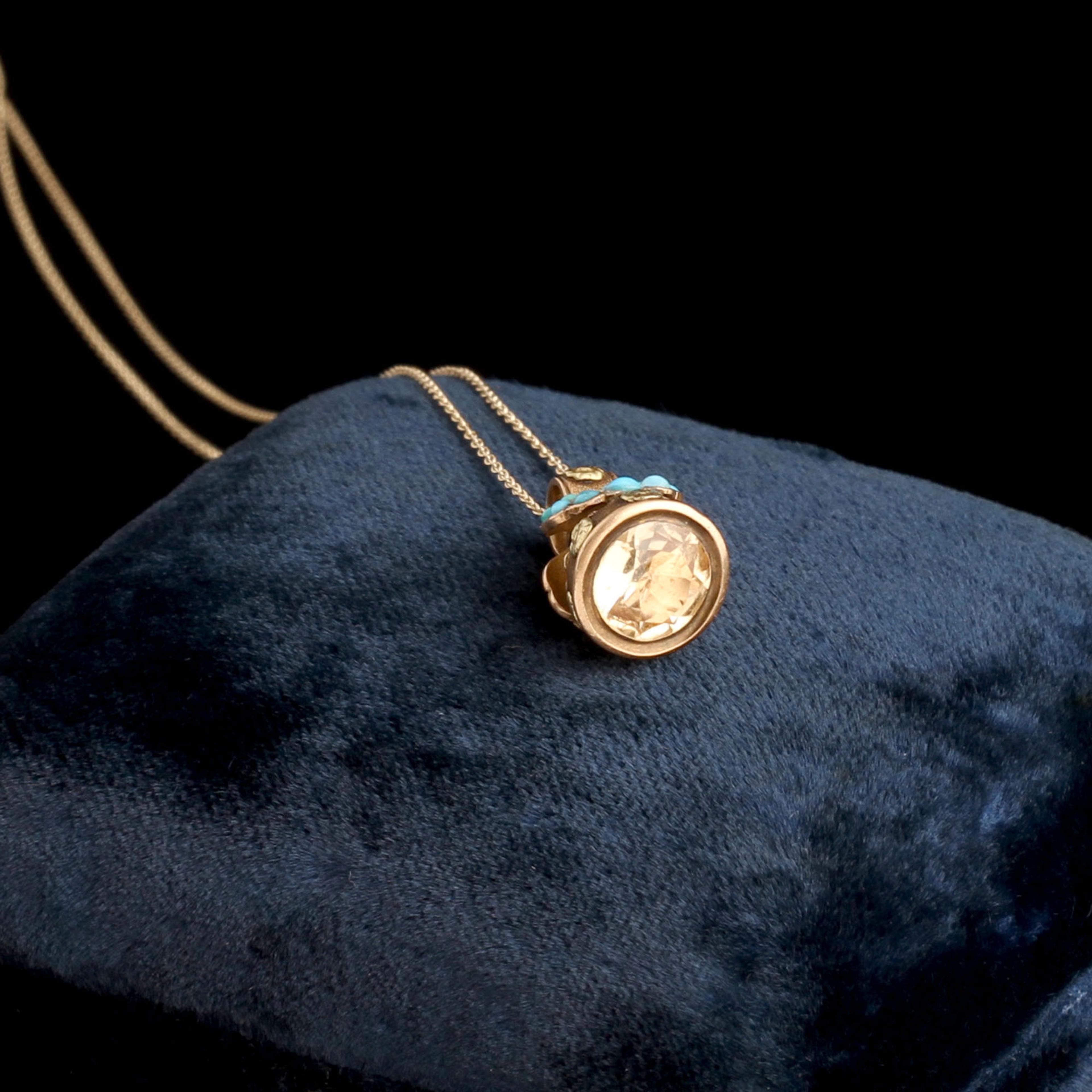 14k tricolor gold (tests), turquoise cabochons, citrine, new 14k gold chain