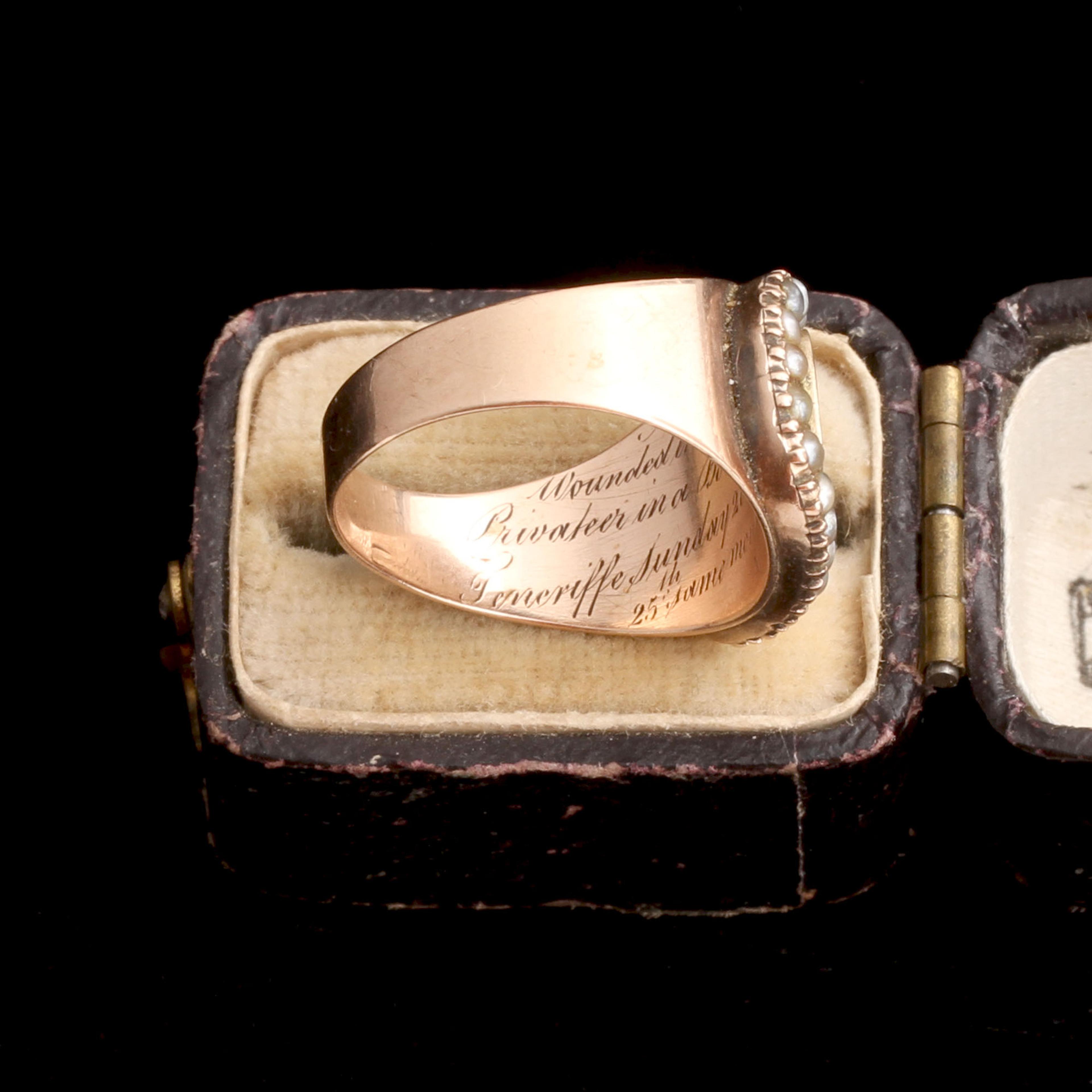 By 1805, the "Golden Age of Piracy" was over, but Tenerife and the wider Canary Islands continued to face raids from Barbary corsairs and were affected by the Napoleonic Wars. Naval powers and often seized each other's vessels and assets, a practice known as "privateering" or prize-taking. It was state-sanctioned, but it was pretty damn close to piracy. It's how William Noble died. He was probably a young midshipman or sailor who participated in small-boat skirmish against a Spanish or French ship. Dying in combat was both honorable and tragic, so very specific causes of death were recorded on rings to memorialize the drama. It's far more romantic than disease or an accident, which was the way most people died at sea.