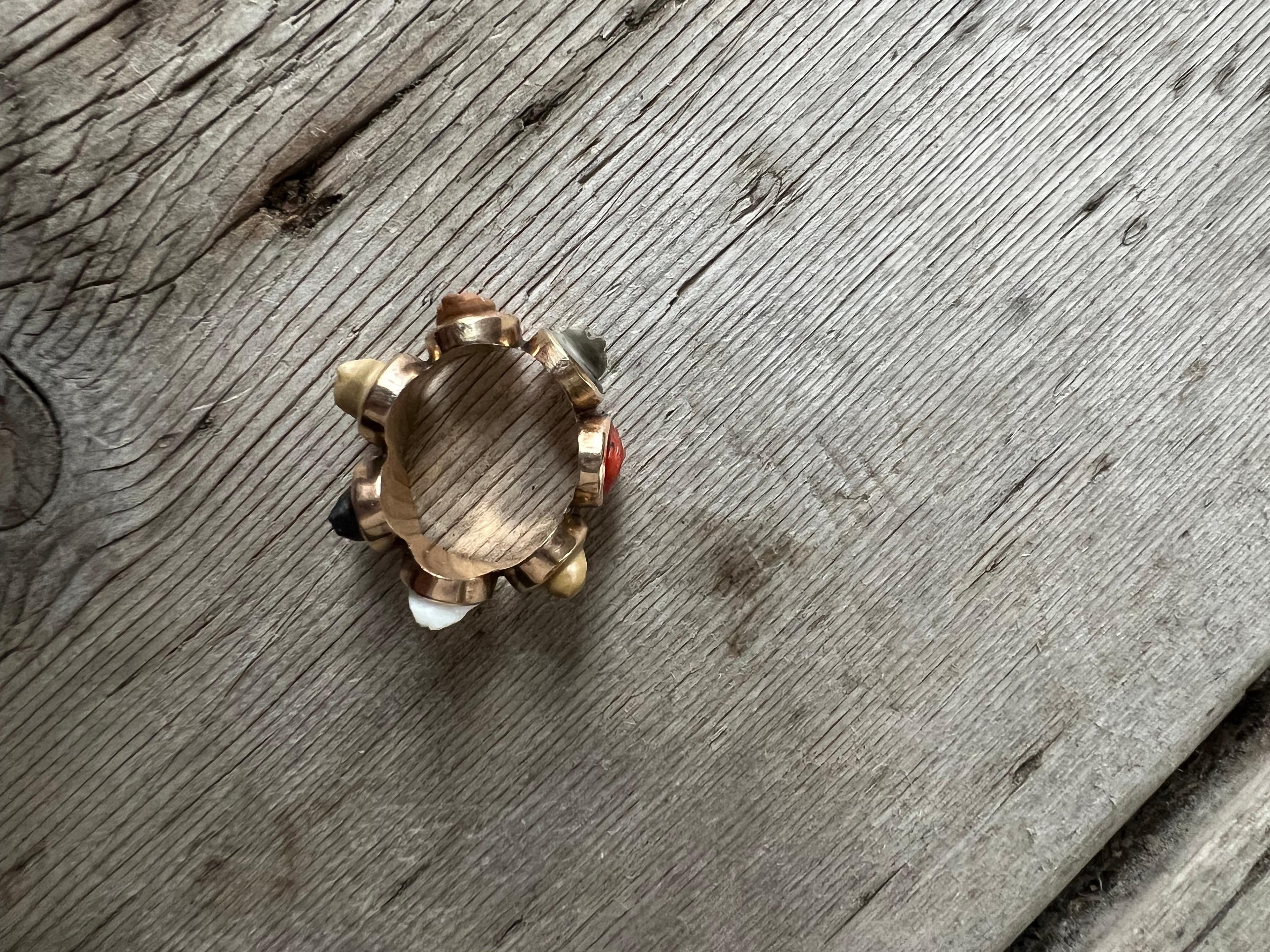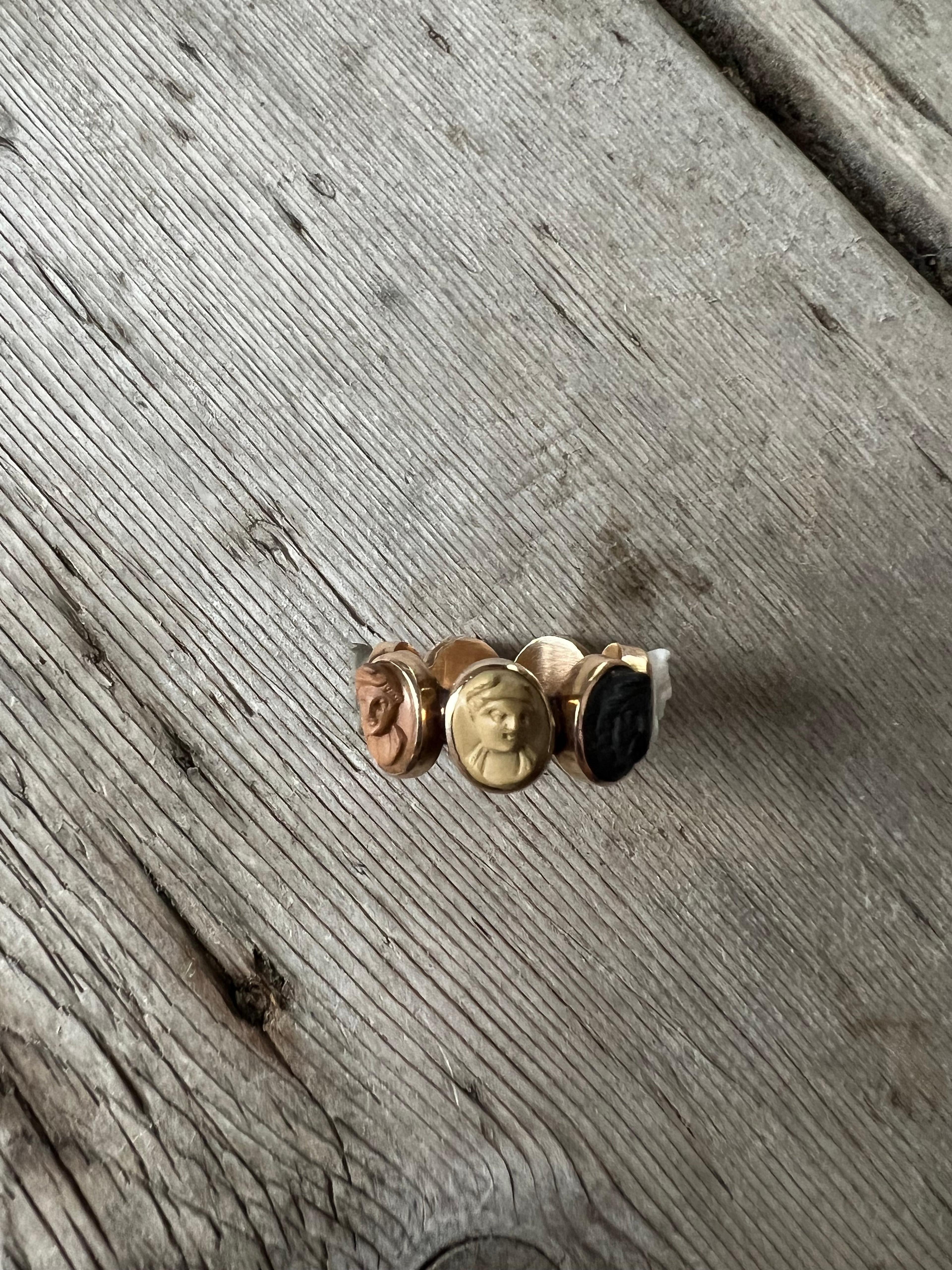 During the same period the cameo (made from a variety of materials including shell, coral, onyx and lava) was experiencing great popularity and many of the most expert makers came from Italy. Lava from Mt. Vesuvius provided Italian cameo carvers a plentiful medium to create these miniature reliefs - this particular ring is a souvenir of somebody's Grand Tour. Measures as a size 5.5.