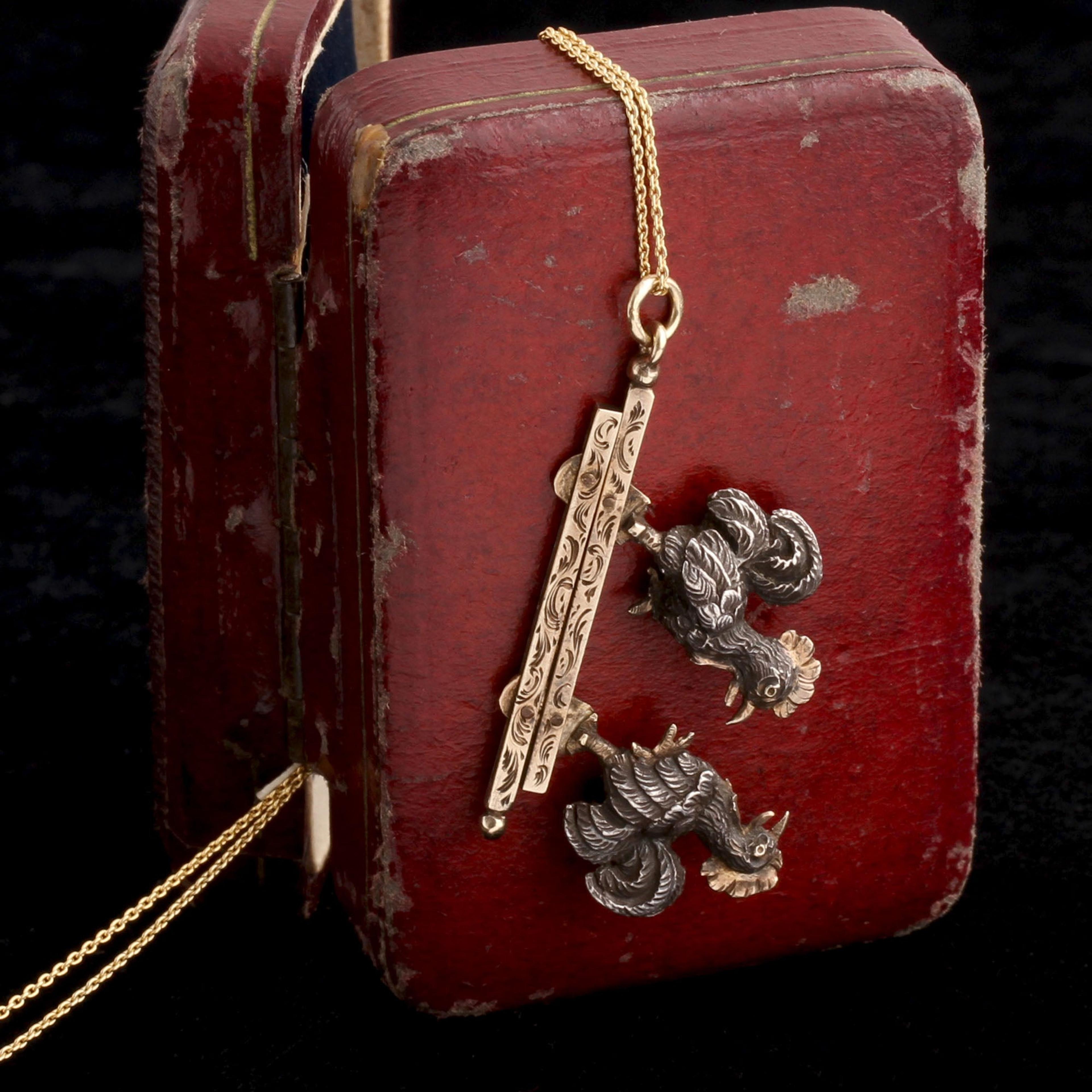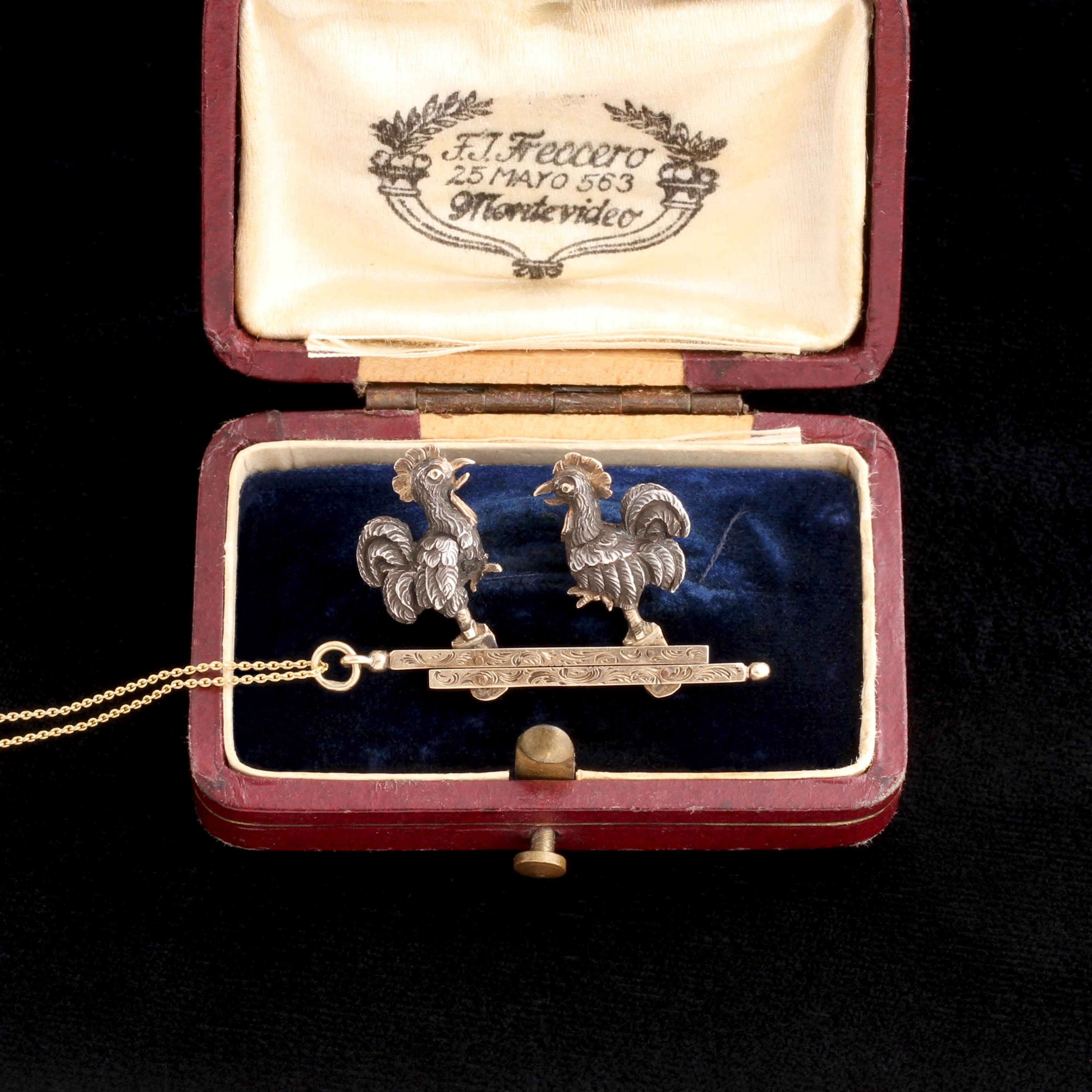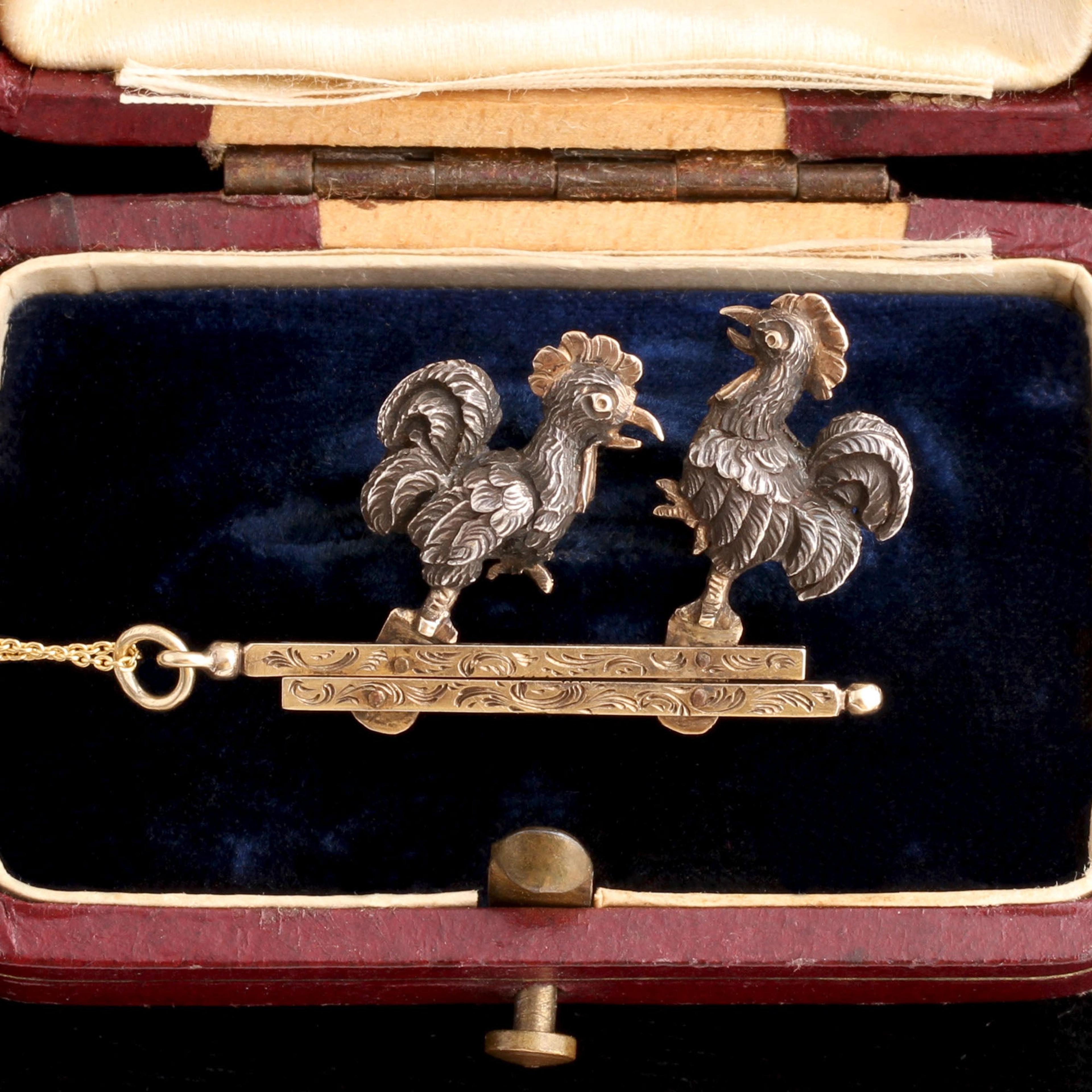 This piece of mechanical insanity let you pit two fighting cocks against each other forever. It’s a miniature spectacle in gold and silver, with fine engineering and special engraving. Toggle the bars back and forth to watch ’em move.