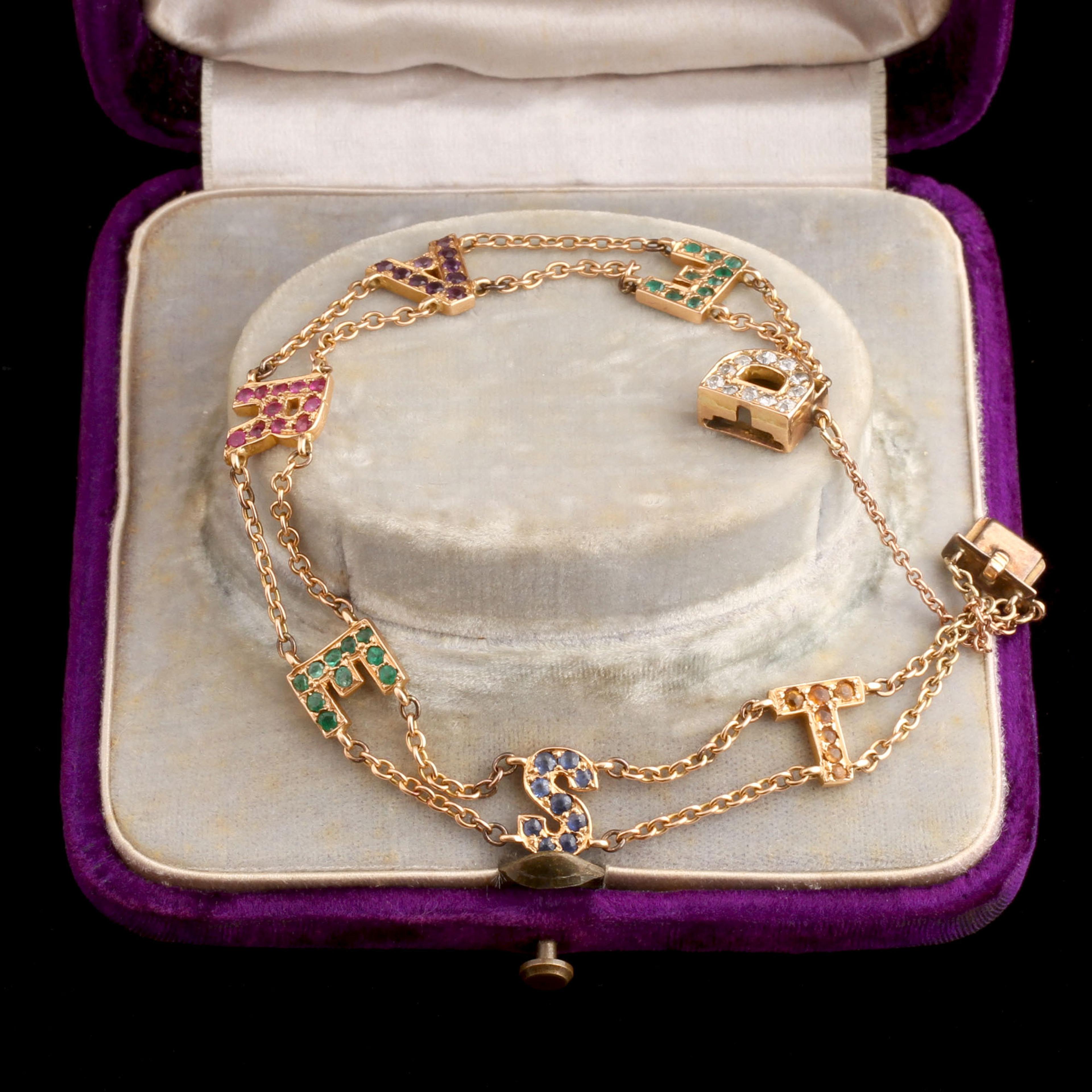 D: Diamonds, E: Emeralds, A: Amethysts, R: Rubies, E: Emeralds, S: Sapphires, T: Topazes. An elaborate way to say "you are my love" in the secret language of gemstones.