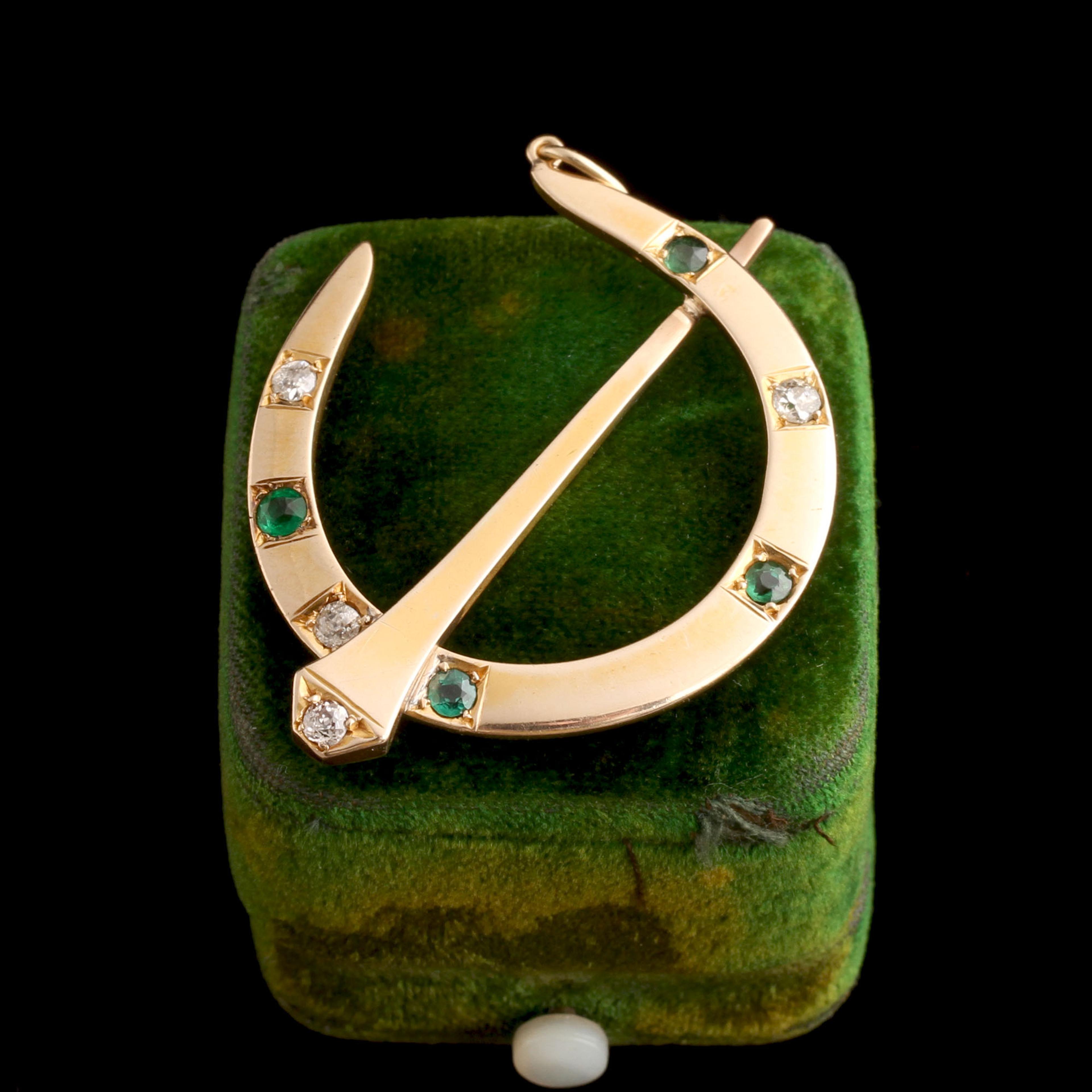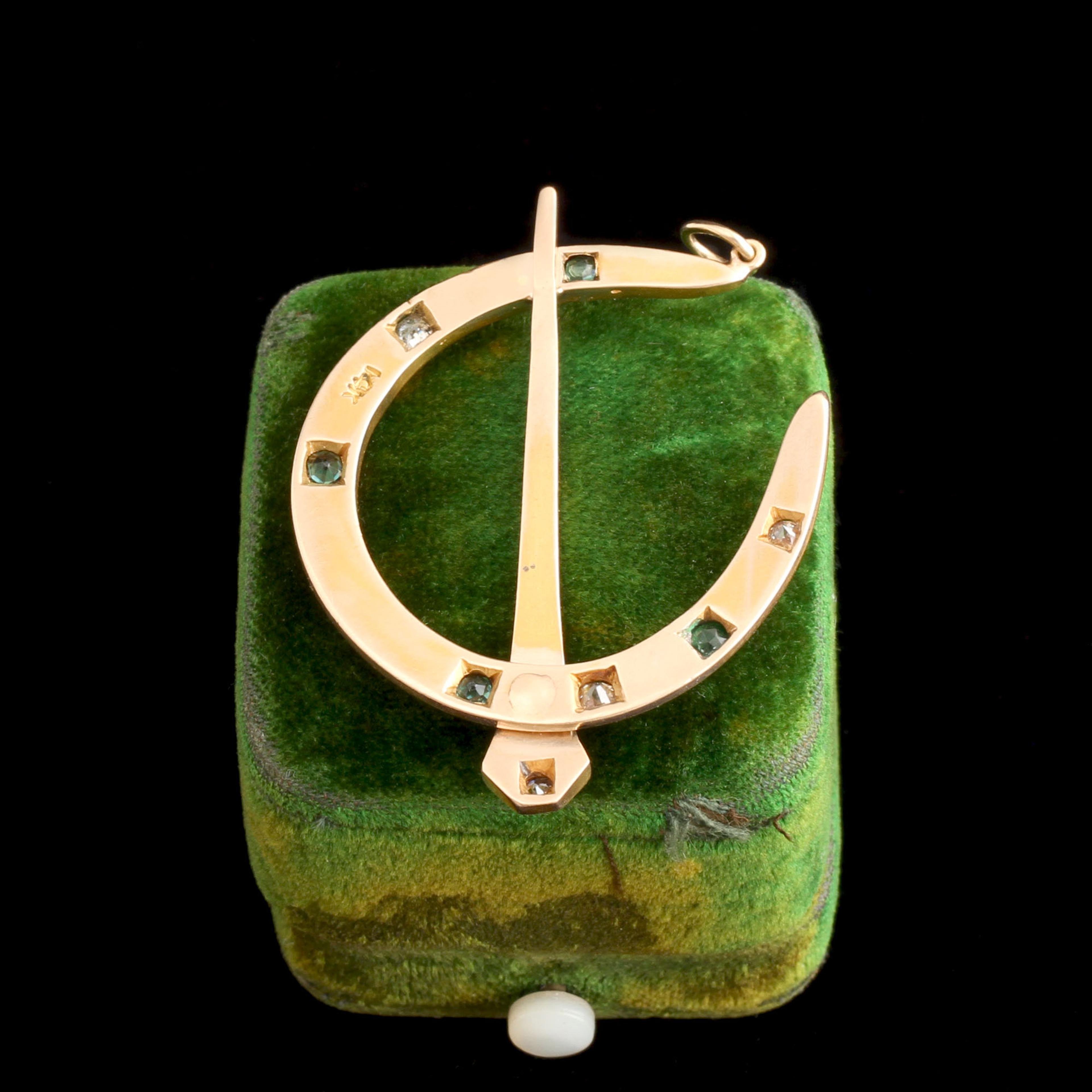 Good luck horseshoes often have seven nails because seven was long treated as a protective number. In European folk belief, seven marked cycles that felt divinely balanced: days of the week, visible planets, stages of life. You know what could amplify the luck of seven nails? If they were emeralds and old European cut diamonds. They can't be UNLUCKY, right? This giant gold pendant was probably once a brooch, but the impact of a necklace is way bigger, so you're welcome.