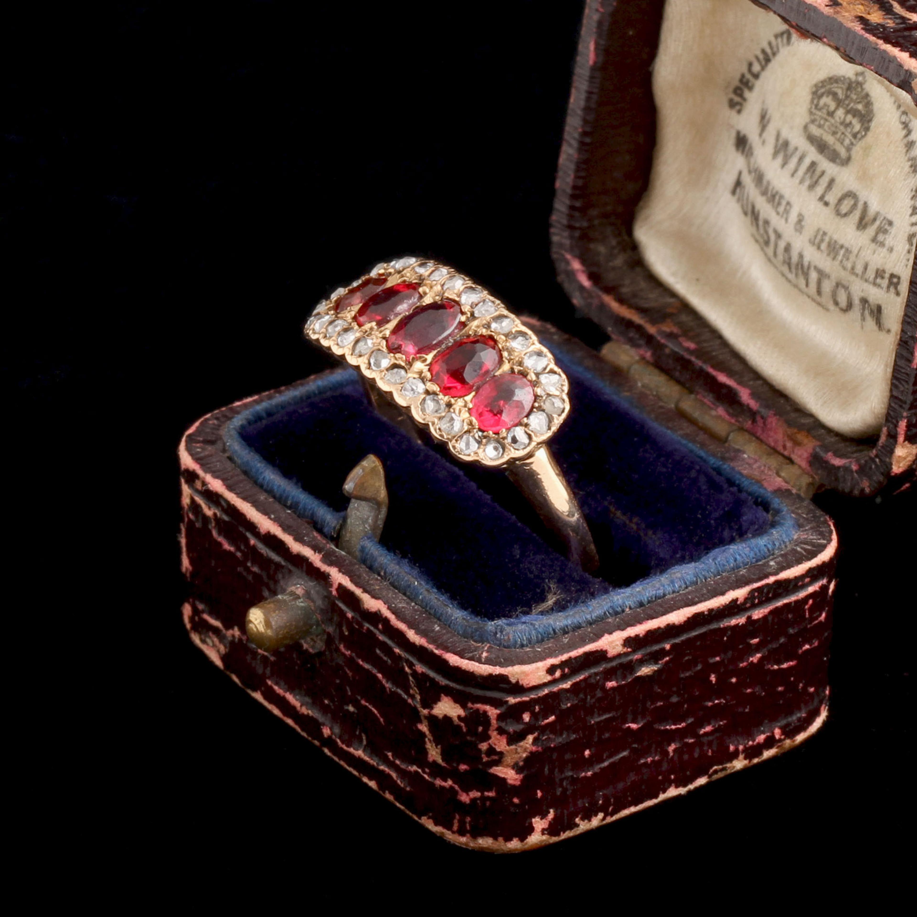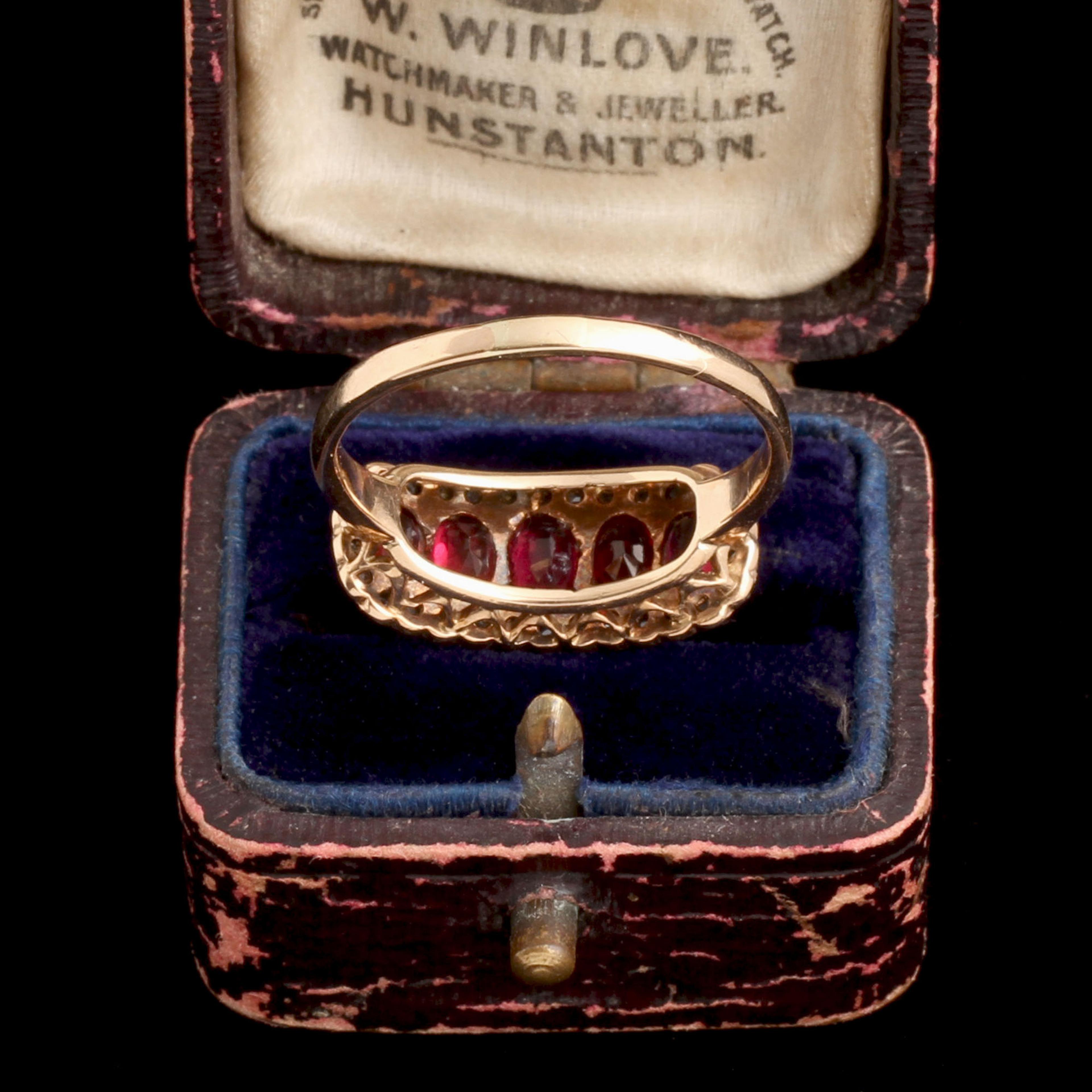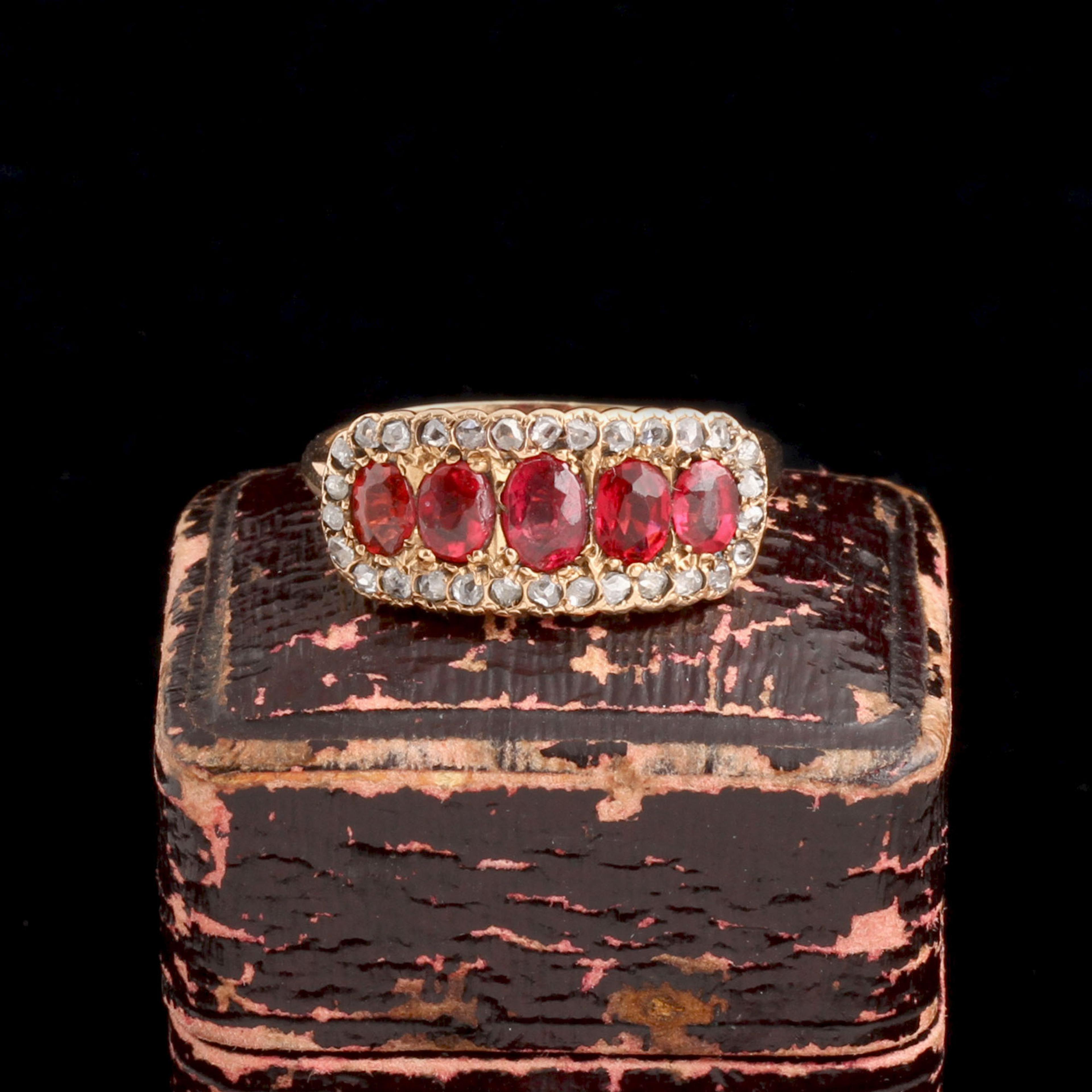 10k gold (tests), 6 oval faceted garnets (3.5mm - 5mm), 30 1.5mm rose cut diamonds