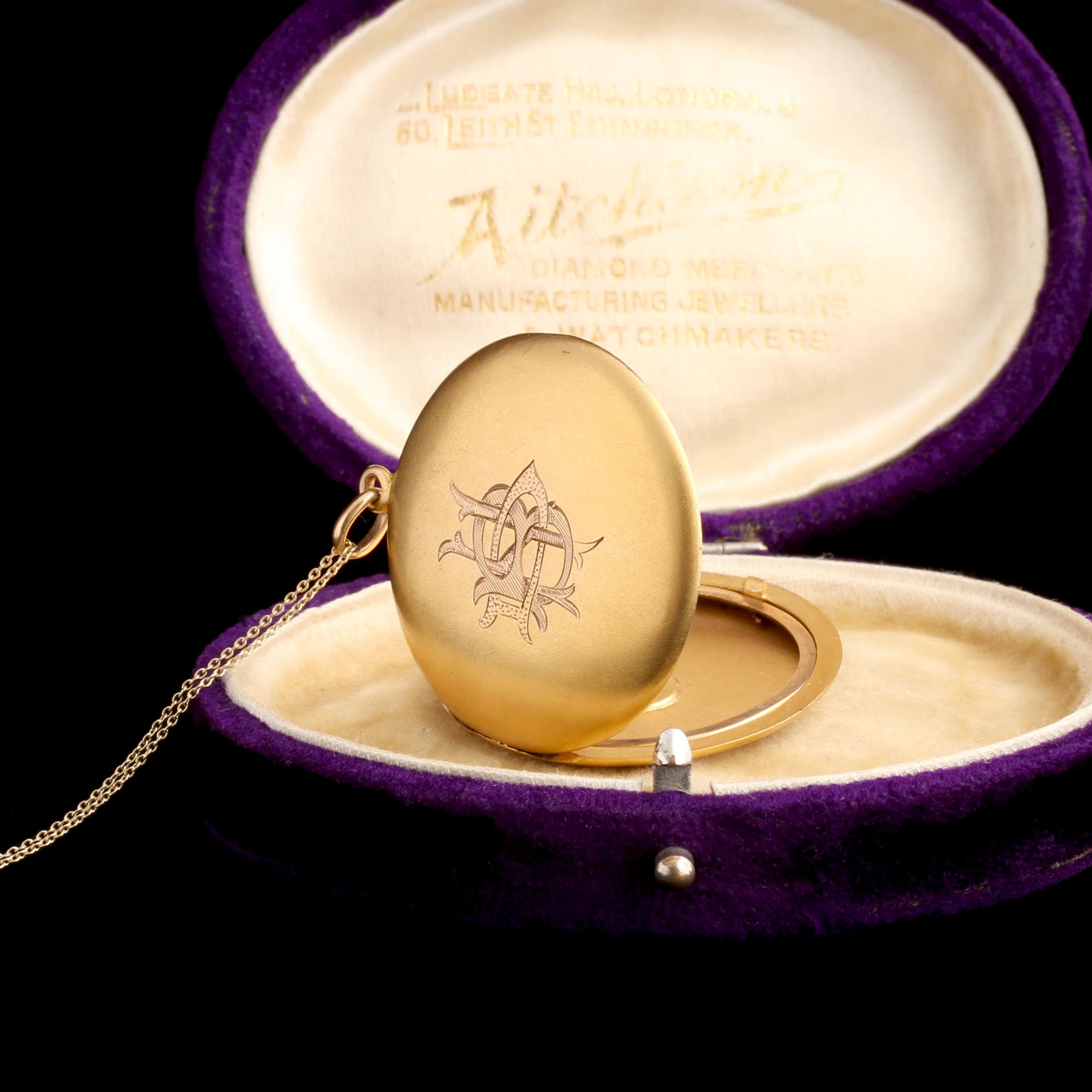 The monogram HBD is engraved on this silky matte gold locket. 125 years ago, it celebrated someone with those initials. Today, all I see is "Happy Birthday". Every letter is decorated with a different pattern (but WHY did the engraver forget to fill in the bottom right tip of the "H"?)