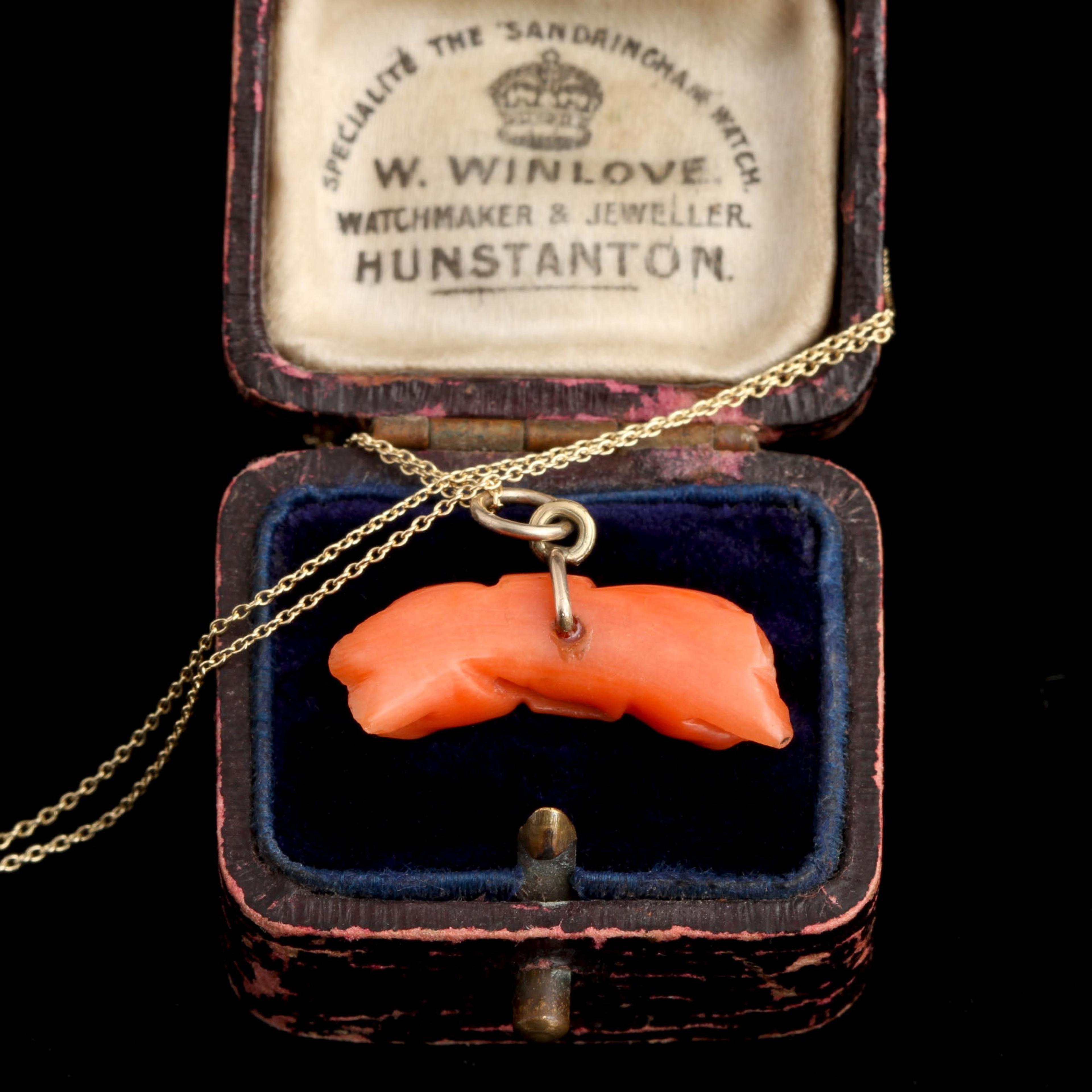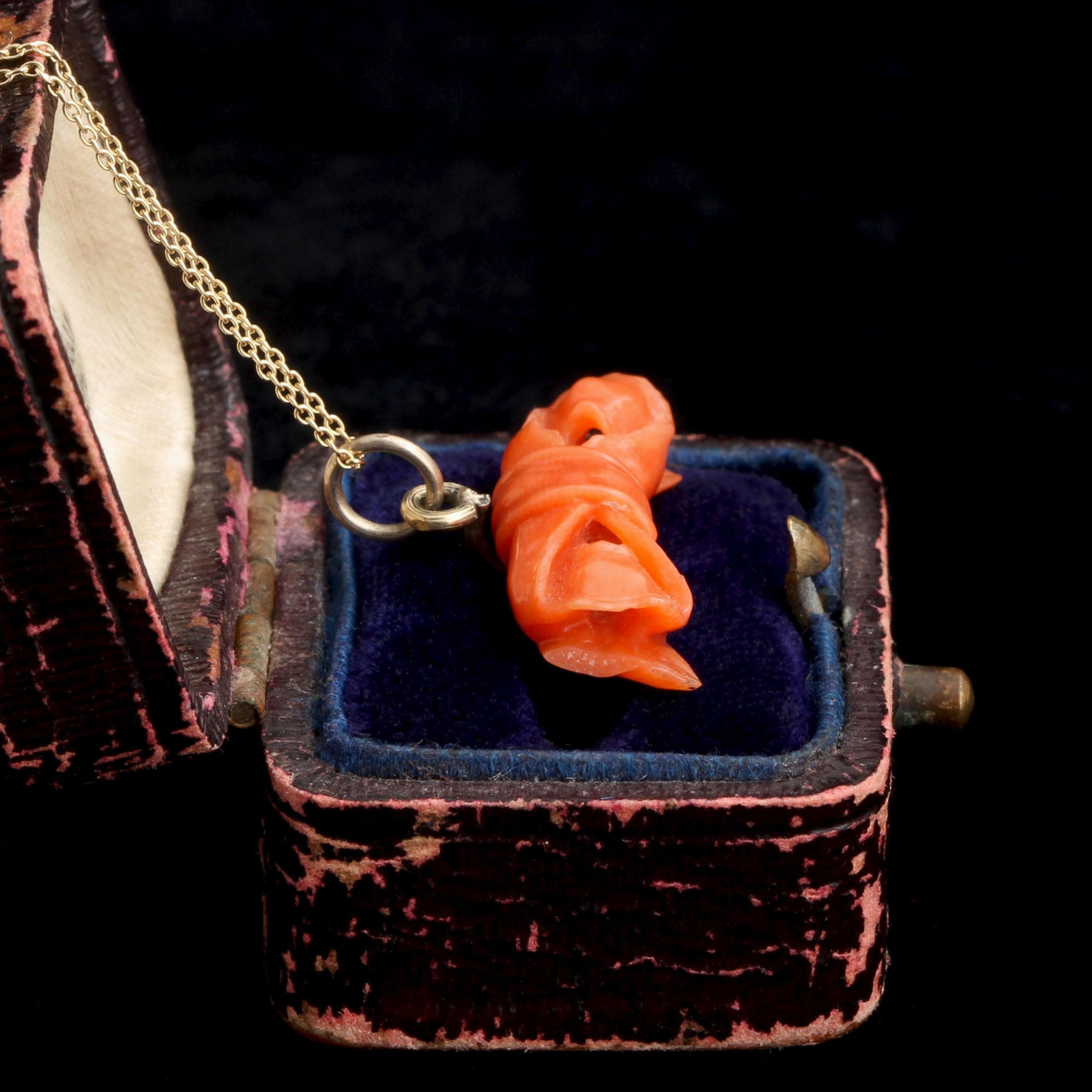 The Grand Tour was an essential undertaking for any English man of means beginning in the 1700s, but it wasn't until the early 1800s with the invention of steam-powered transportation that it became a pursuit open to anyone, including women. The tour typically began in Dover, England and though there was no specified order of countries to visit, most travelers went to France, Germany, and Switzerland before the culmination of the trip in Italy. Throughout the tour one was supposed to acquire knowledge of language, politics, sport and art and become a generally more well-rounded person of privilege. And on the way, they shopped for souvenirs, often in jewelry form. Coral has been popular in jewelry in the Italian region since the Roman era (the ancient Romans believed wearing it could cure sterility!). Italian jewelry-carvers used this medium to create cameos and miniatures like this unusually lovely bow pendant. These clues tell us that most likely, this piece was a souvenir purchased on someone's Italian leg of the Grand Tour in the mid-1800s.