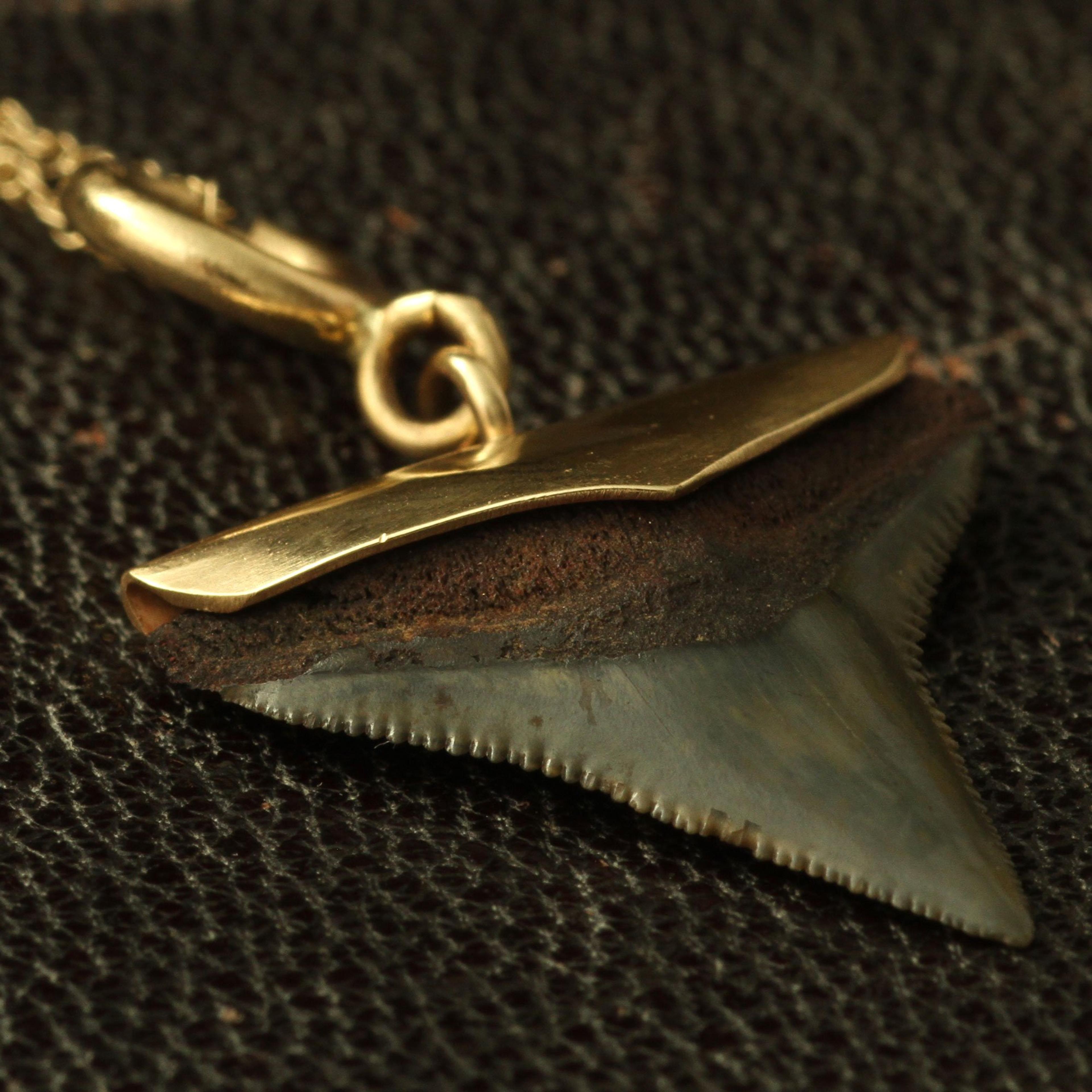 Fossilized shark tooth (origin: Florida), 14k gold.