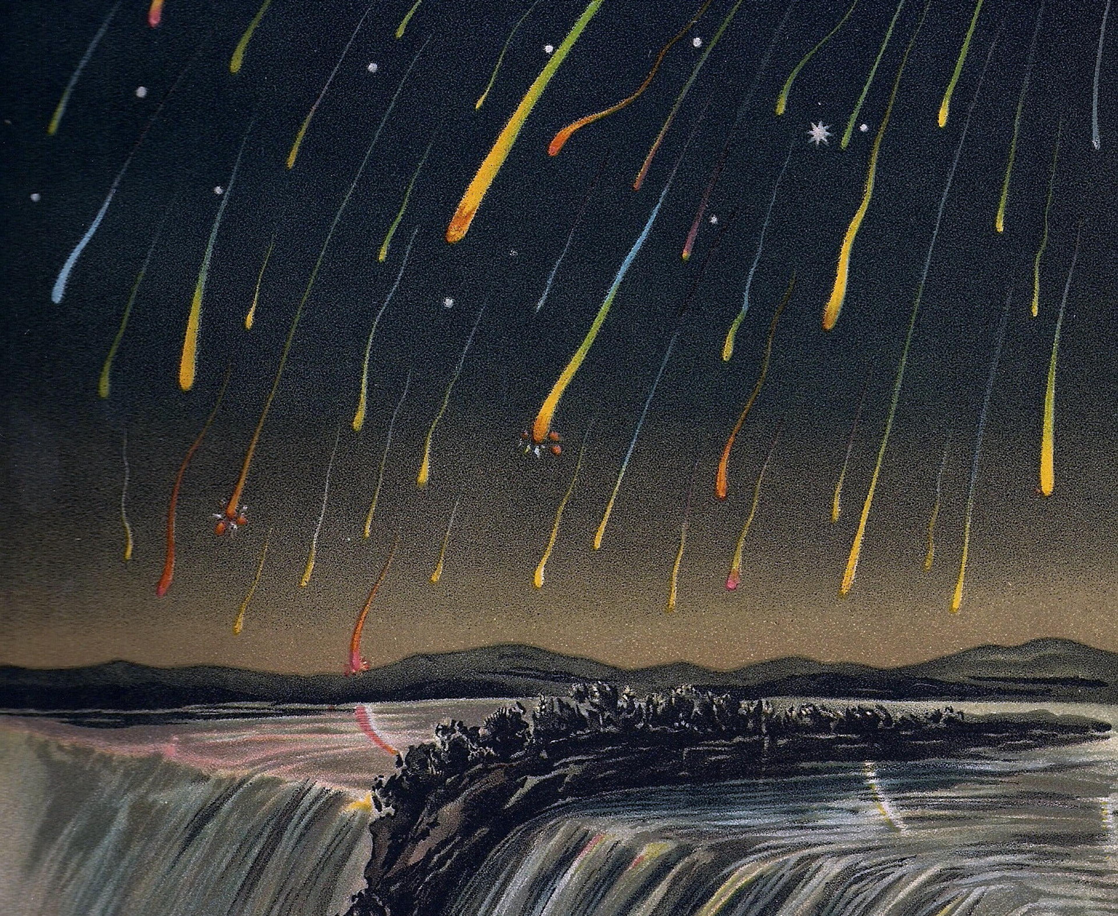 Image: Detail from "Leonid Meteor Storm, as seen over North America on the night of November 12-13, 1833" from E. Weiß’s 'Bilderatlas der Sternenwelt' (1888)