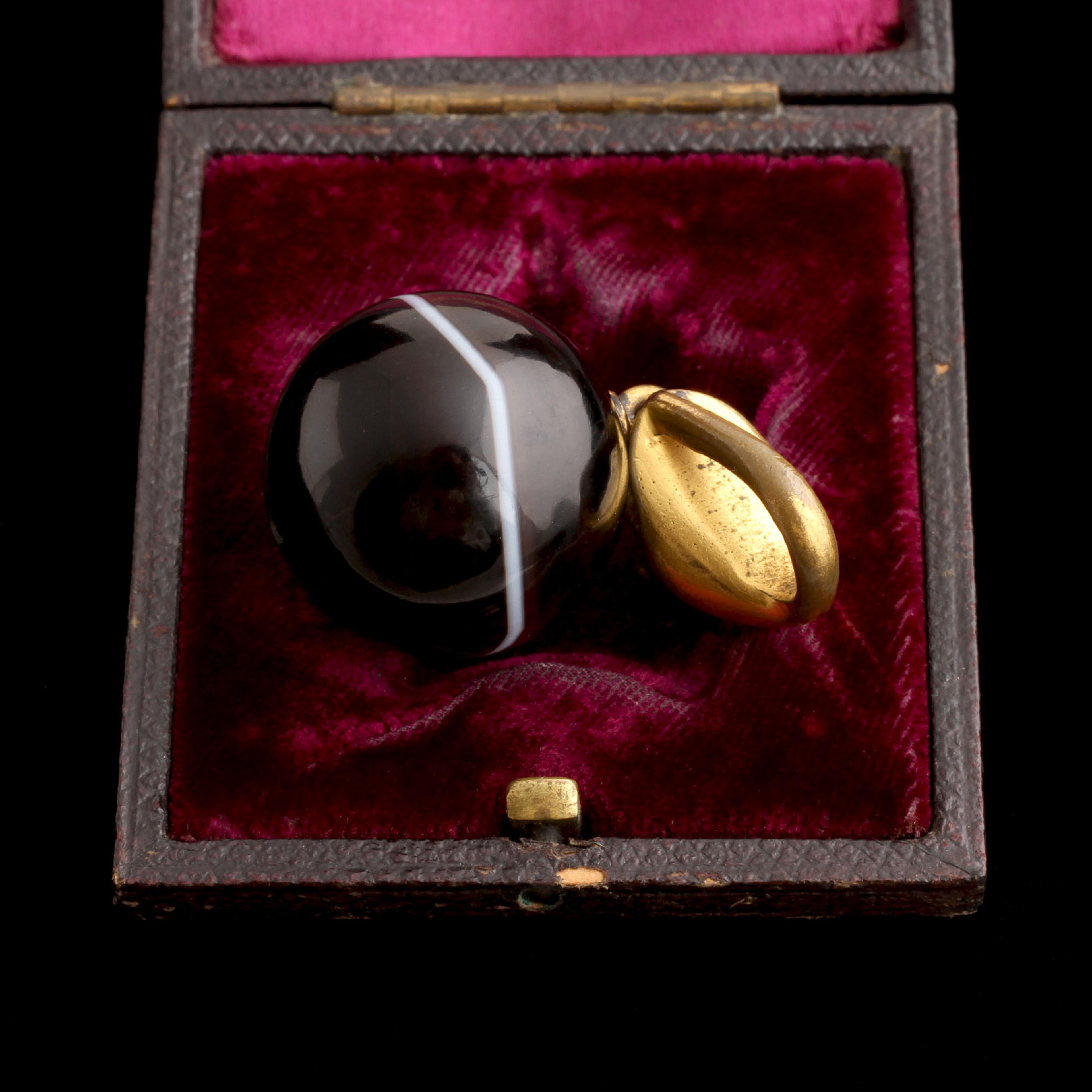 gold fill, 6mm banded agate cabochon, 7/8" diameter banded agate sphere