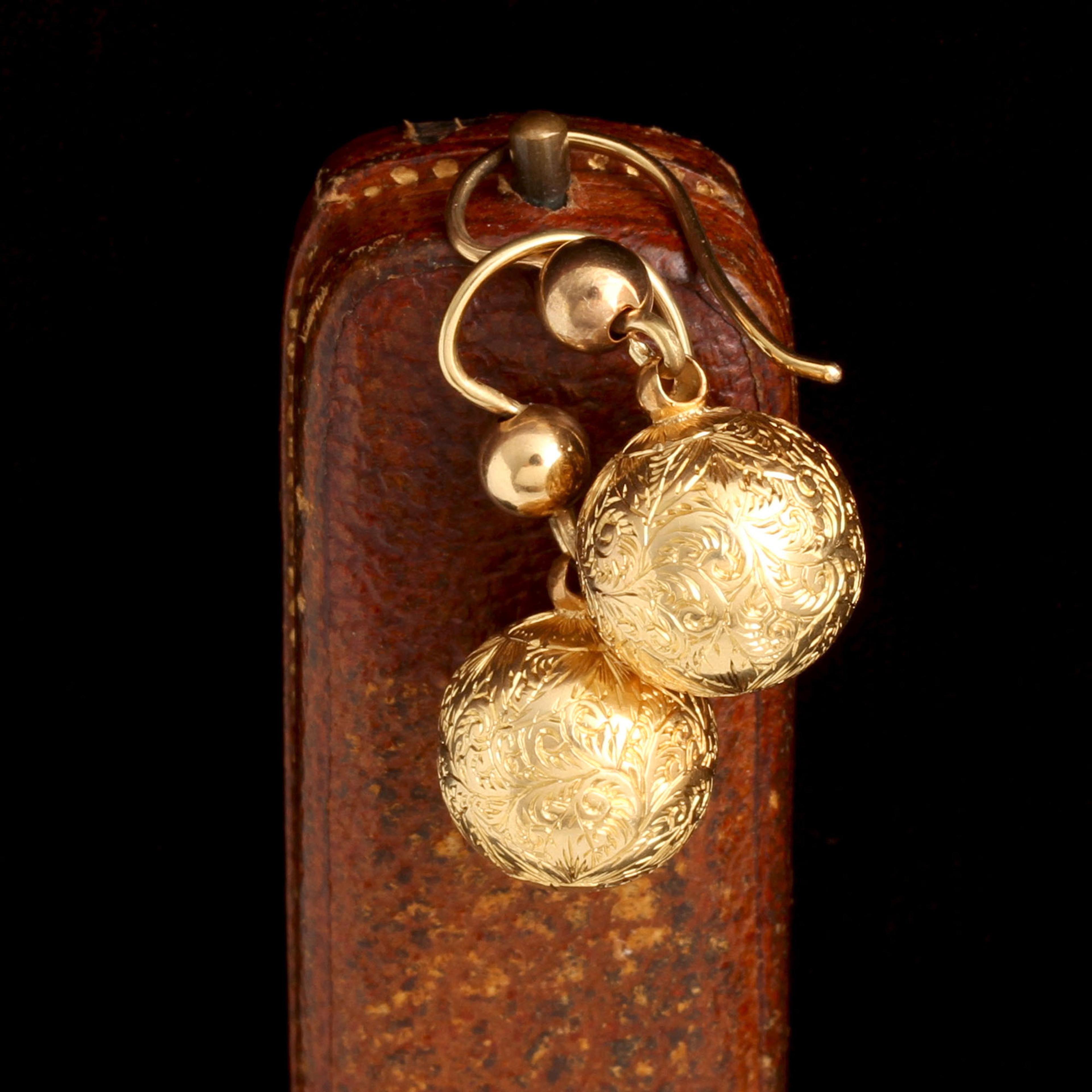 I like to think about the engraver who worked on these orbs in the 1880s, and whether he got bored with swirls and decided to put little flowers at the bottom of each one.