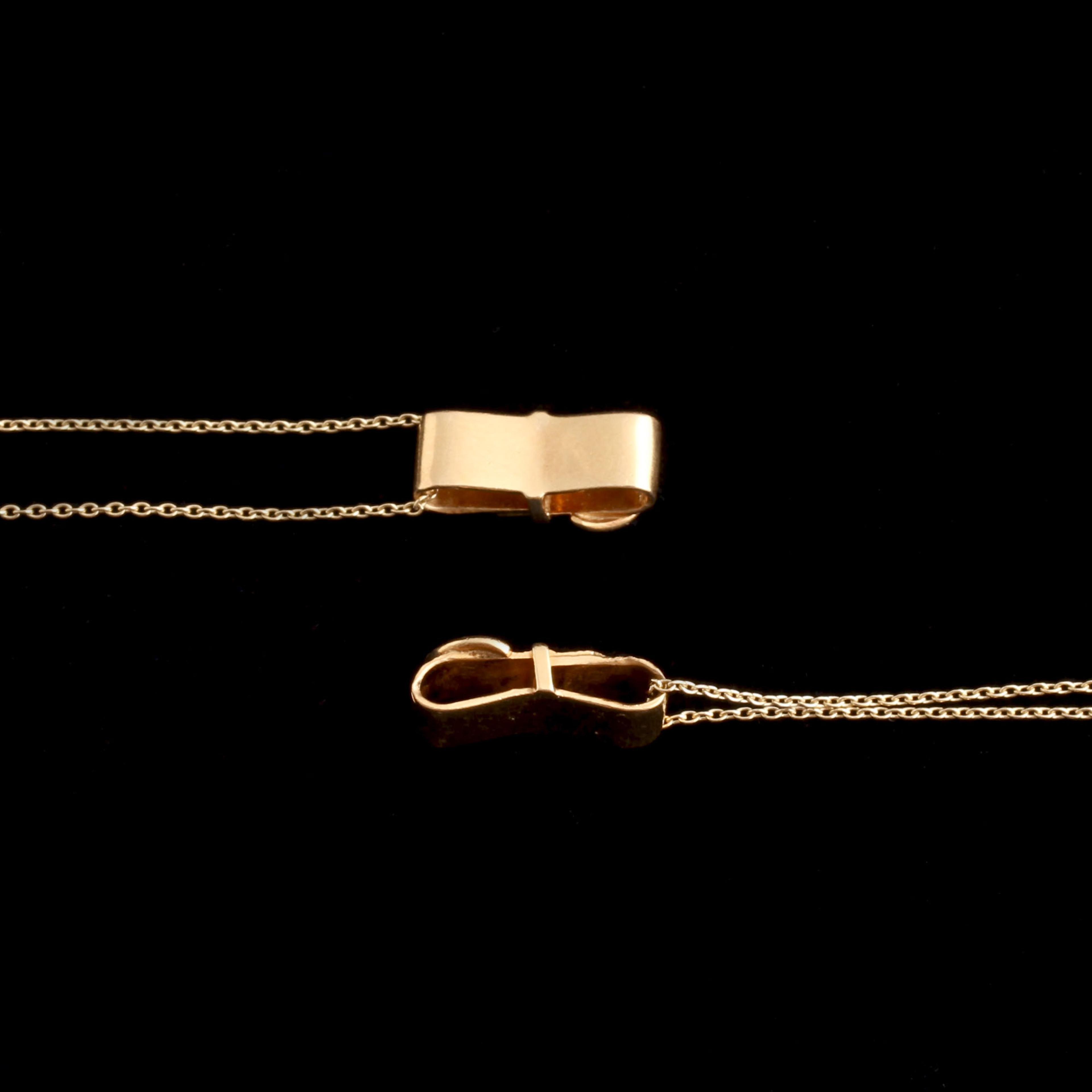Originally rooted in functional dress hardware, the belt buckle motif migrated into Georgian and Victorian jewelry as a symbolic device, suggesting emotional bonds. Rendered in gold, the buckle could signify loyalty - the idea of being “bound” by affection rather than obligation. Two tiny buckle-themed elements long lost from their original larger piece of jewelry were found and strung (by us) on slim gold chains. Wear one alone as a symbol of connection, or add charms to personalize it. Sold separately.