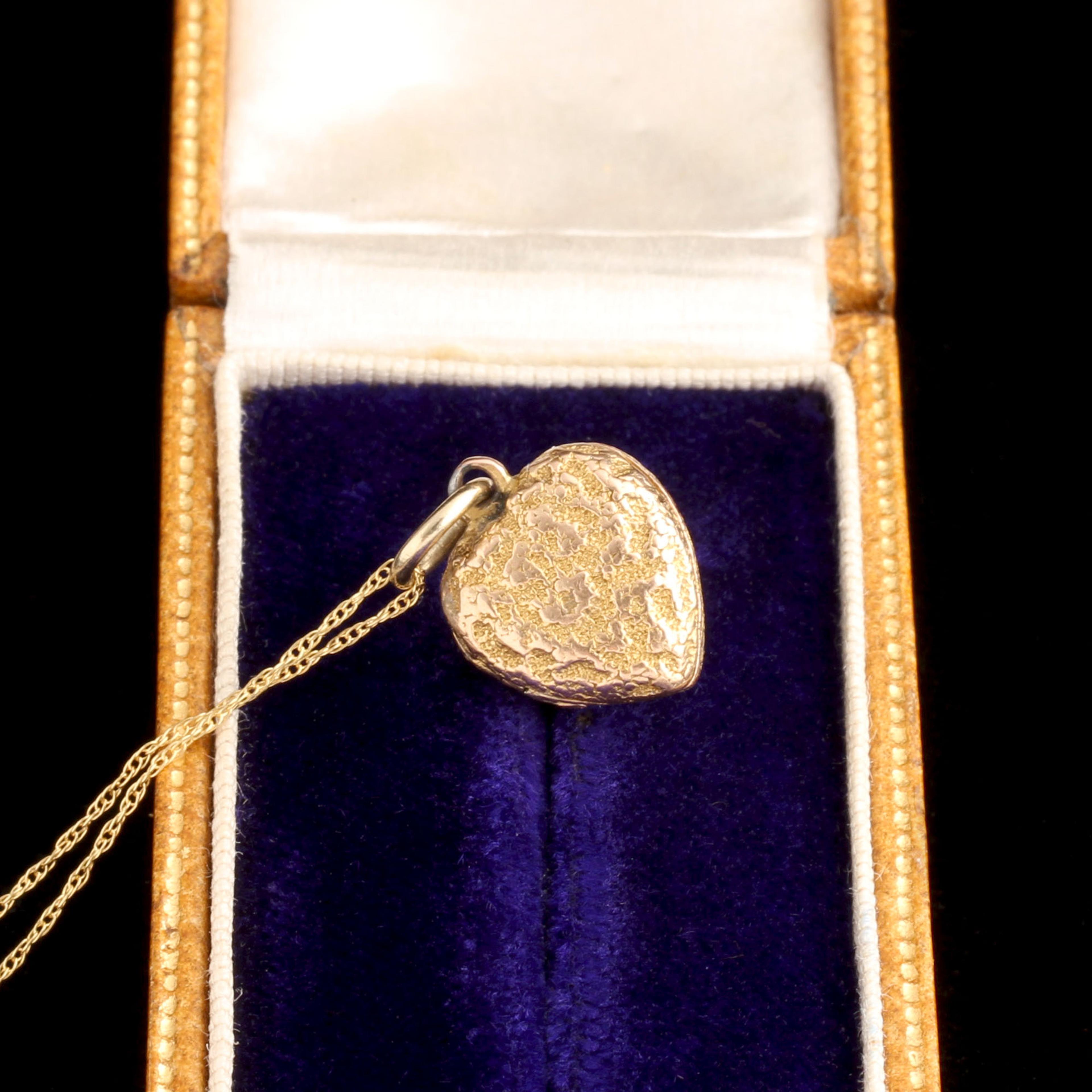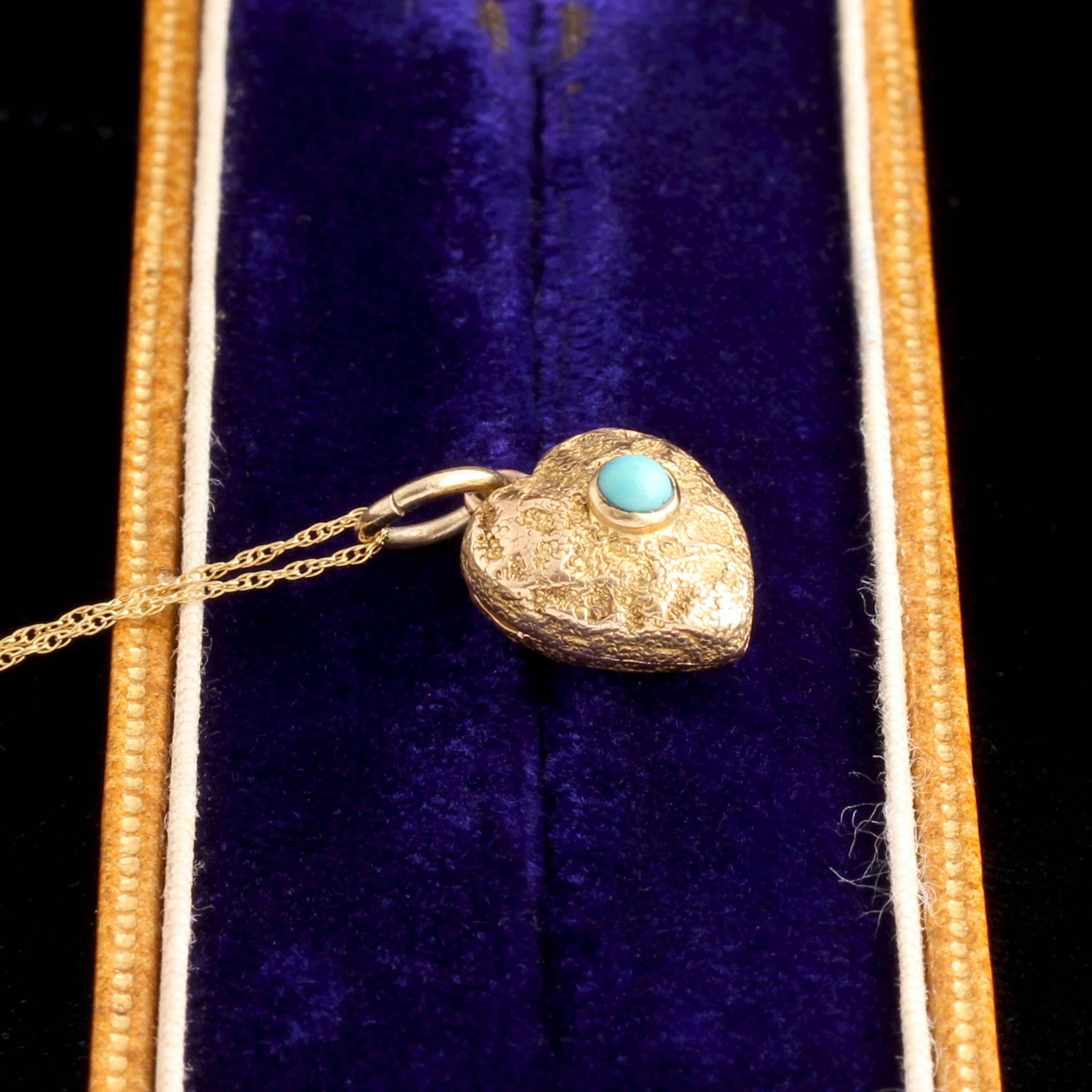This heart locket has texture to mimic a gold nugget; the smooth turquoise cabochon is a contrast to the rough surface. Maybe a gift for someone whose heart has been bashed around a little bit?