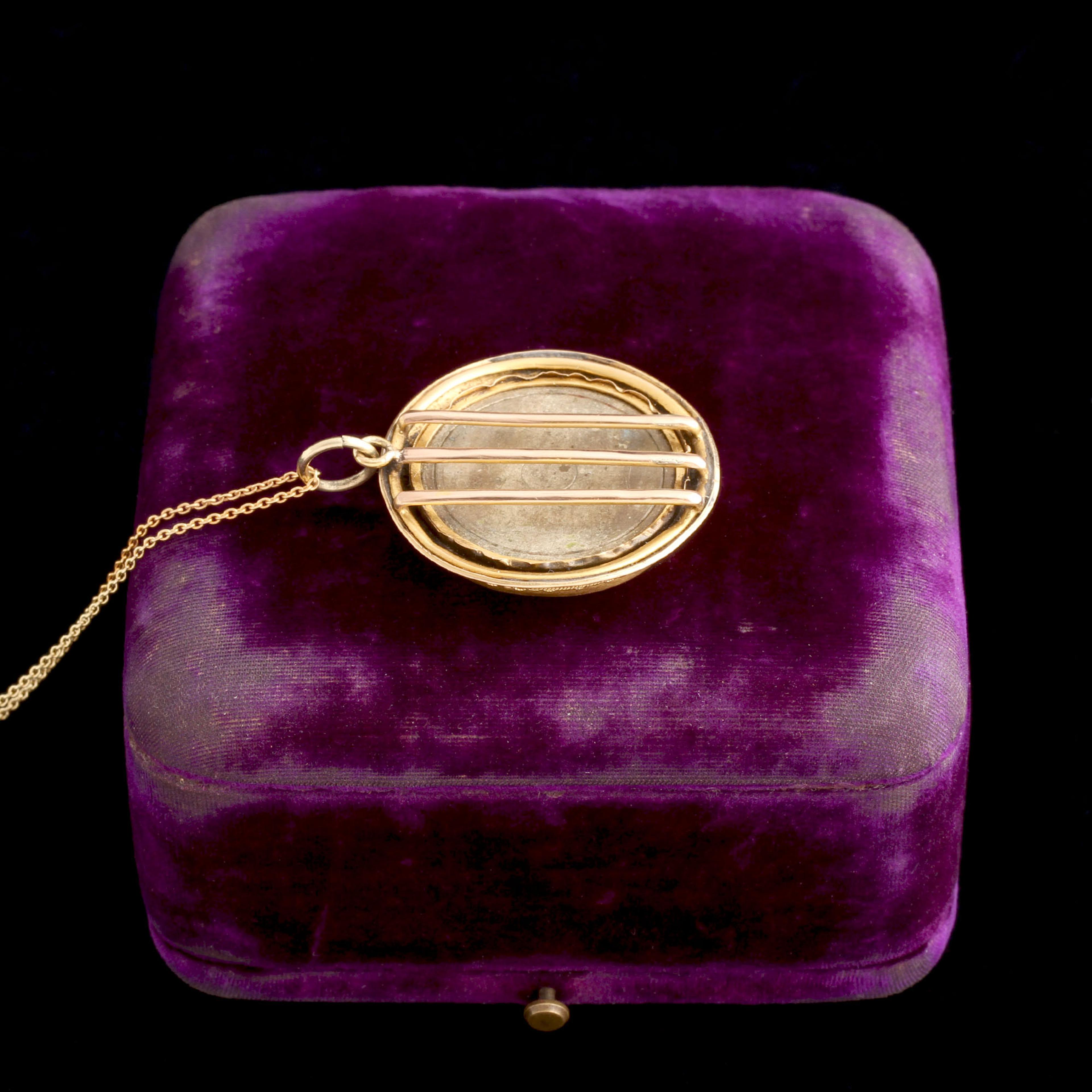 14k gold (tests), glass tesserae, steel back plate, new 14k gold chain