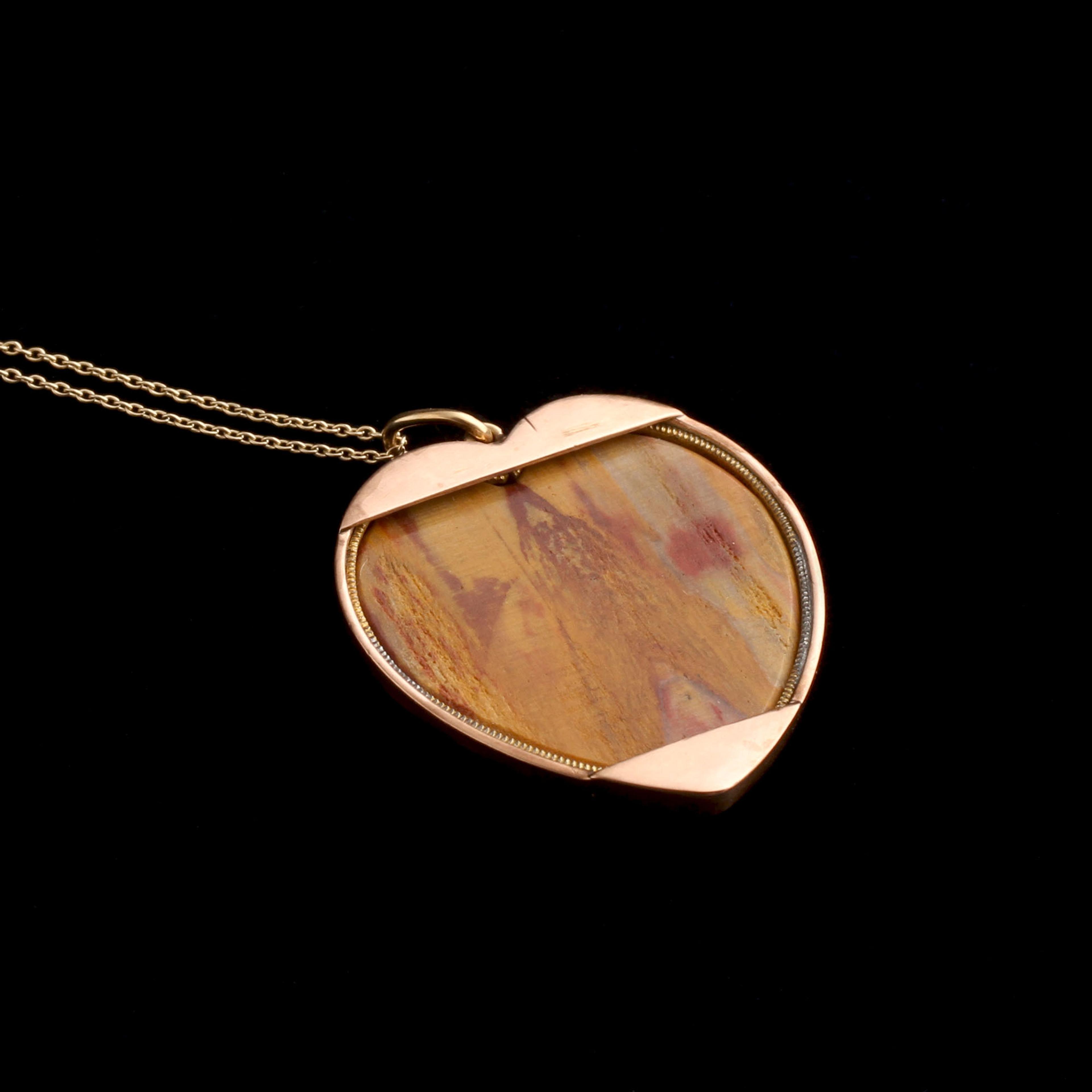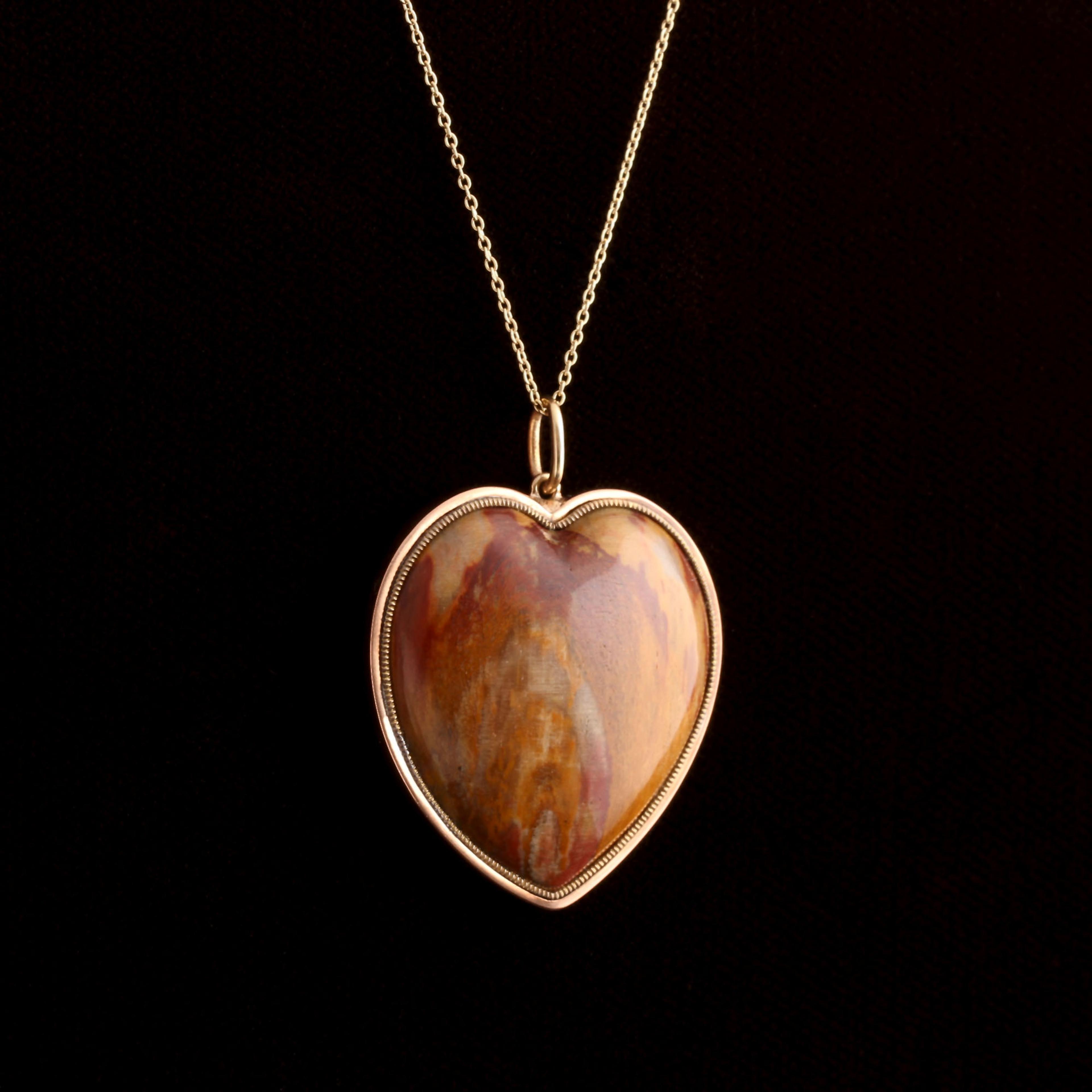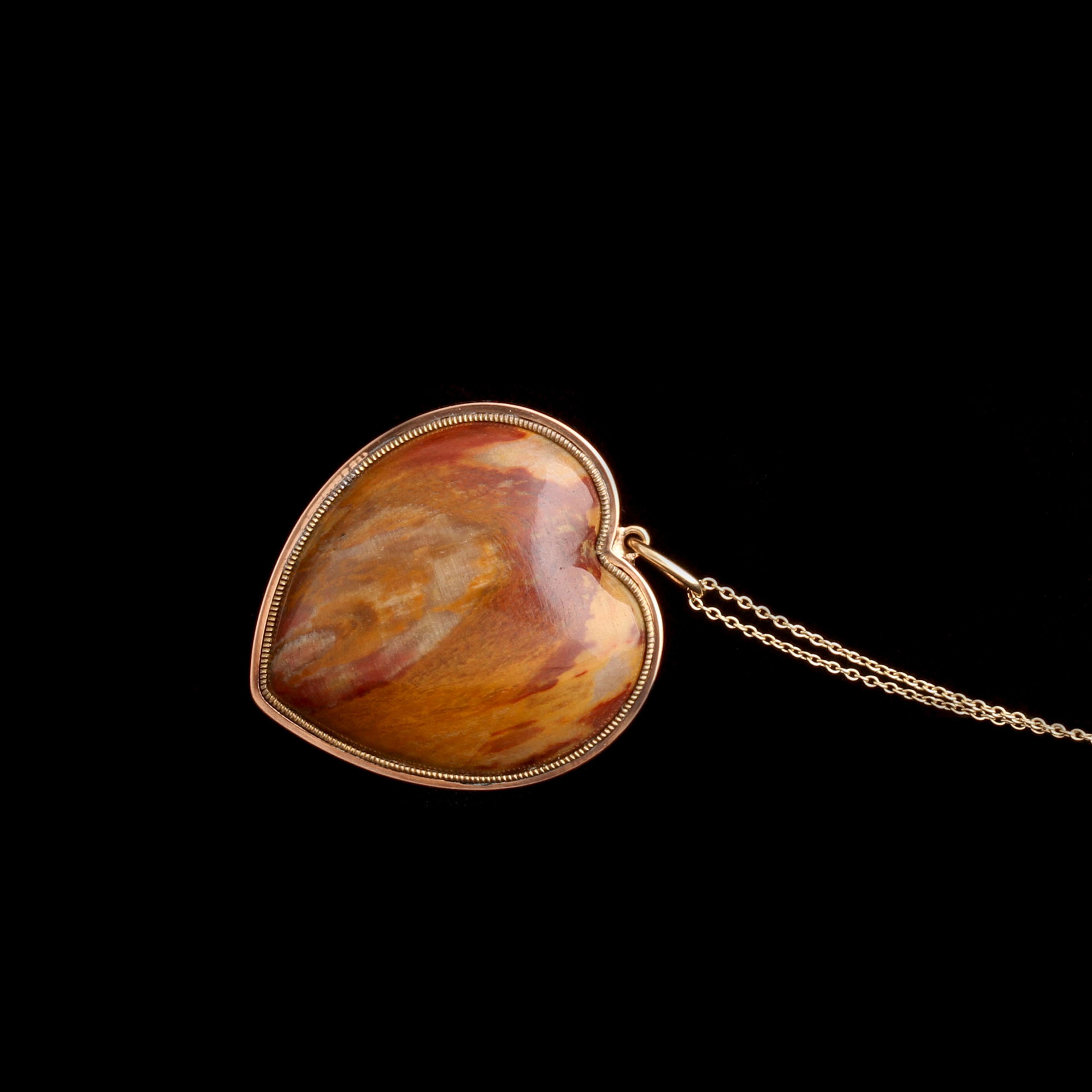 SINCE ANCIENT Egypt, the heart has been tied to love. Ancient Egyptians believed that the heart was the center of all amorous feelings. They also believed it was the seat of the soul, and that it would be weighed at the time of one’s death. (It needed to be light as a feather to enter the afterlife.) We wrote a whole essay about the history of the ❤️ if you really want to get into it; this one is a chubby hunk of fire-colored jasper, with a custom frame made in rosy gold.