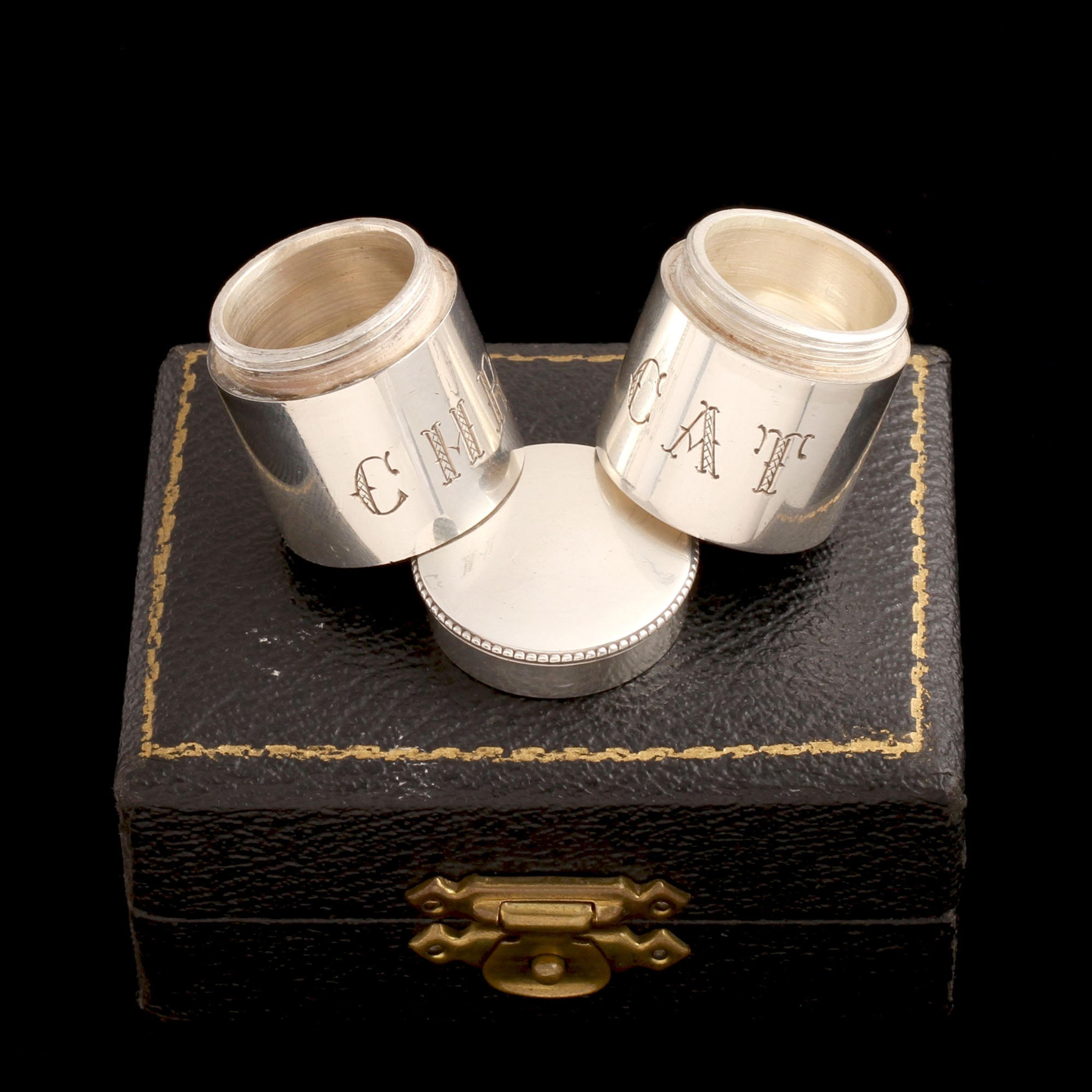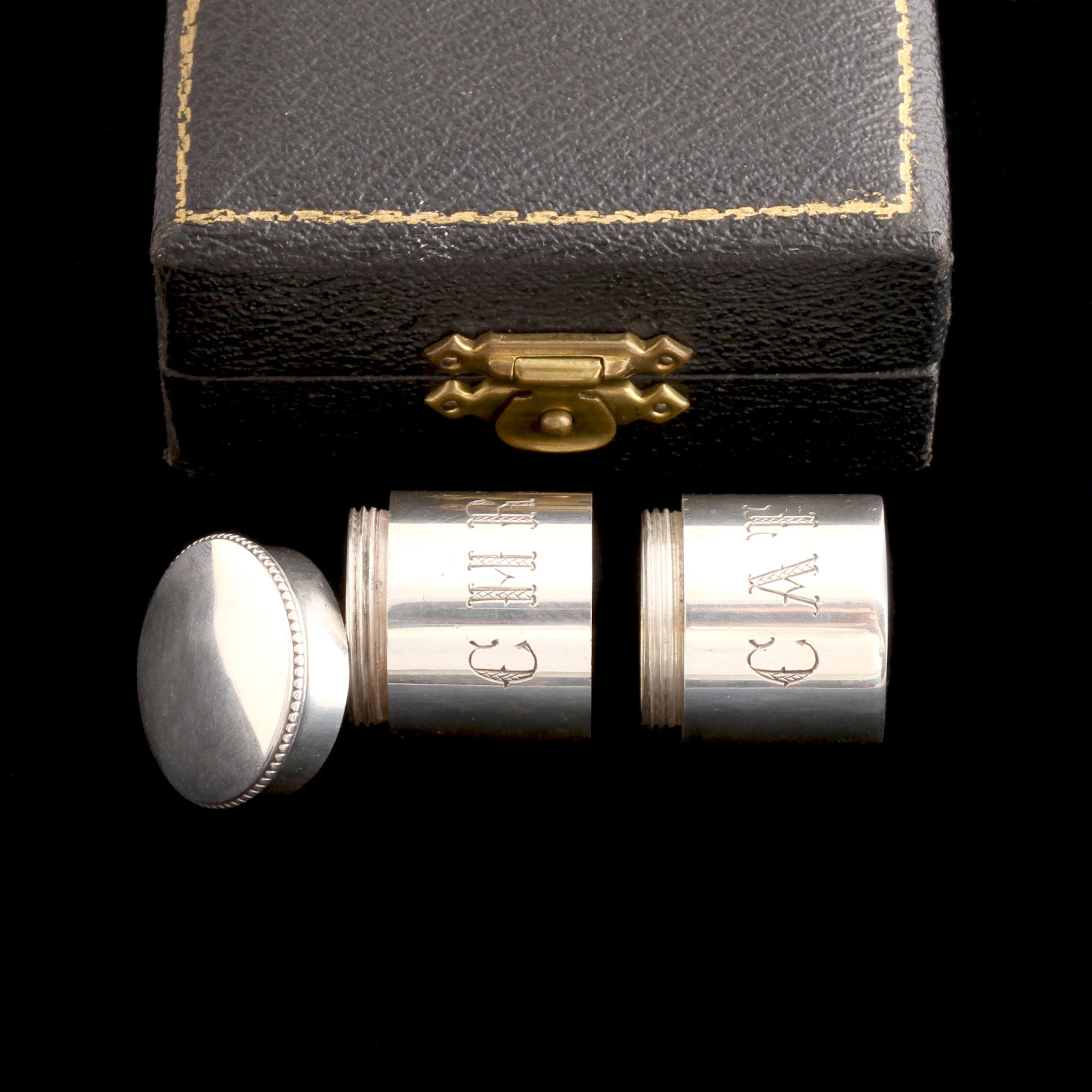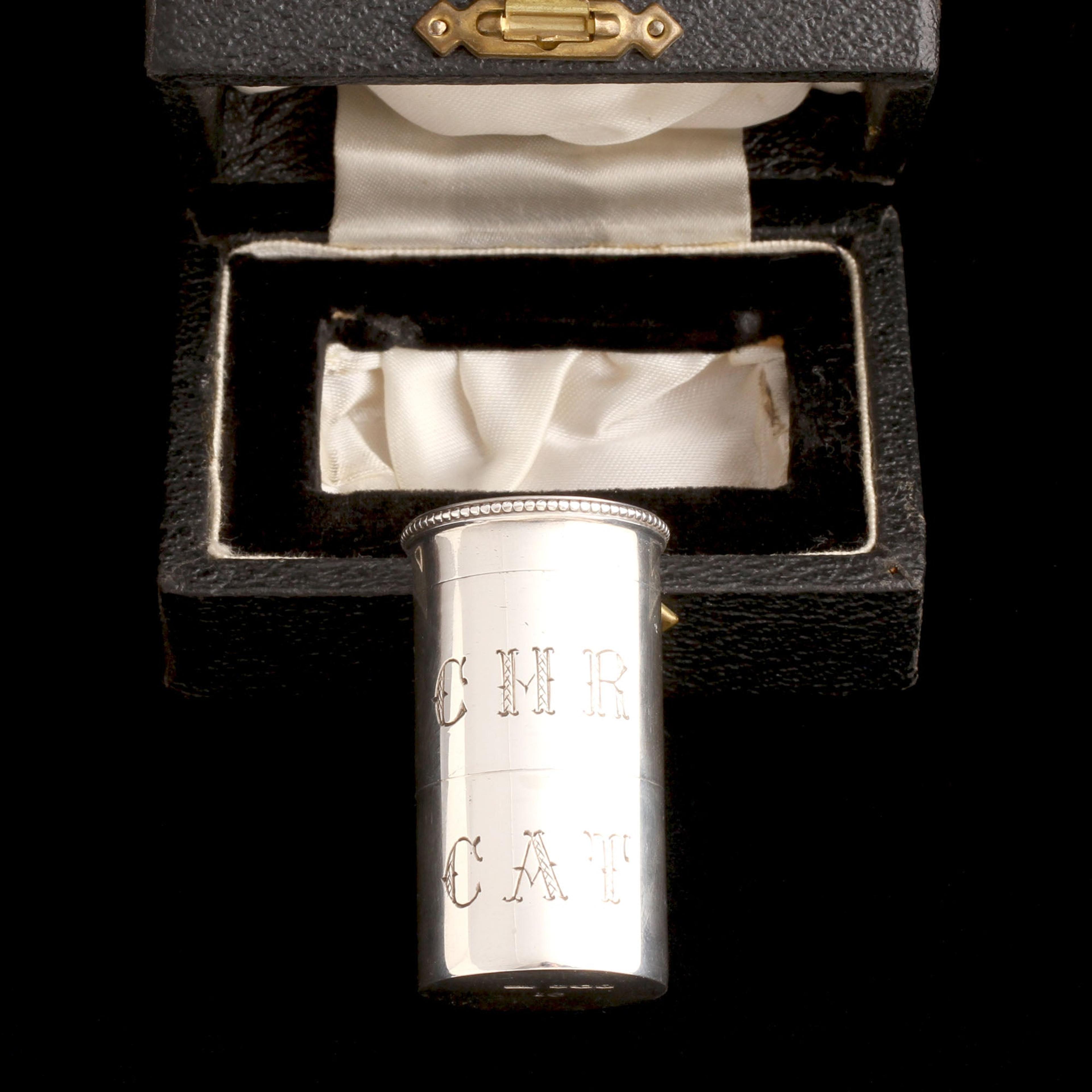 I don't know enough about what a priest's job is to truly understand this object, but I DO know it was made carefully, beautifully, in London in 1876. Sterling silver containers screw together for ease of transportation; one is engraved CHR (christening) and the other CAT (catechism). We were told it held (holy?) oils.